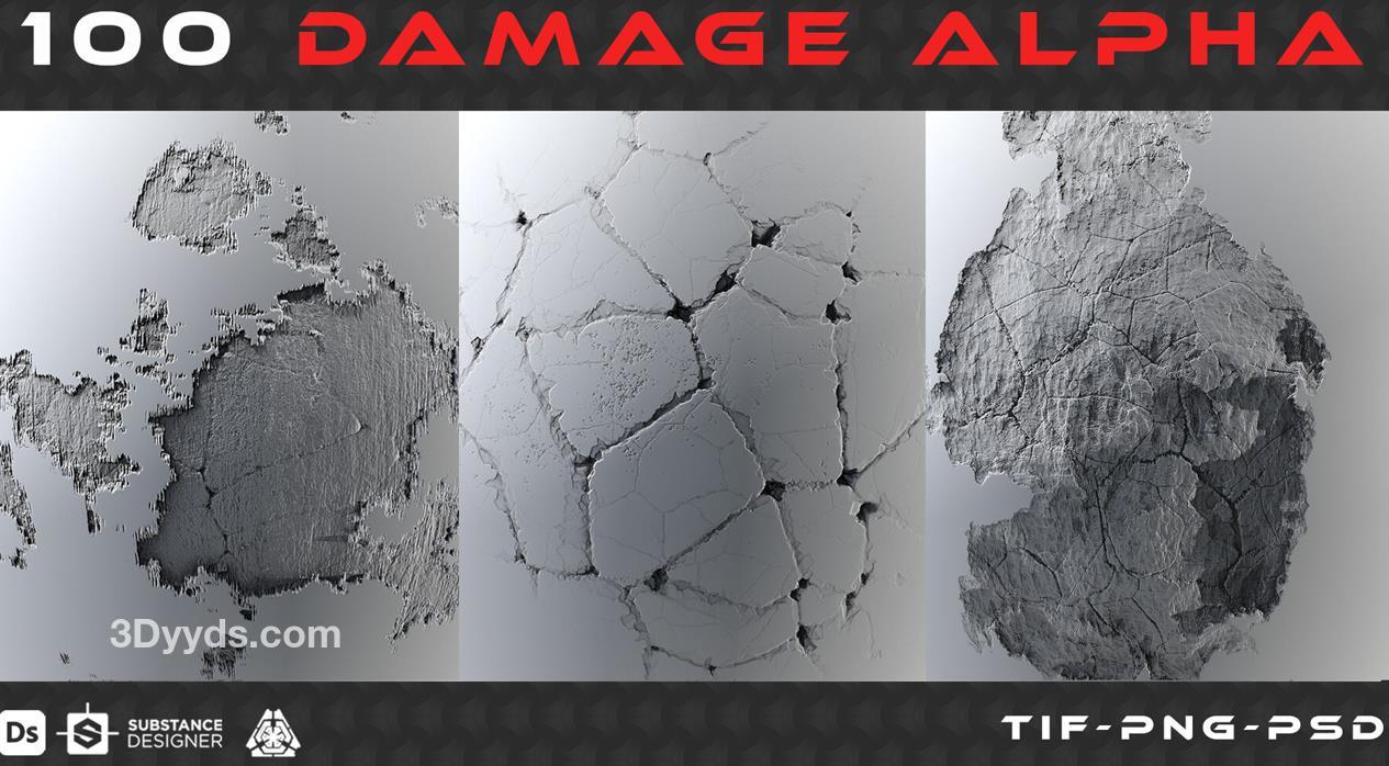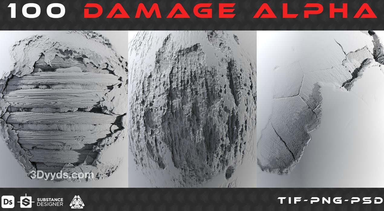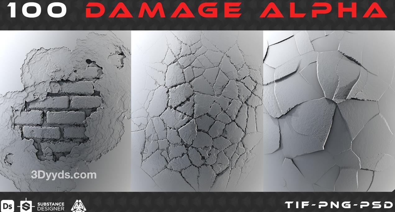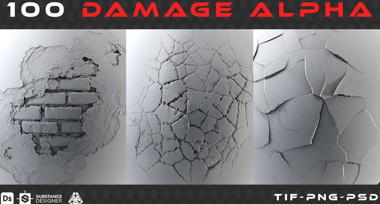 包括100个高质量的冲击伤害Alpha高度图。