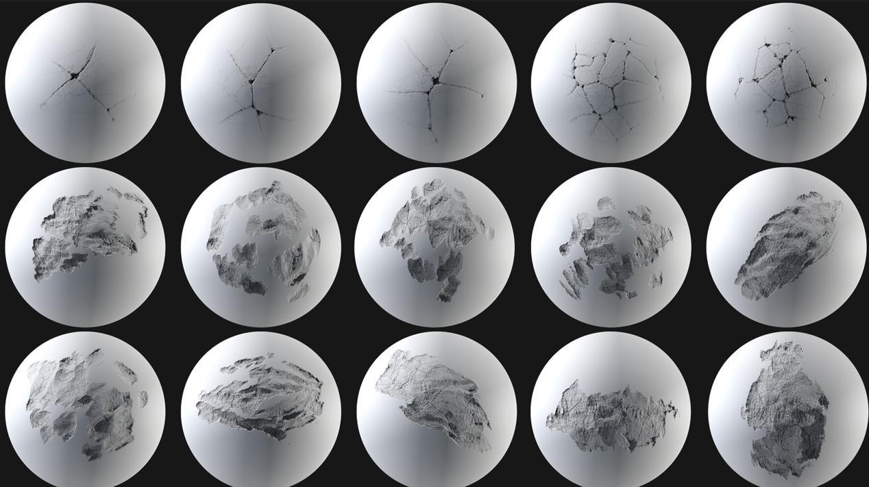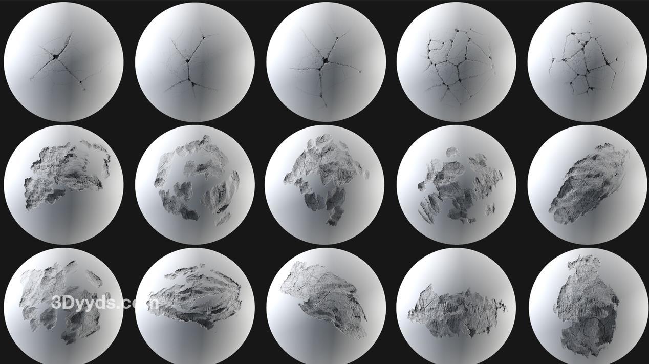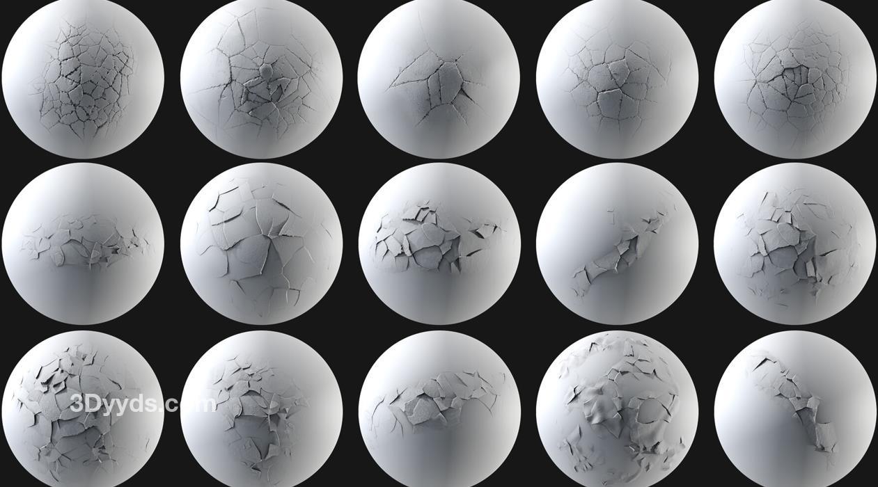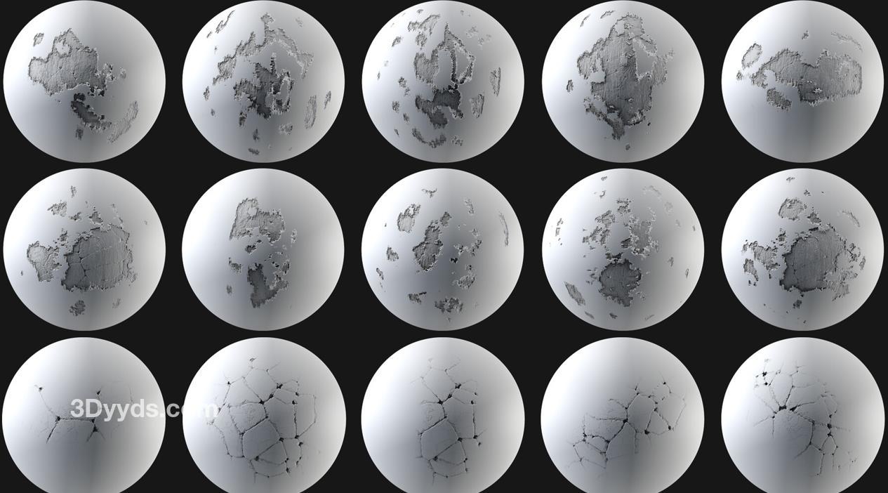 包括100个高质量的冲击伤害Alpha高度图。
