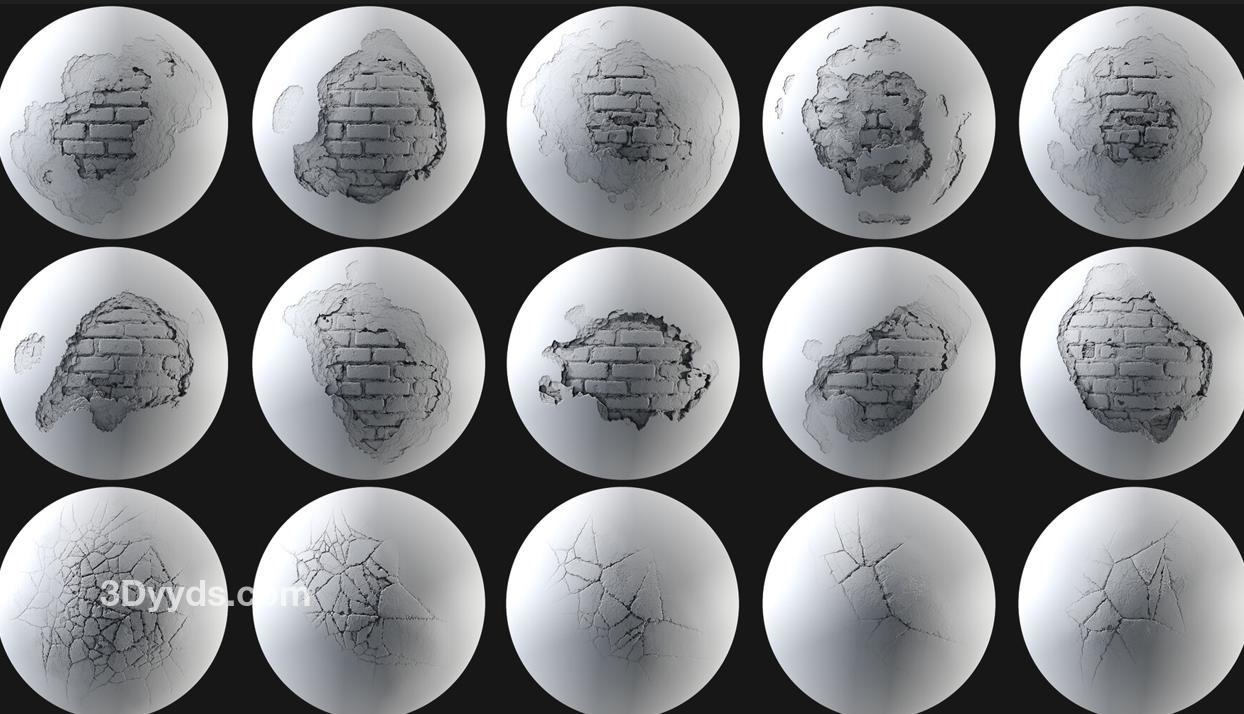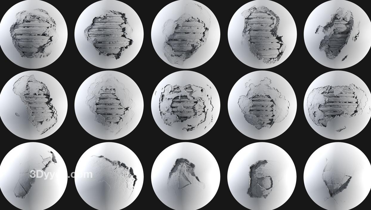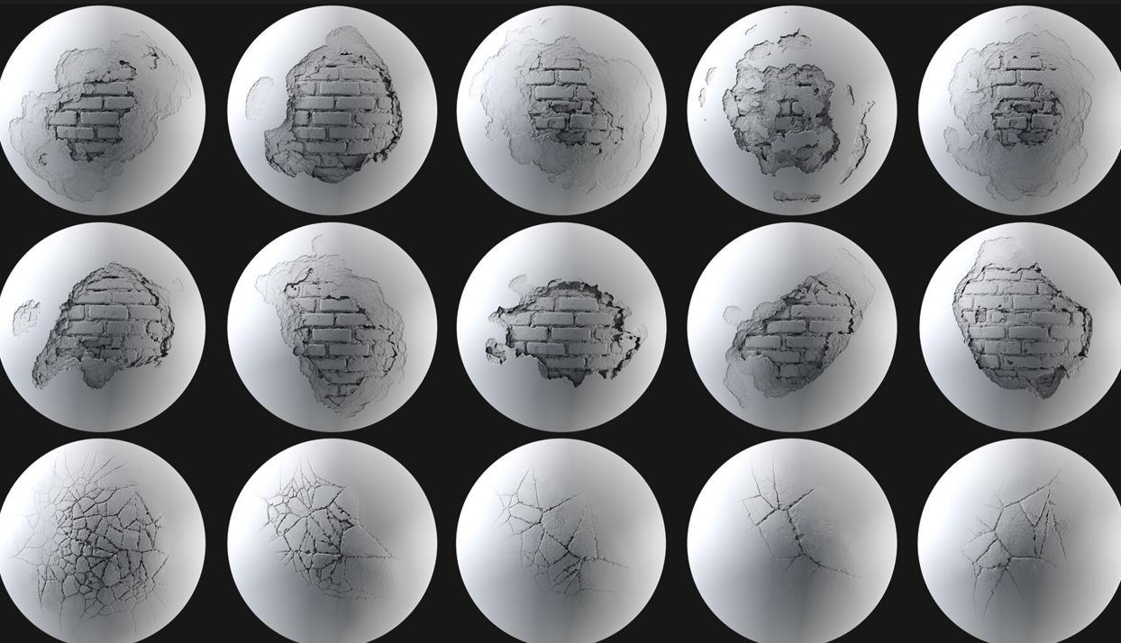 一组可以破坏地板、墙壁和其他物品的Alpha可以帮助艺术家们工作得非常迅速。在破坏产品系列的第二部分中,我们收集了这些可以放置在您的档案中的Alpha模型,以帮助提高您的工作质量。