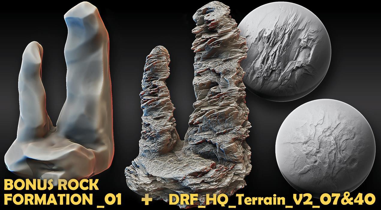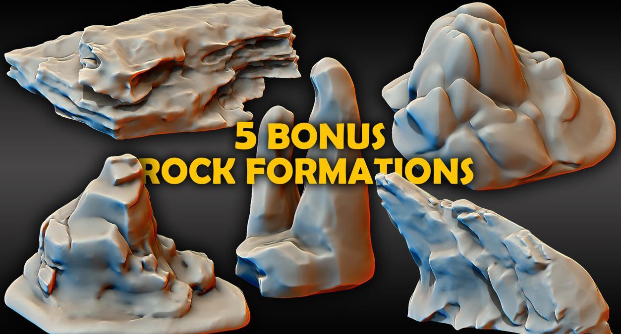 - 1个奖励Zbrush IMM笔刷,带有5个岩石形成