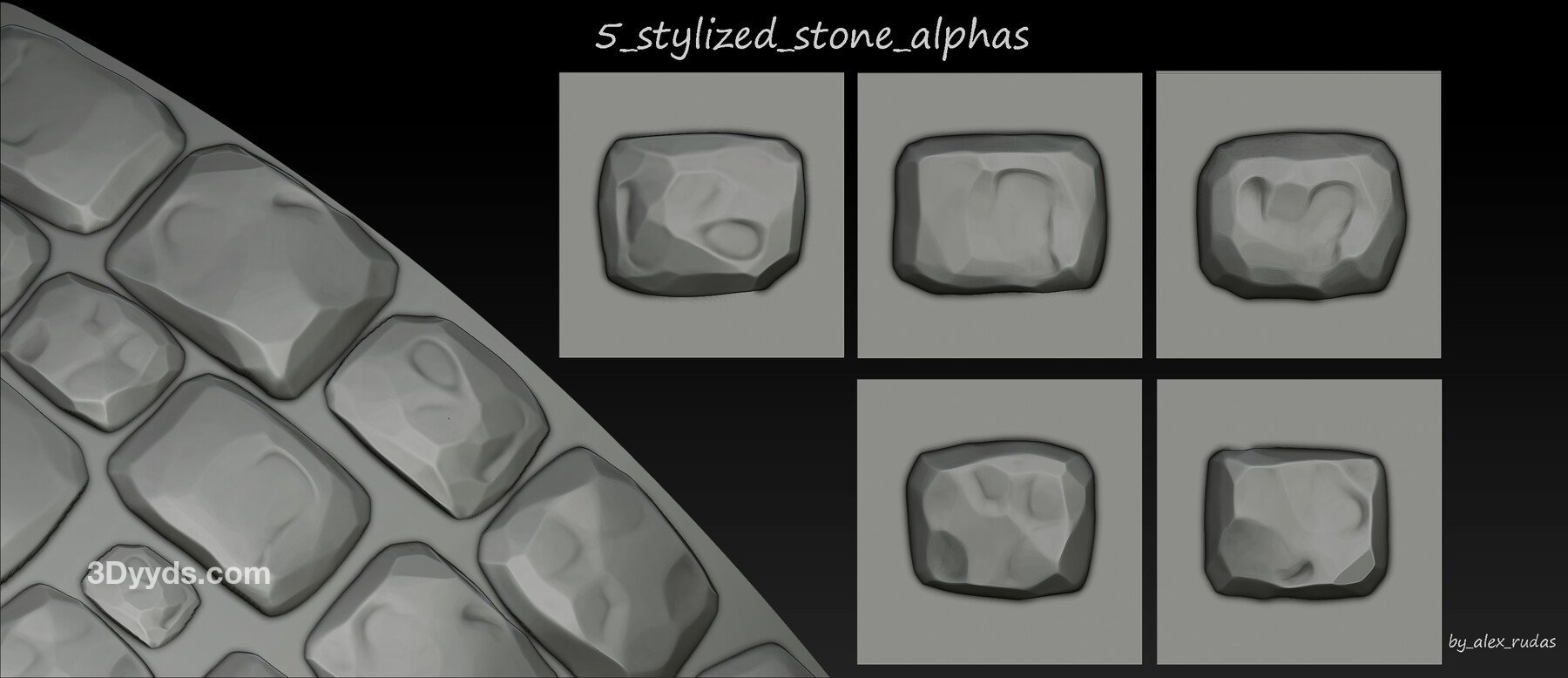 zbrush风格化岩石砖墙砖块Alpha雕刻笔刷BMP