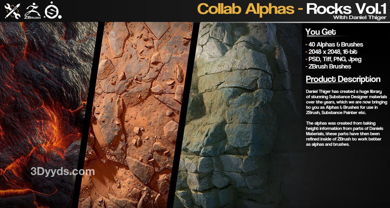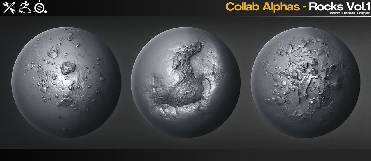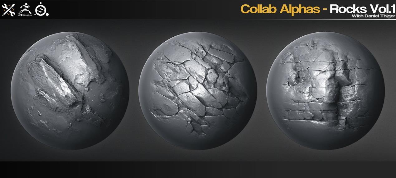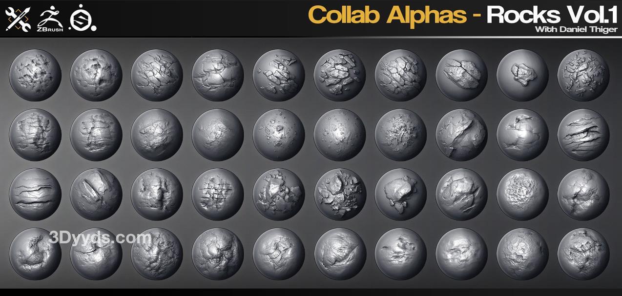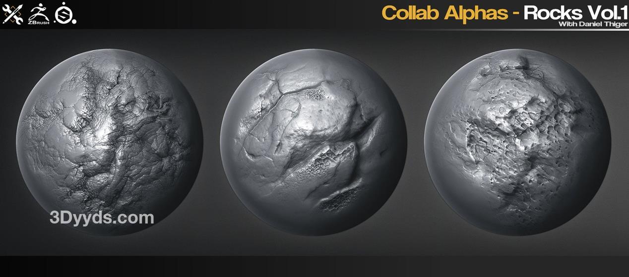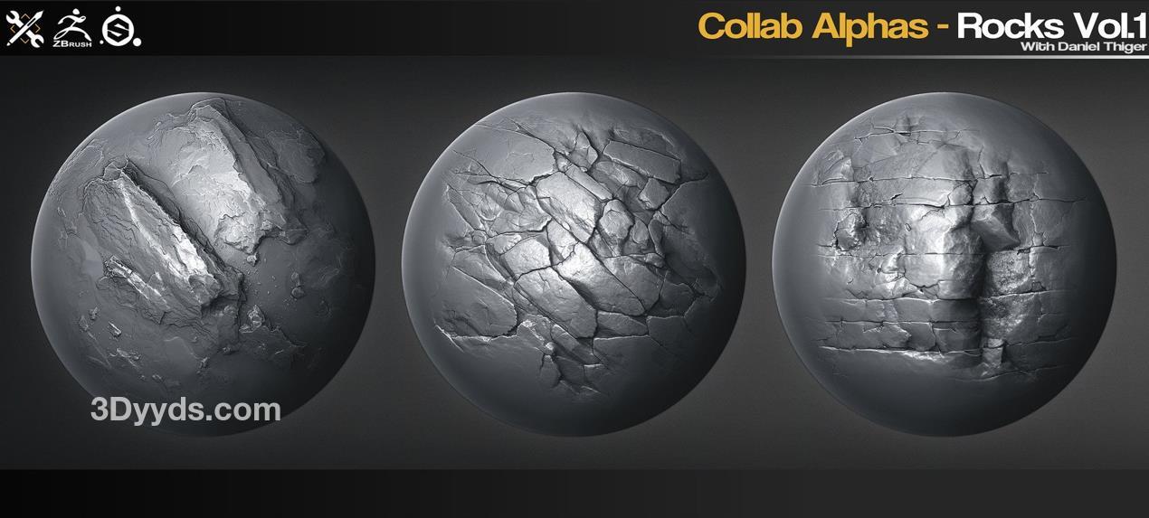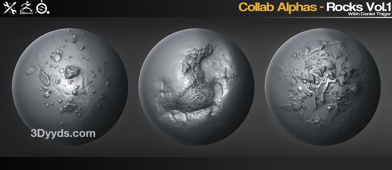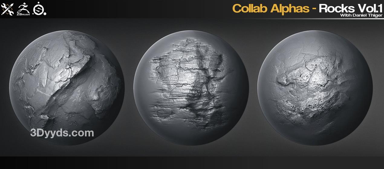 zbrush158岩石山石石头裂缝笔刷&石头雕刻破损腐蚀地形地面
