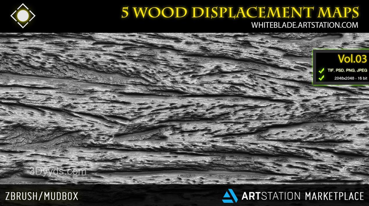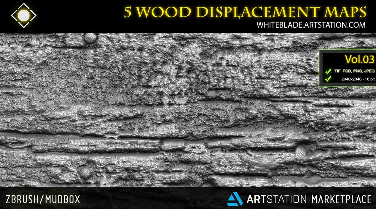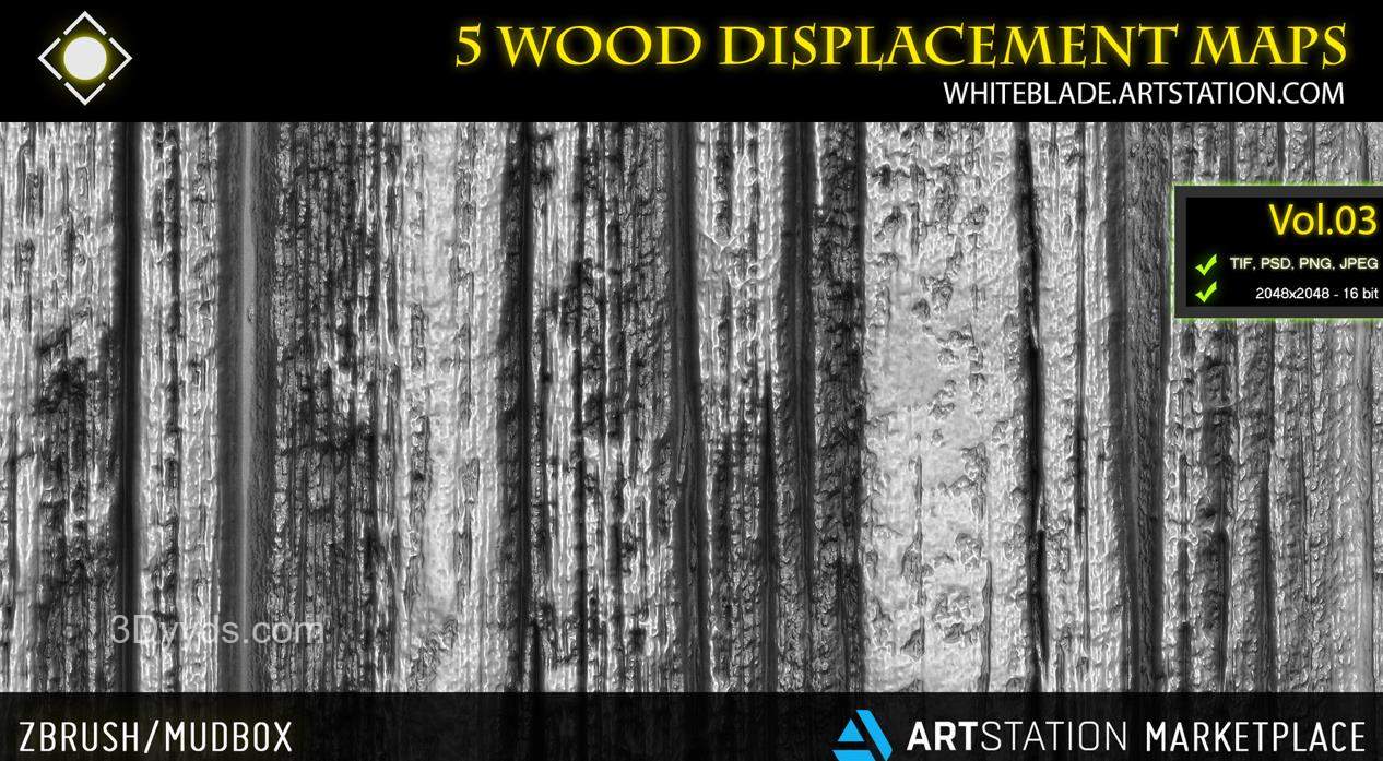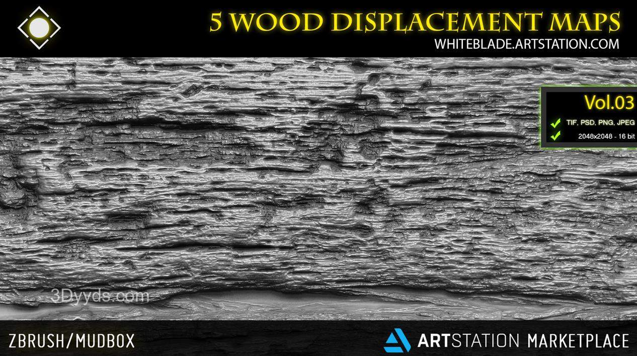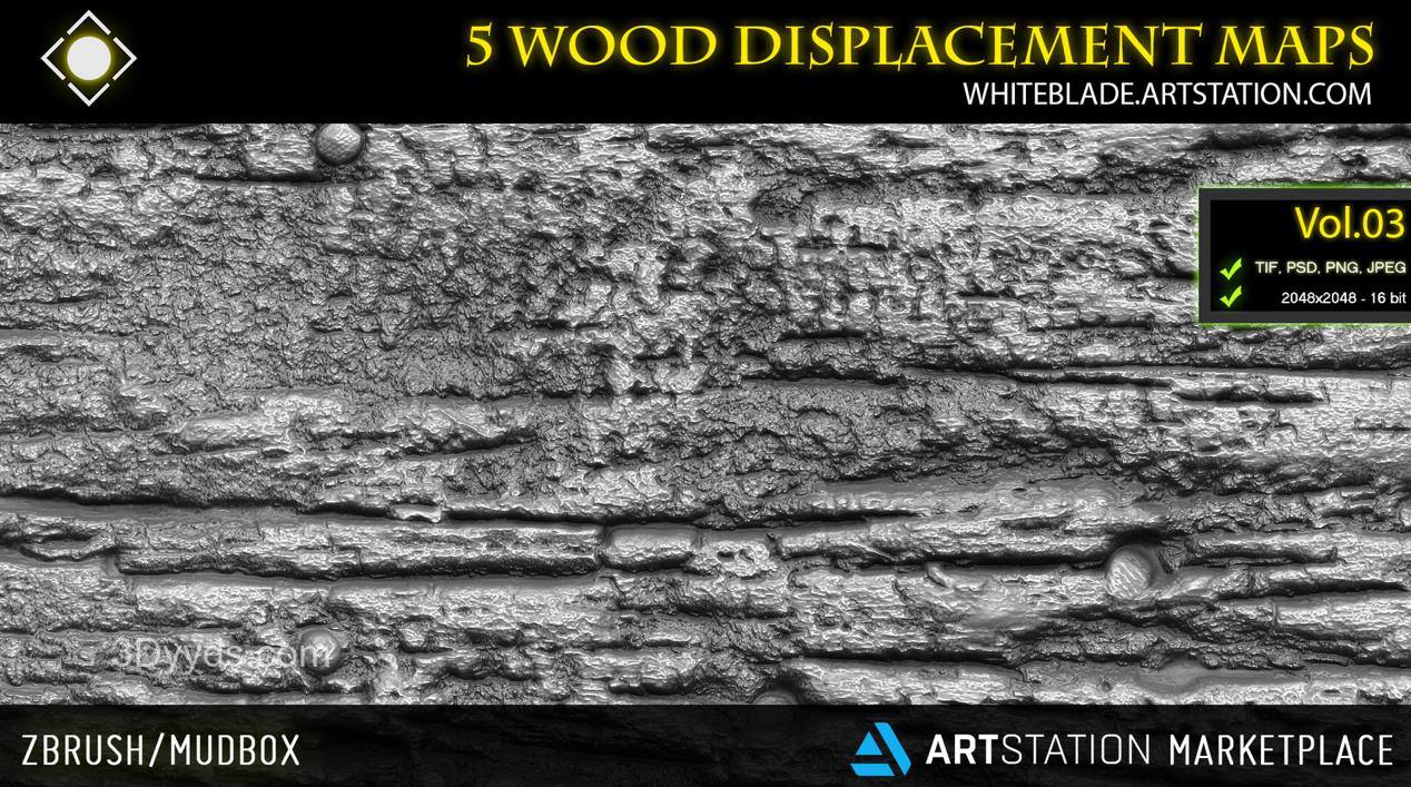 这是用于ZBrush、Mudbox、3Dcoat、Substance Painter等软件的木材位移贴图的第三卷,所有贴图均为2048x2048像素,16位深度。这些Alpha贴图可与任何程序配合使用。