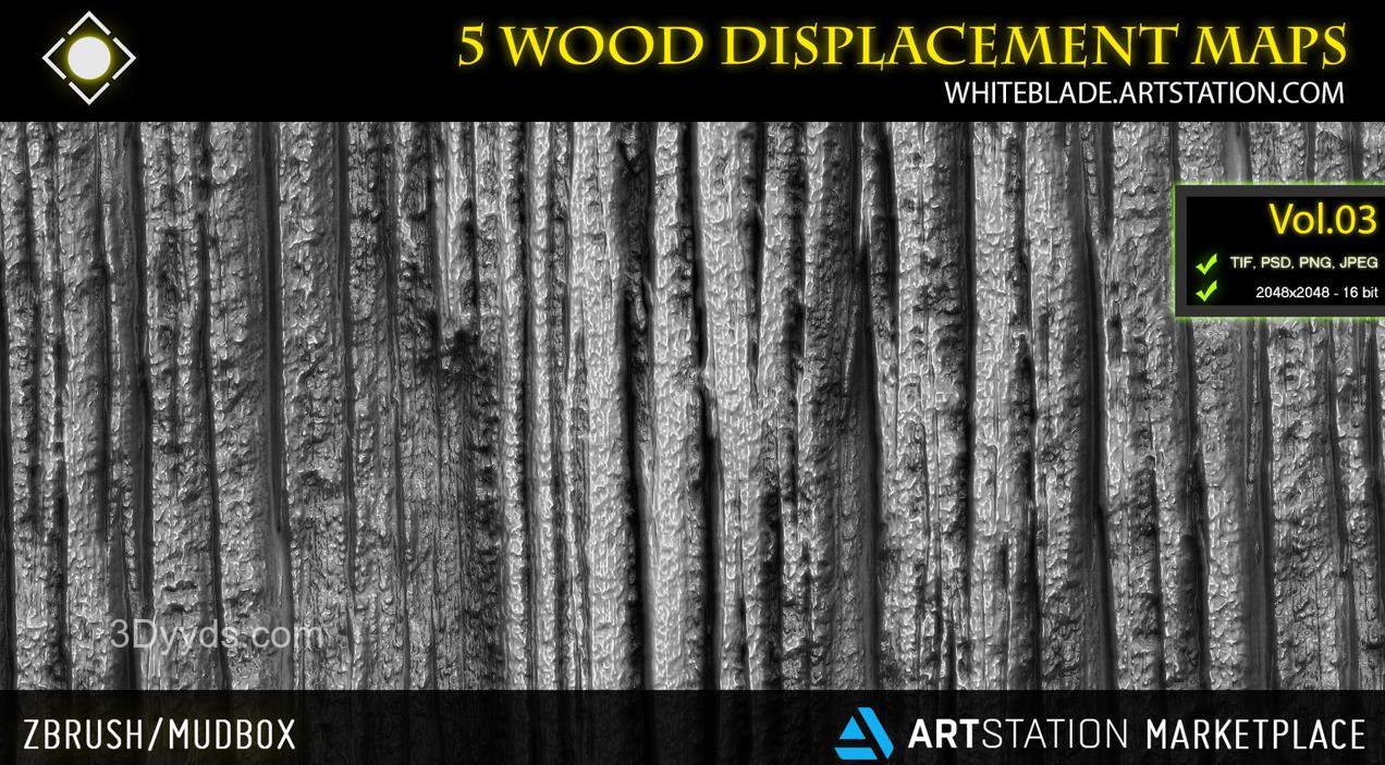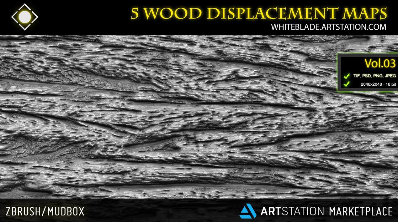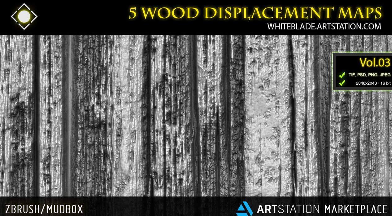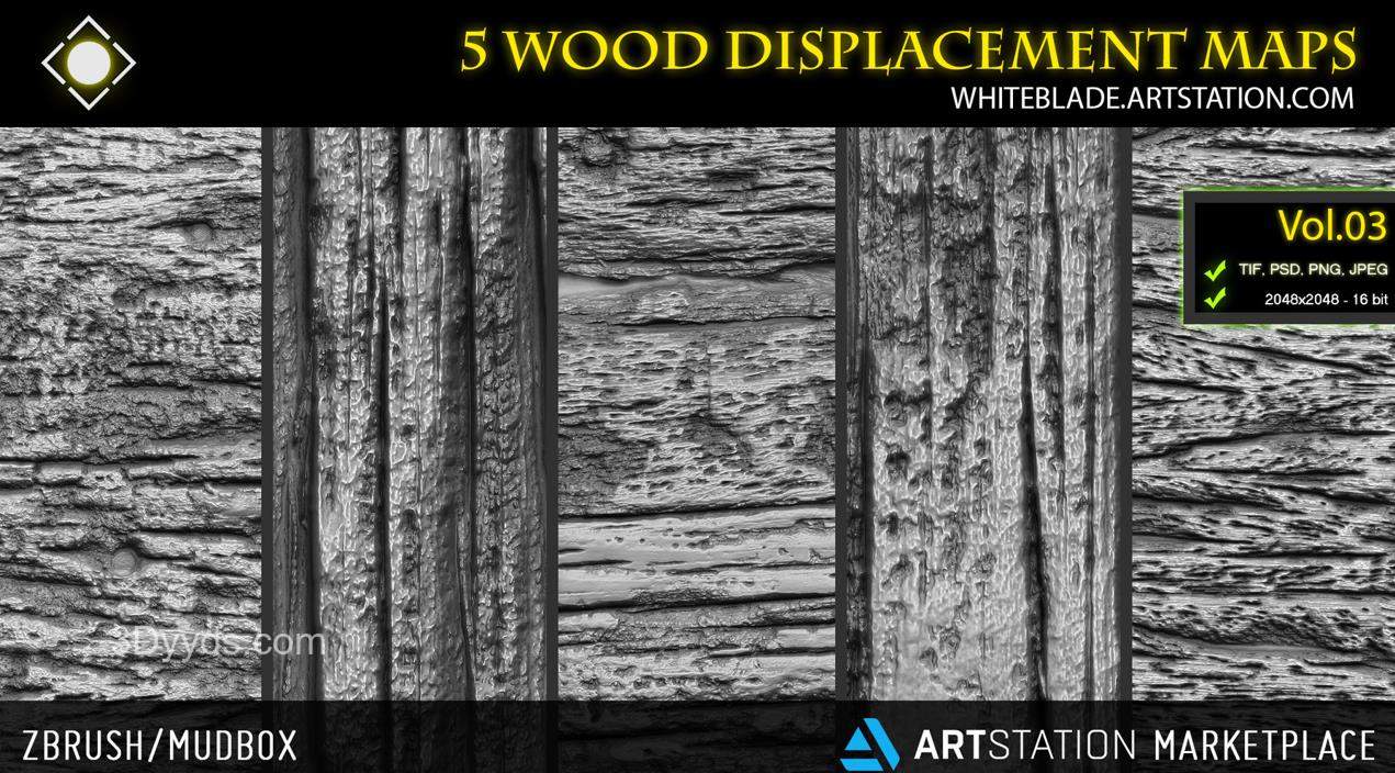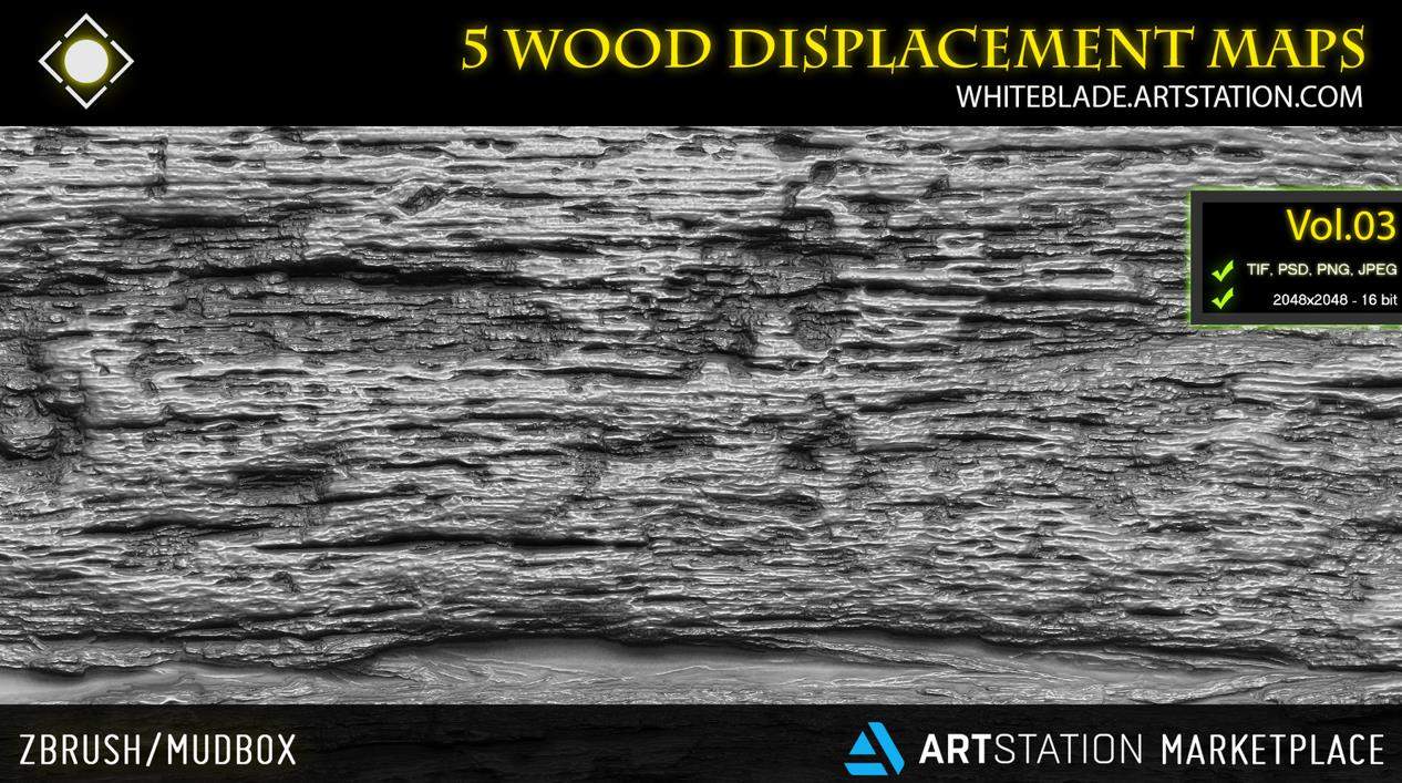 这是用于ZBrush、Mudbox、3Dcoat、Substance Painter等软件的木材位移贴图的第三卷,所有贴图均为2048x2048像素,16位深度。这些Alpha贴图可与任何程序配合使用。
