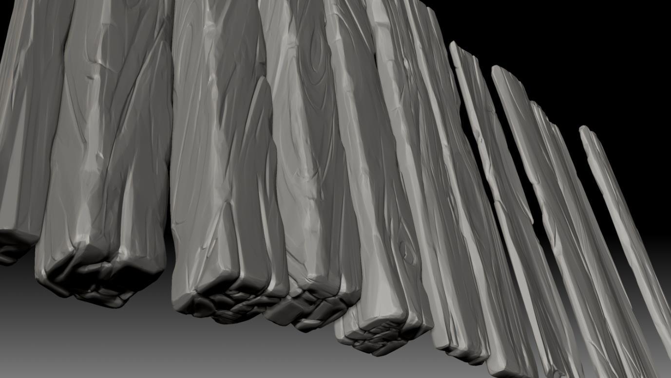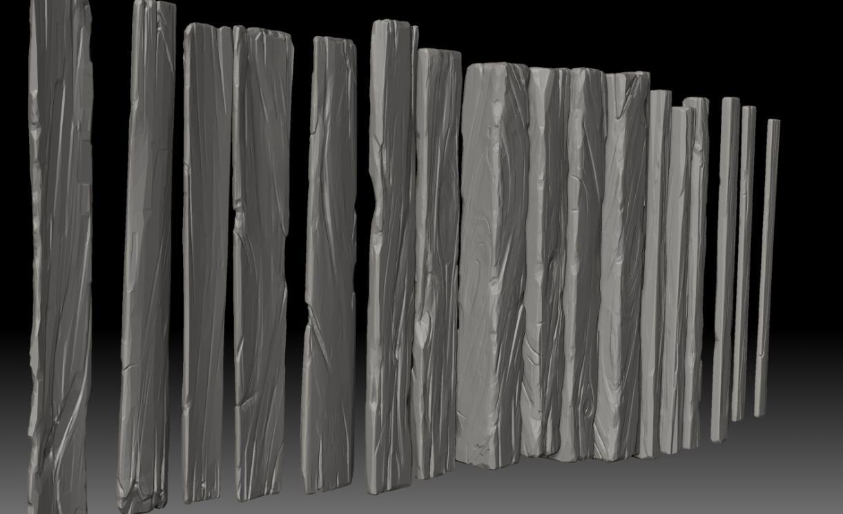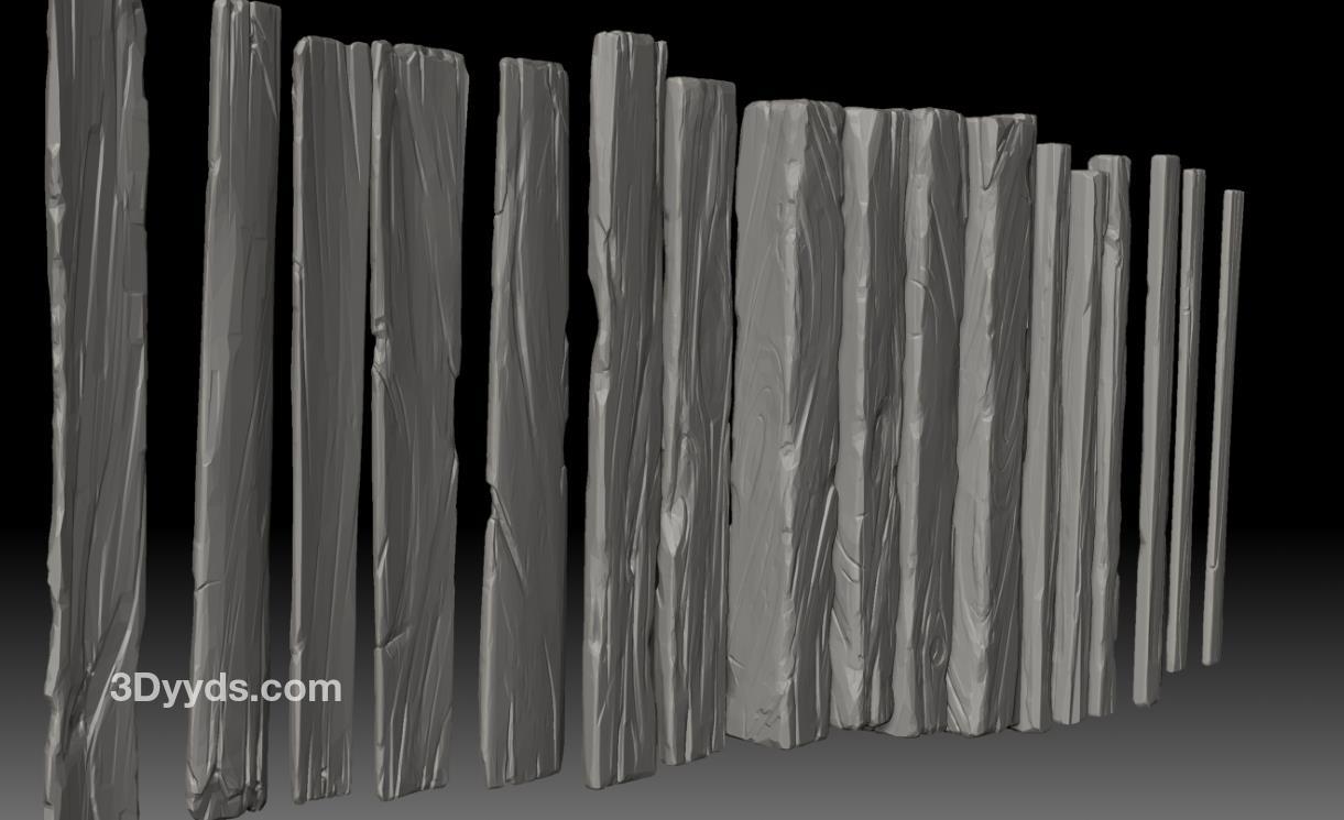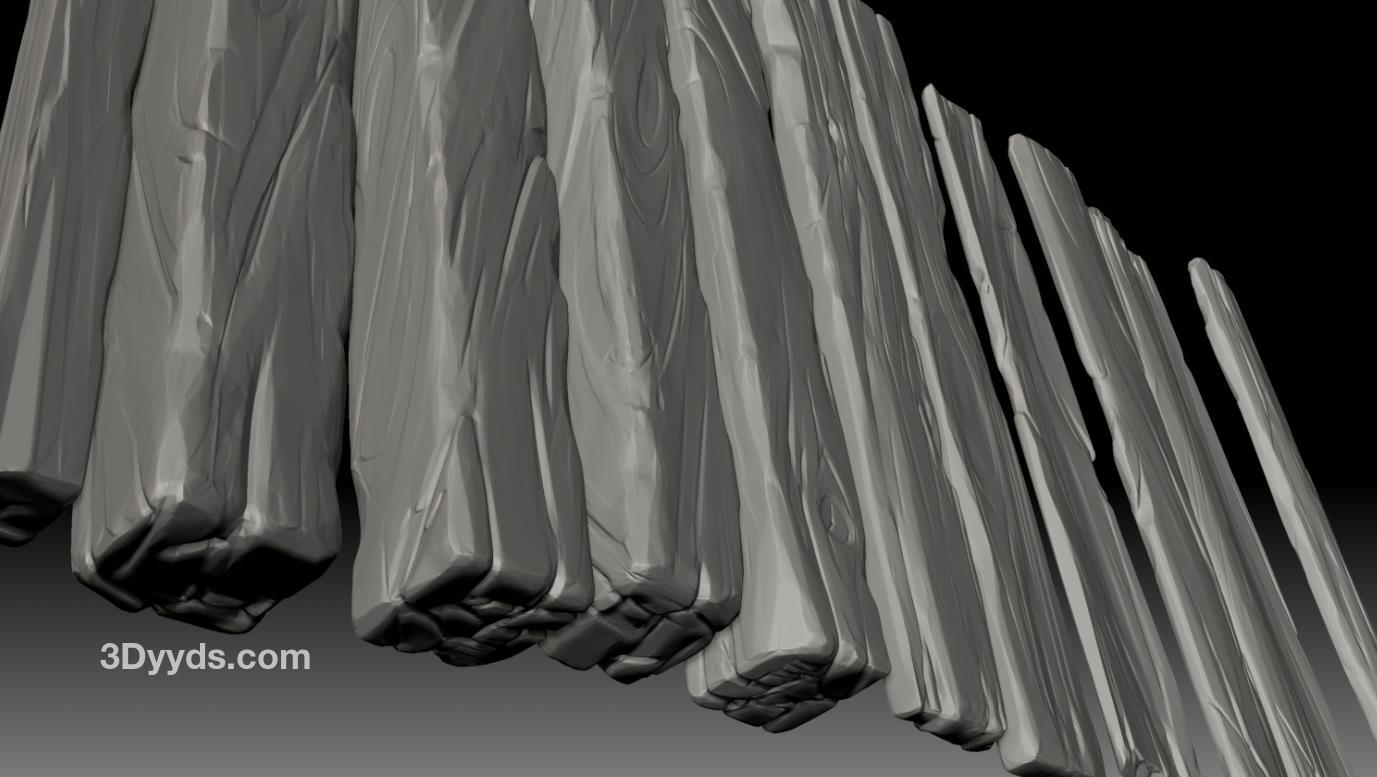 zbrush177木板木头栅栏木纹插入笔刷&木板模型雕刻
