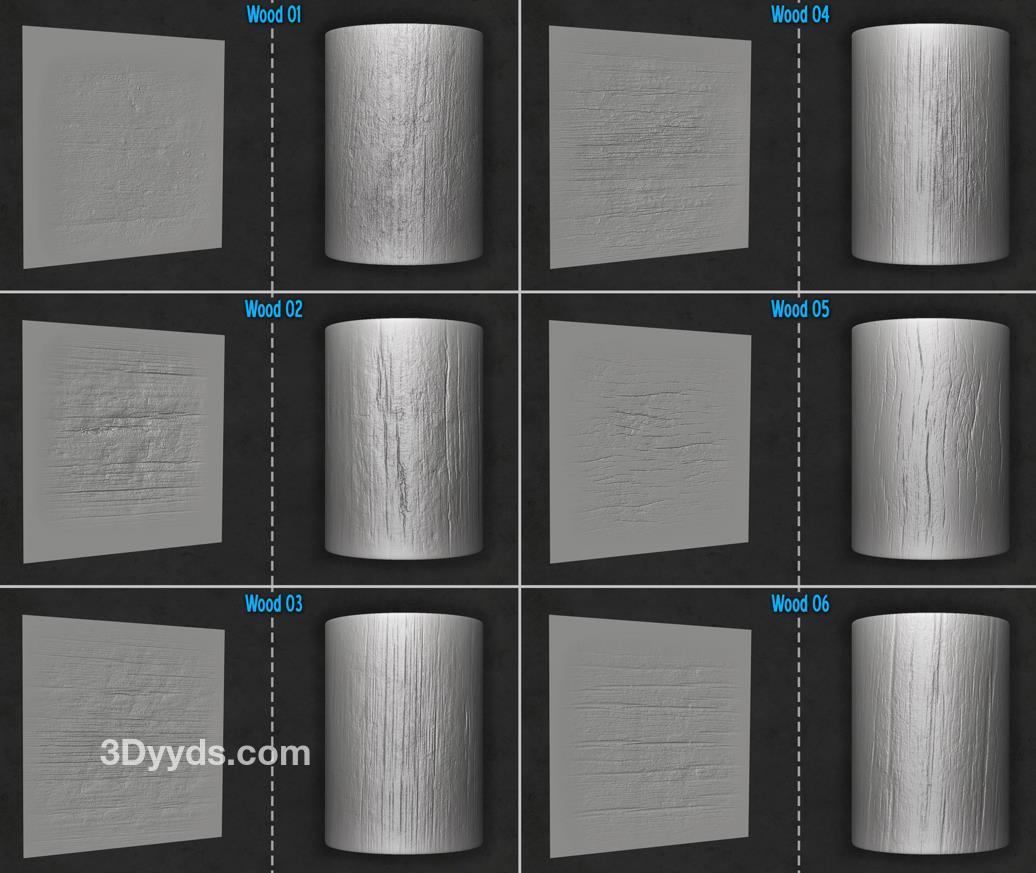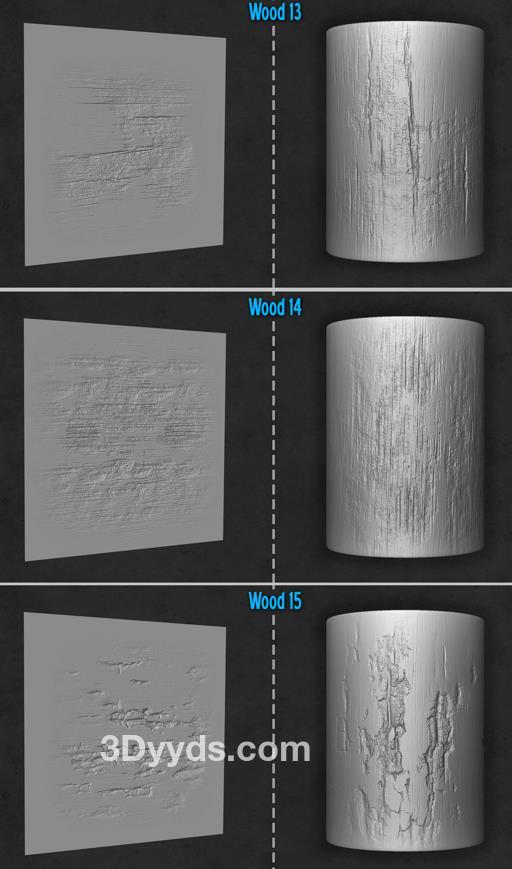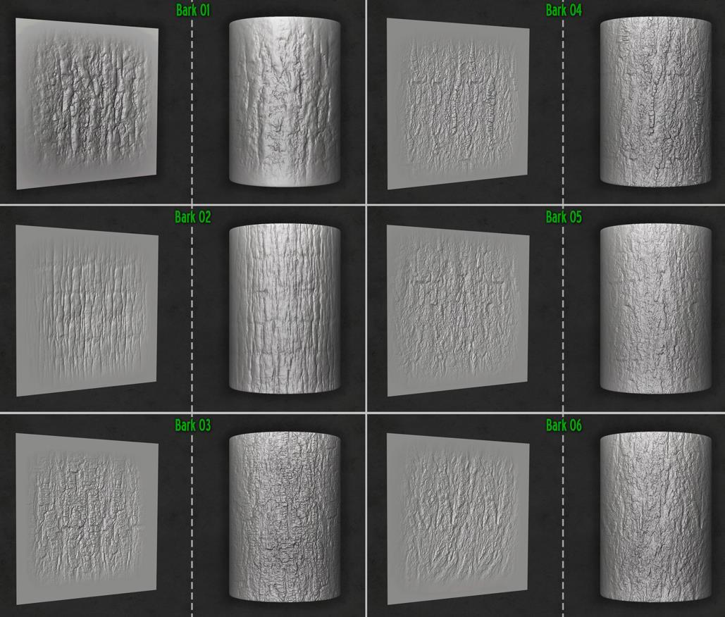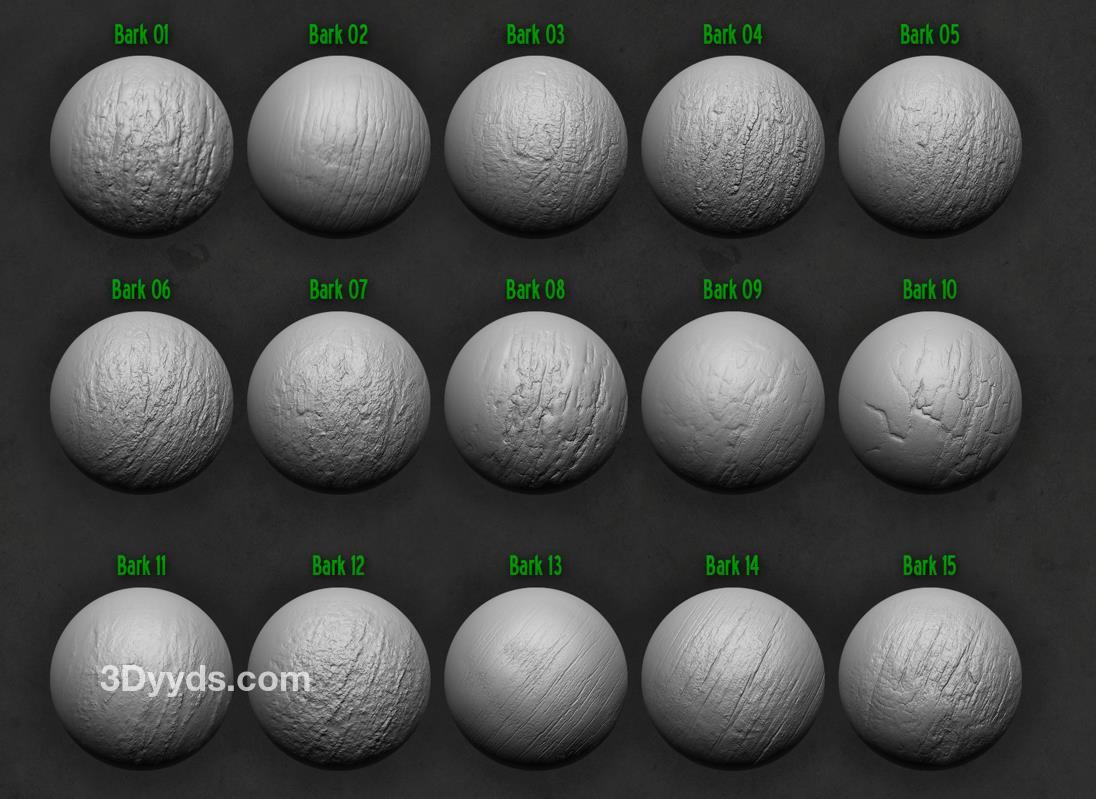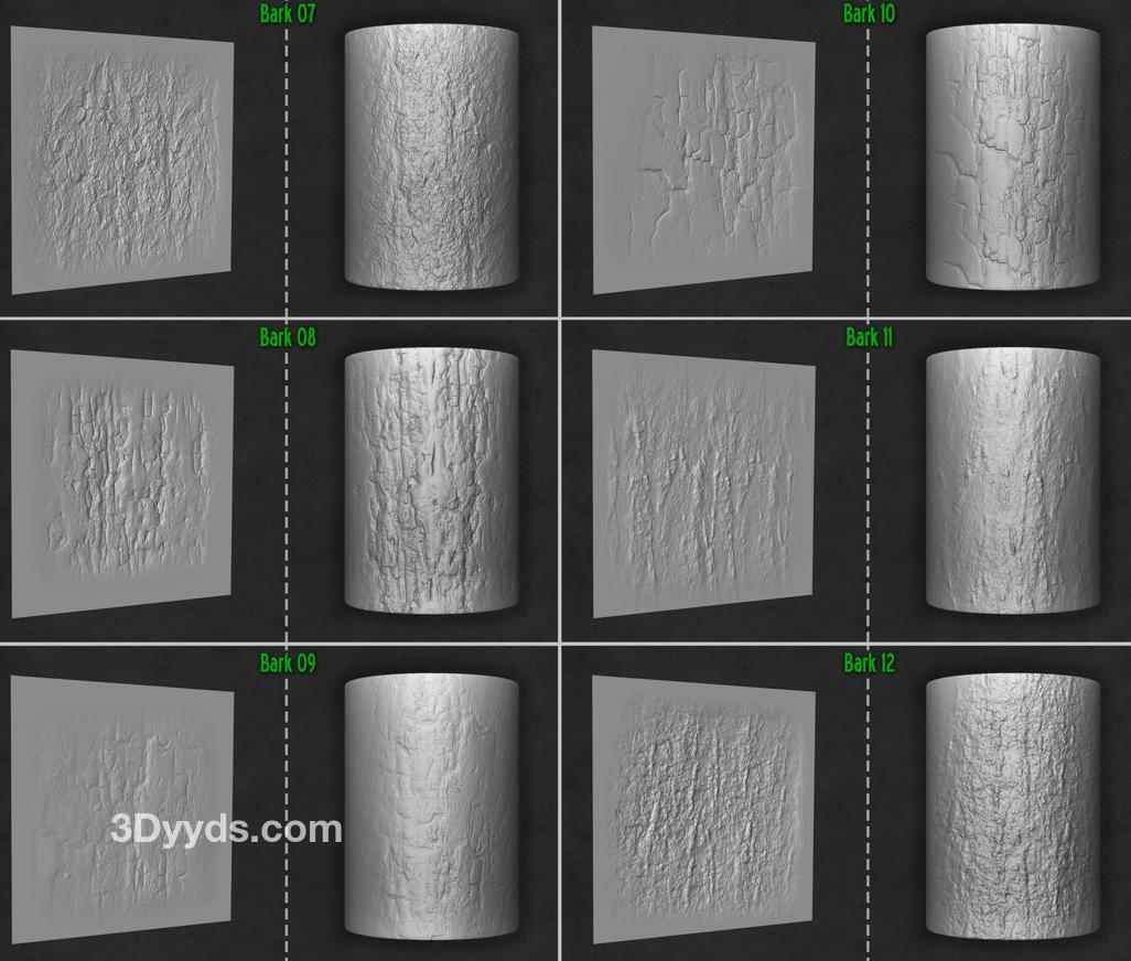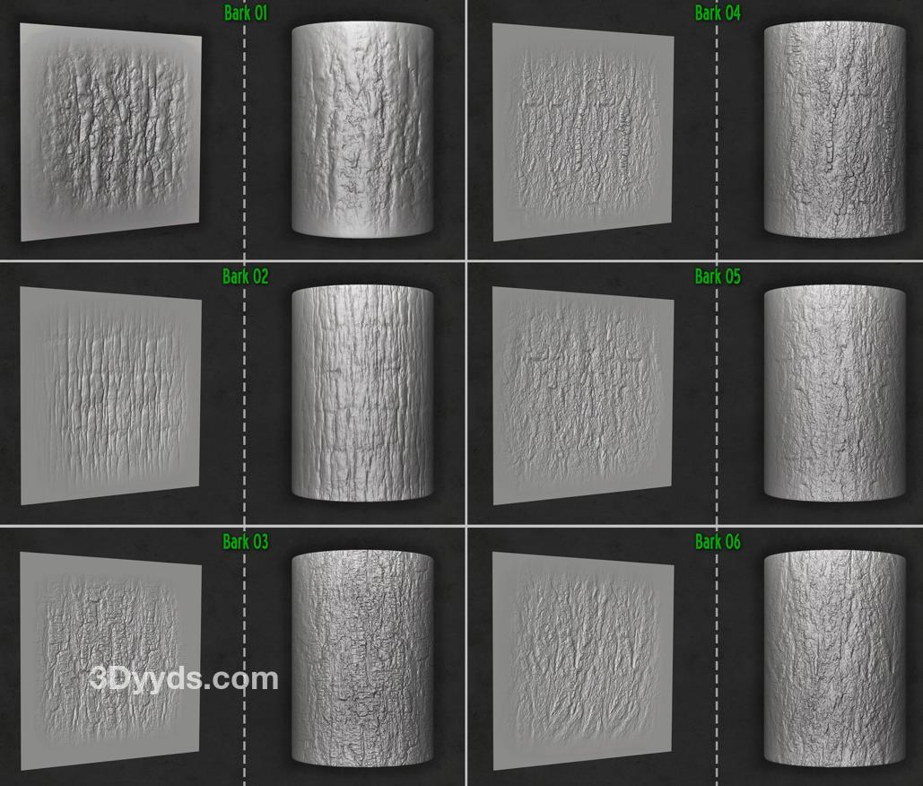 木材和树皮画笔及Alpha集合,适用于Zbrush。