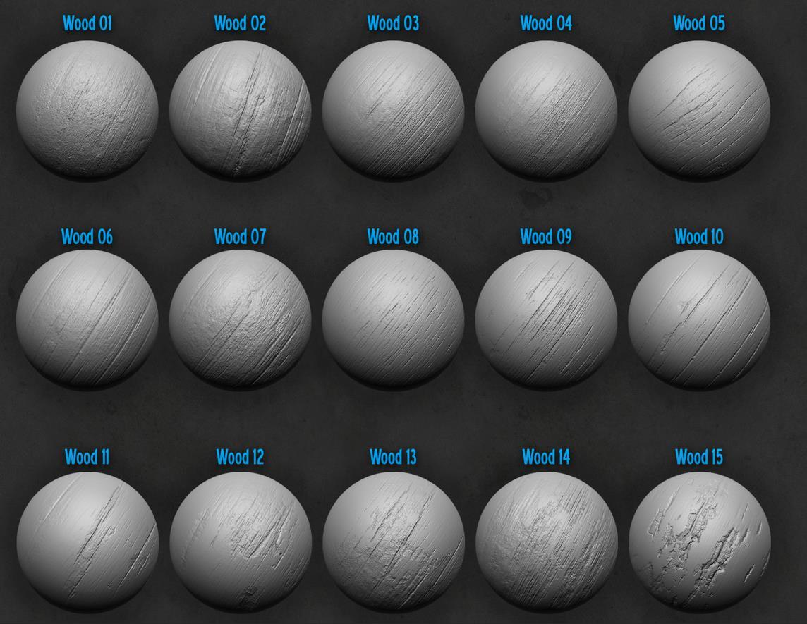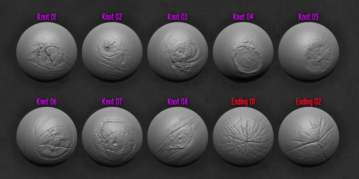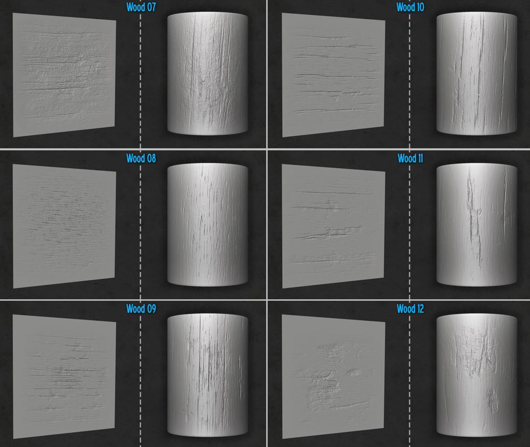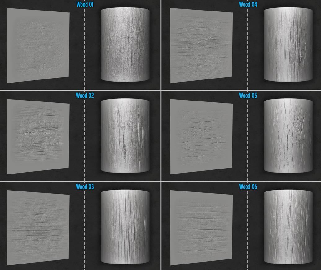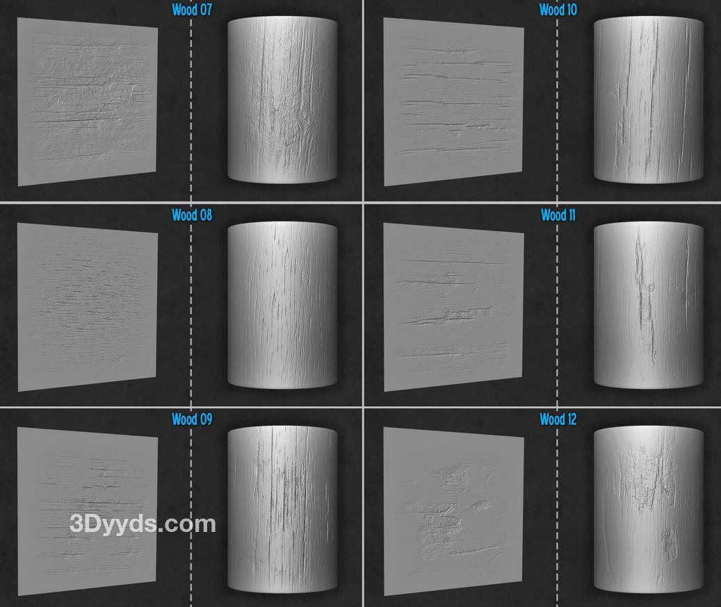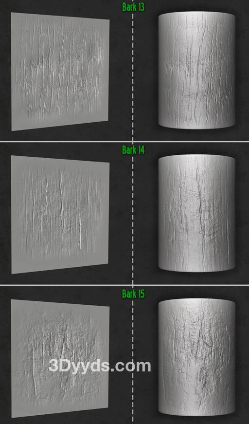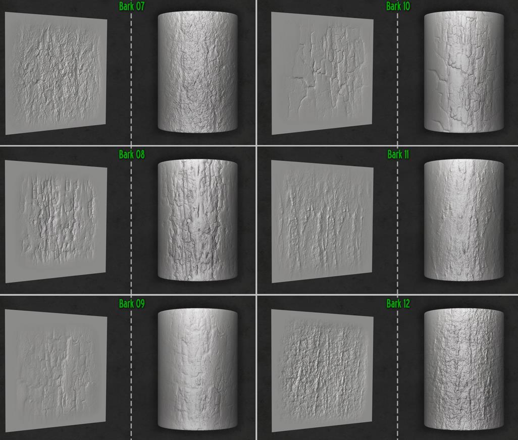 木材和树皮画笔及Alpha集合,适用于Zbrush。