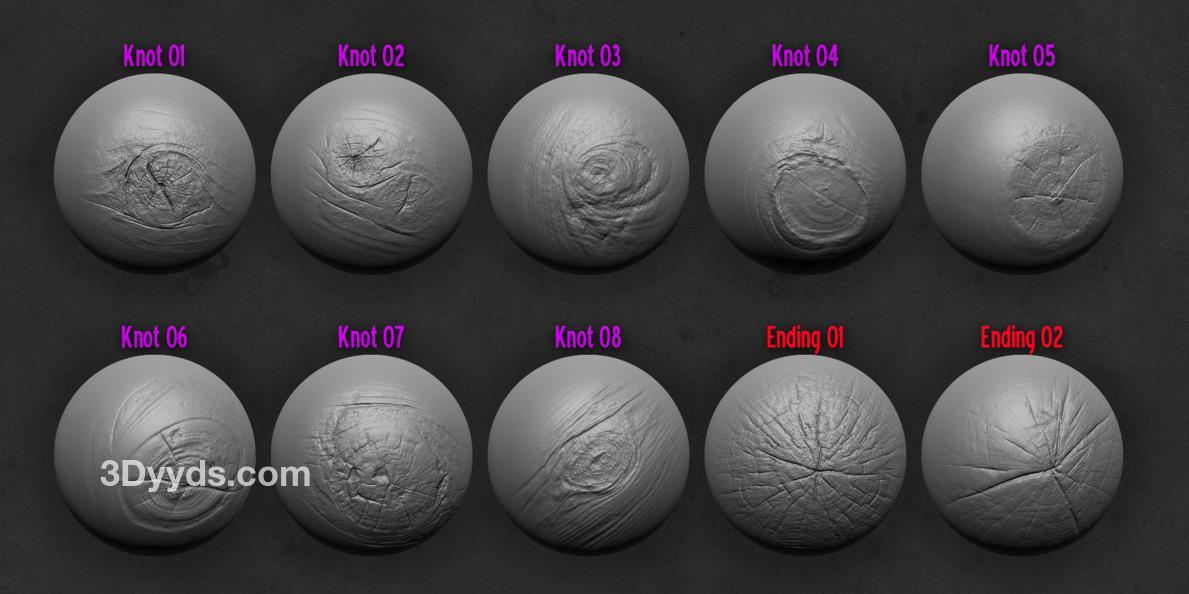 zbrush180树皮木纹木结疤年轮笔刷&树木木头
