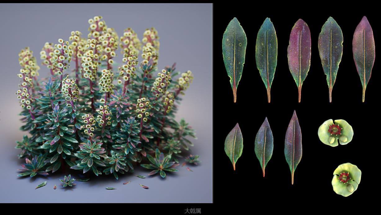我向您展示了一组我迄今为止制作的手绘植物,作为我实时树叶研究的一部分。在这个过程中没有使用任何程序工具——一切都是手工雕刻、绘画和组装的