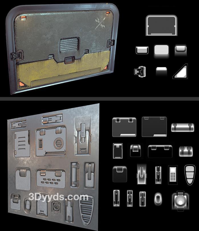 这些alpha贴图可以与任何支持alpha贴图和高度图的程序一起使用,你可以将它们添加到Quixel DDO、Substance Painter、3Dcoat、Mudbox、ZBrush等软件中。