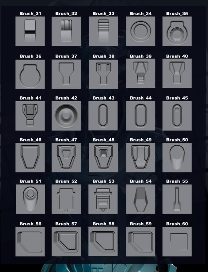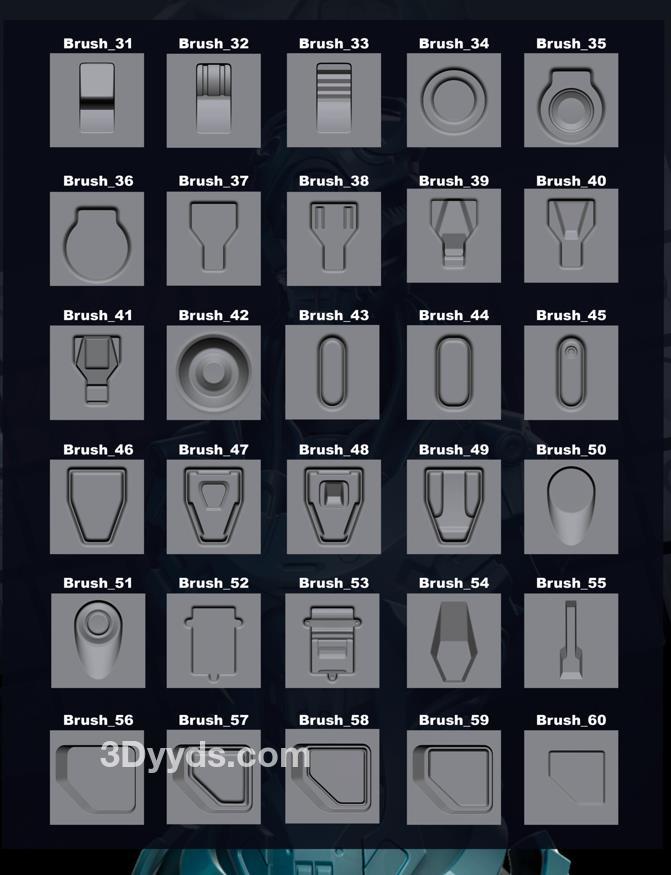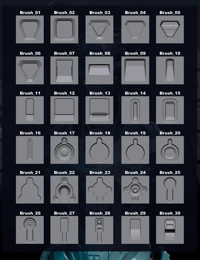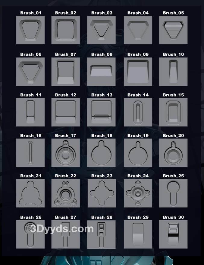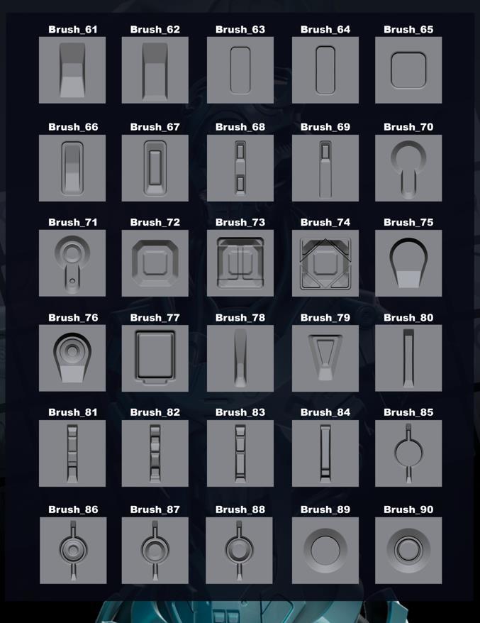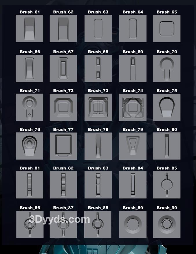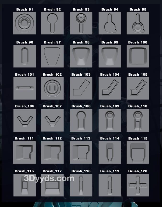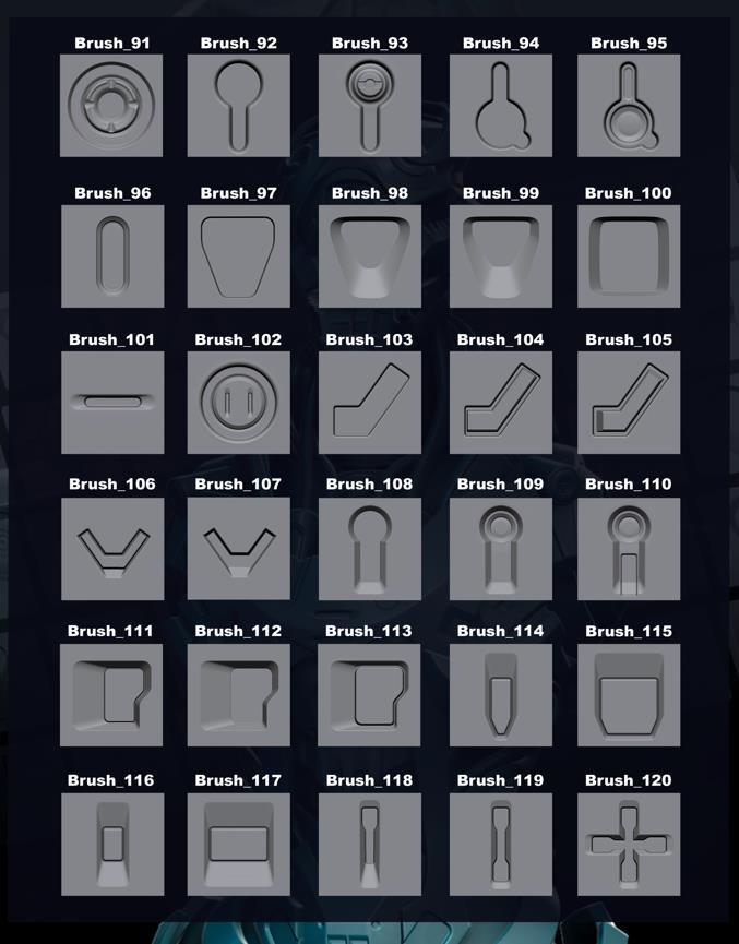 这是一组120个用于Zbrush的硬表面VDM笔刷。