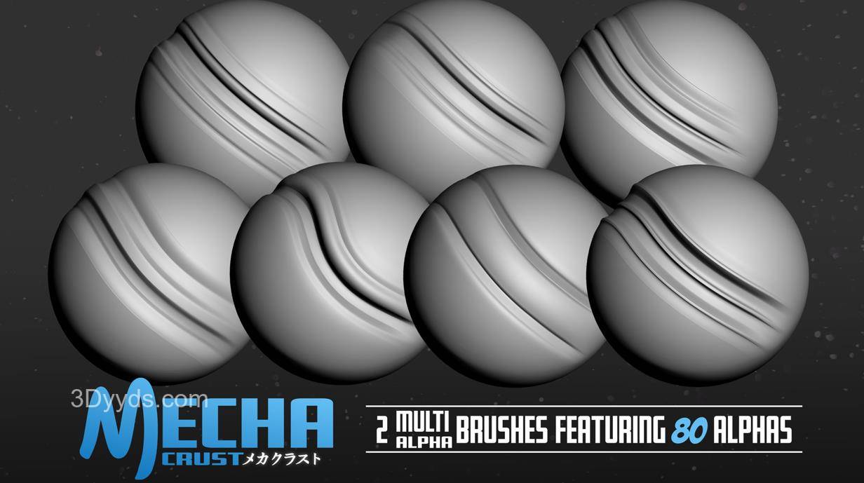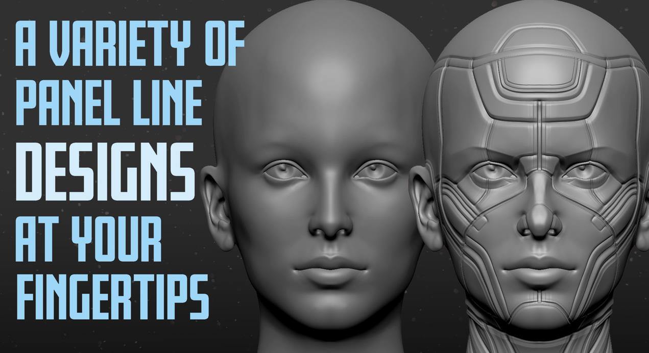 利用Zbrush令人惊叹的笔刷和曲线系统,这套笔刷非常适合在Zbrush中进行硬表面/机甲/科幻和/或赛博朋克主题的雕塑。(适用于Zbrush 2022.0.5及更高版本)