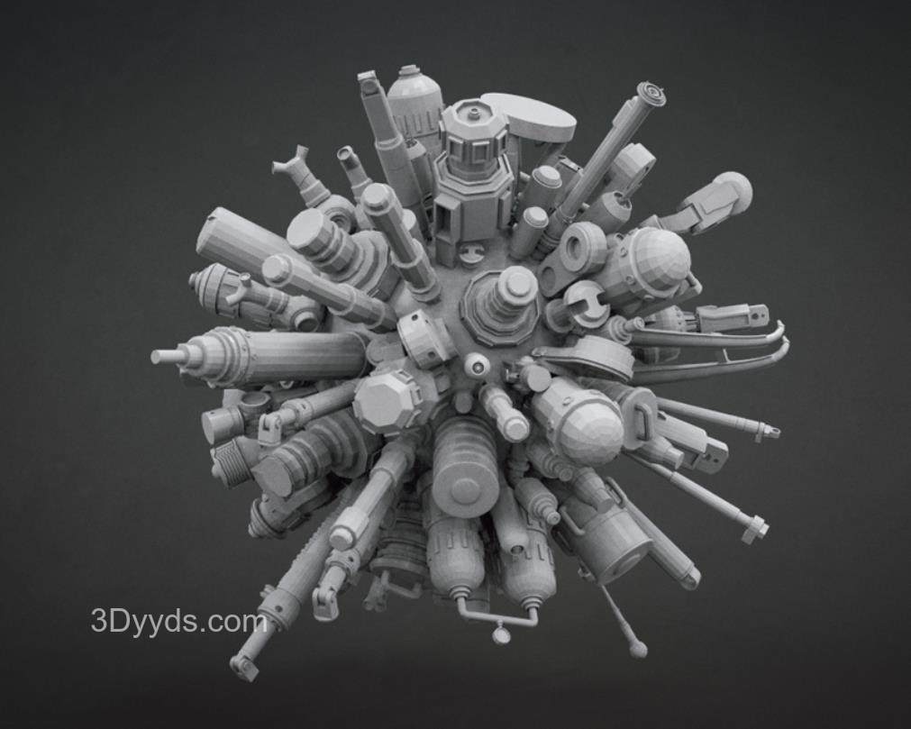 zbrush196机械机甲液压瓶雕刻笔刷&道具模型飞船硬表面