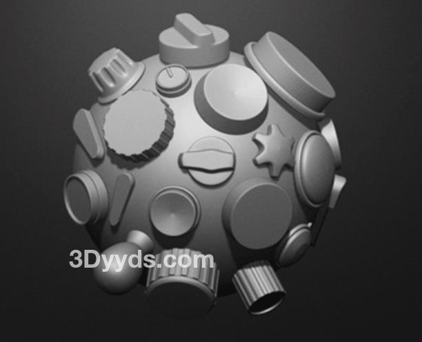 zbrush197机械按键开关旋钮笔刷&机械模型雕刻播音旋钮