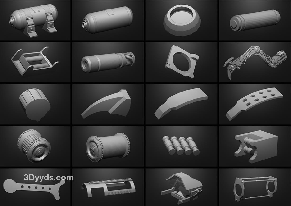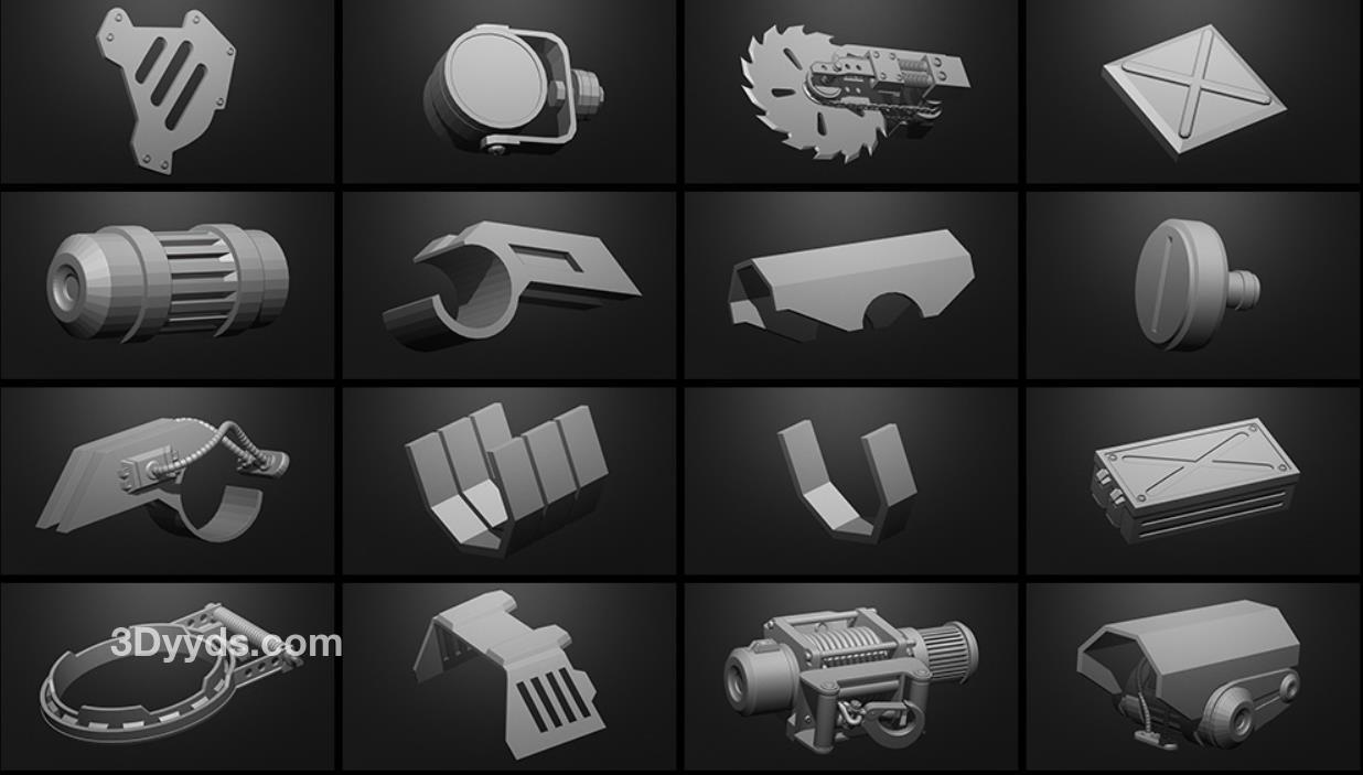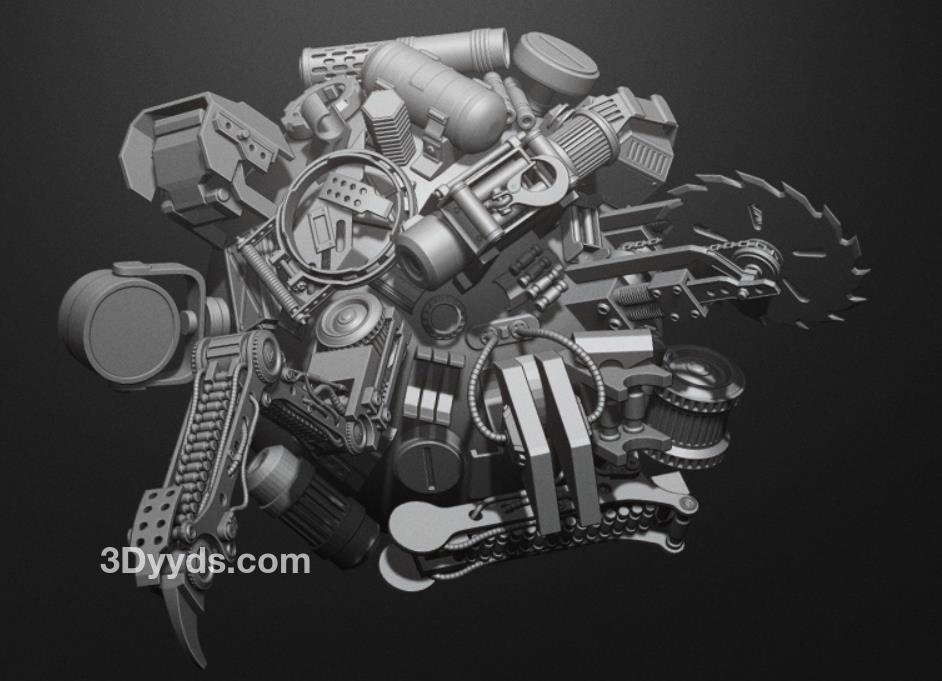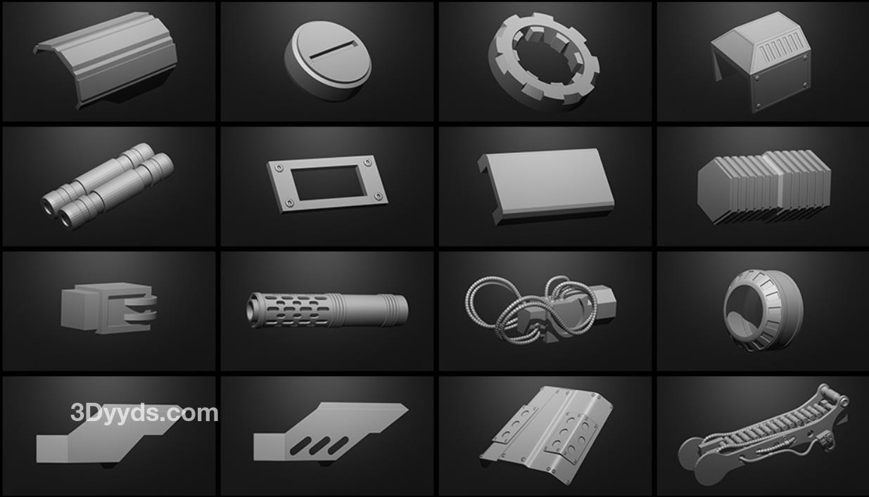 zbrush200机械硬表面零件武器发动机ZBP模型雕刻笔刷&电锯