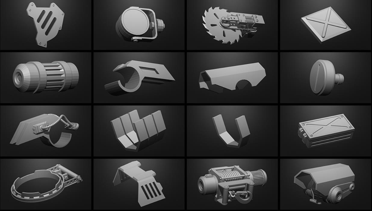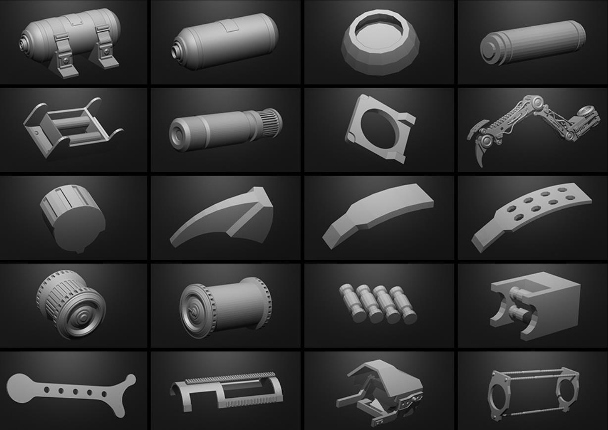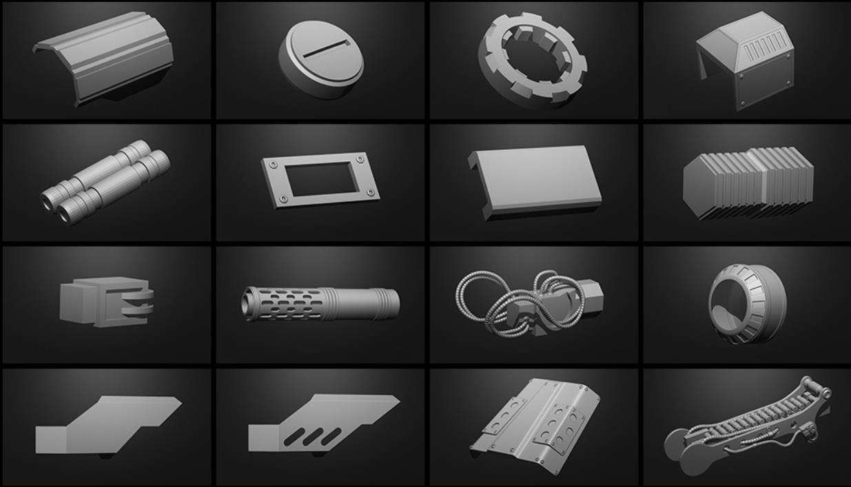 zbrush200机械硬表面零件武器发动机ZBP模型雕刻笔刷&电锯