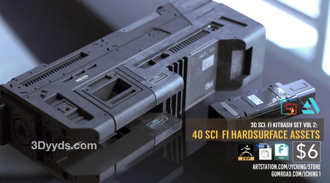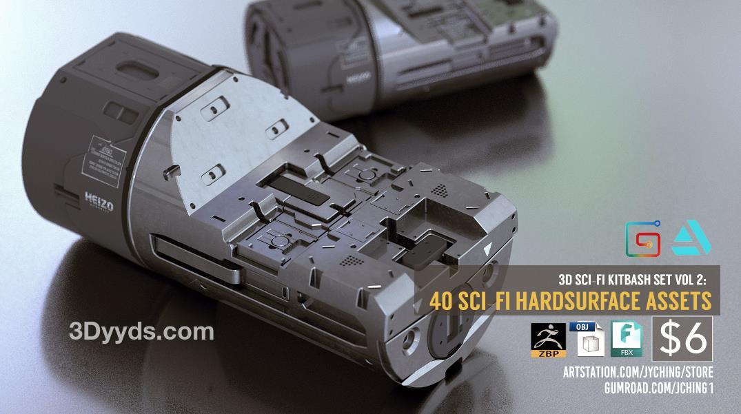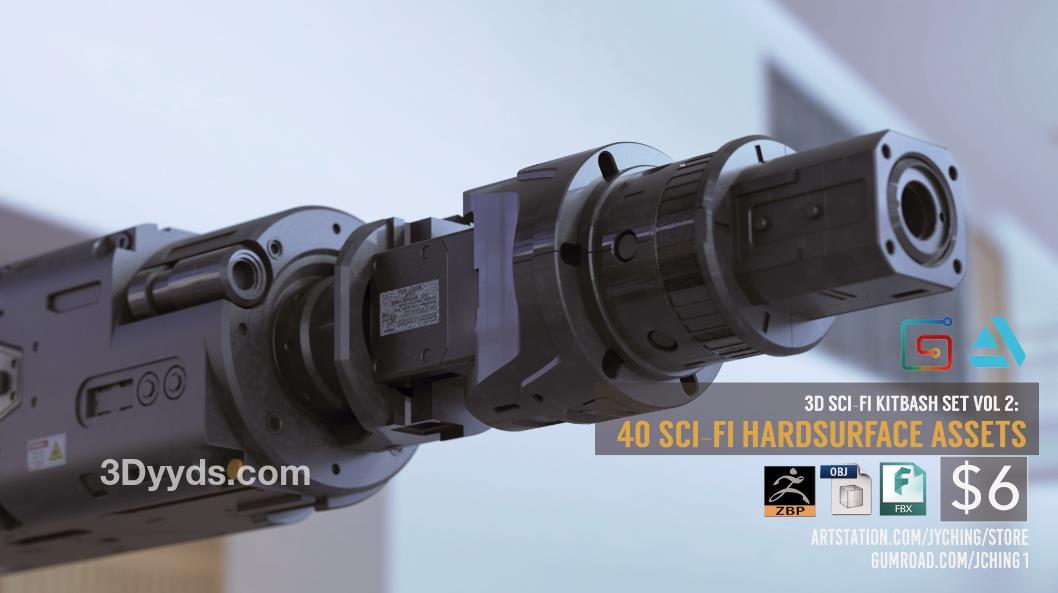 zbrush224科幻机械3D模型硬表面雕刻笔刷&OBJ工业机械
