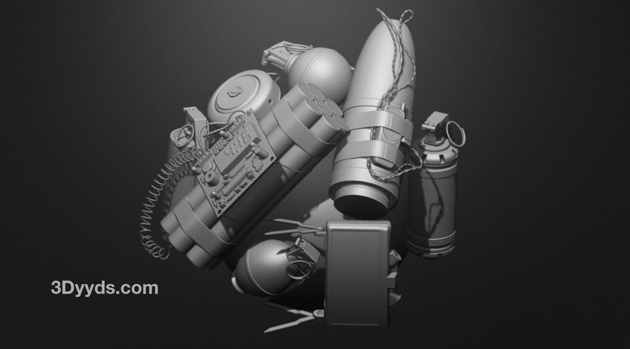 zbrush225炸弹炸药爆破计时器手雷笔刷&游戏地雷武器雕刻