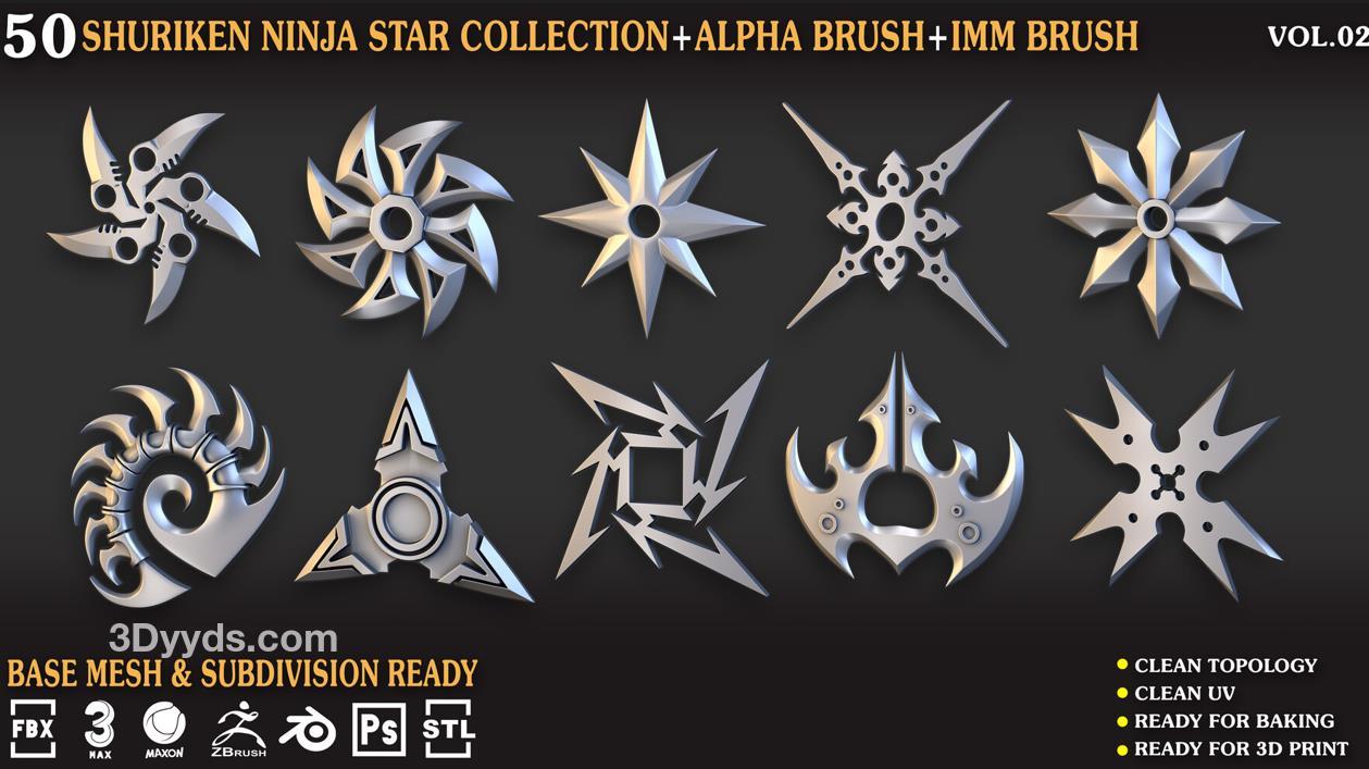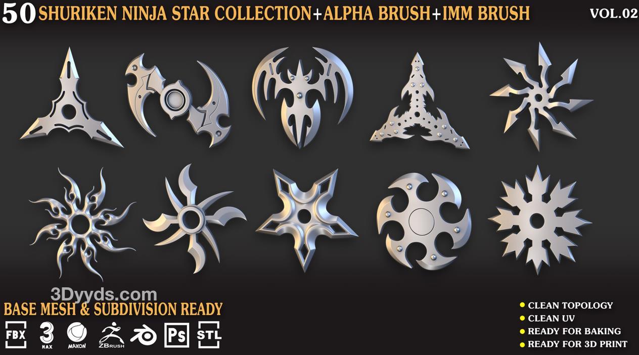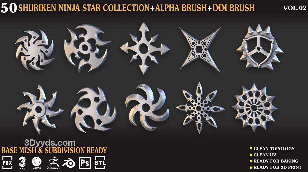 zbrush227飞镖暗器笔刷模型C4D&Blender武器