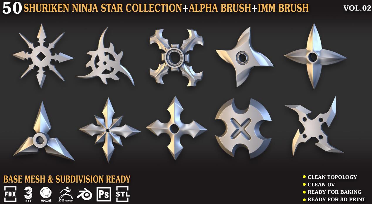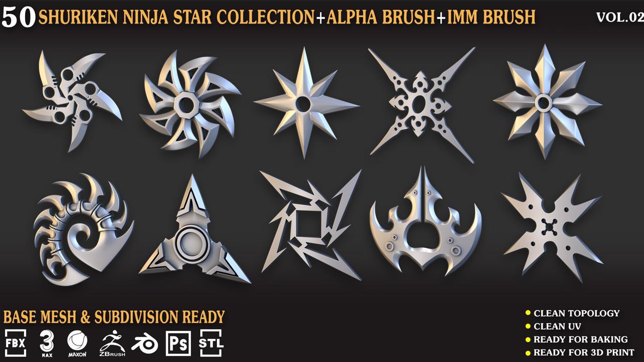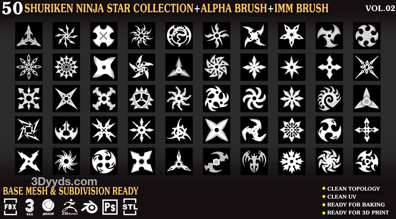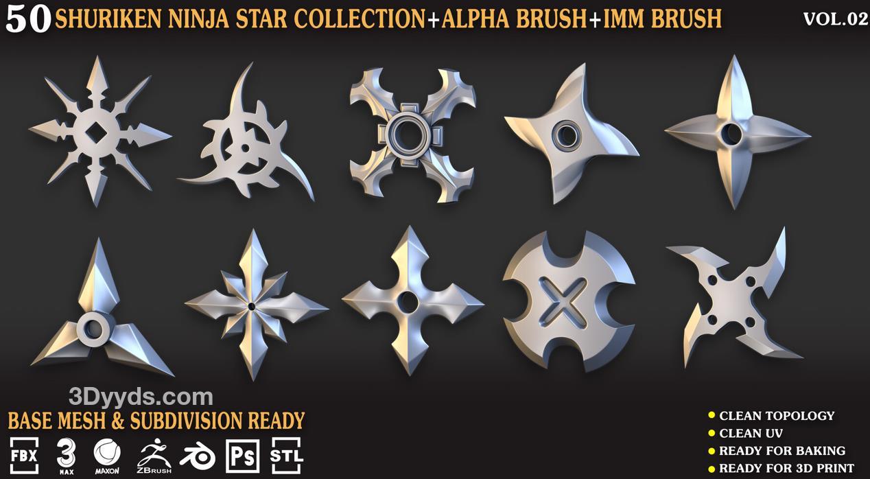 zbrush227飞镖暗器笔刷模型C4D&Blender武器