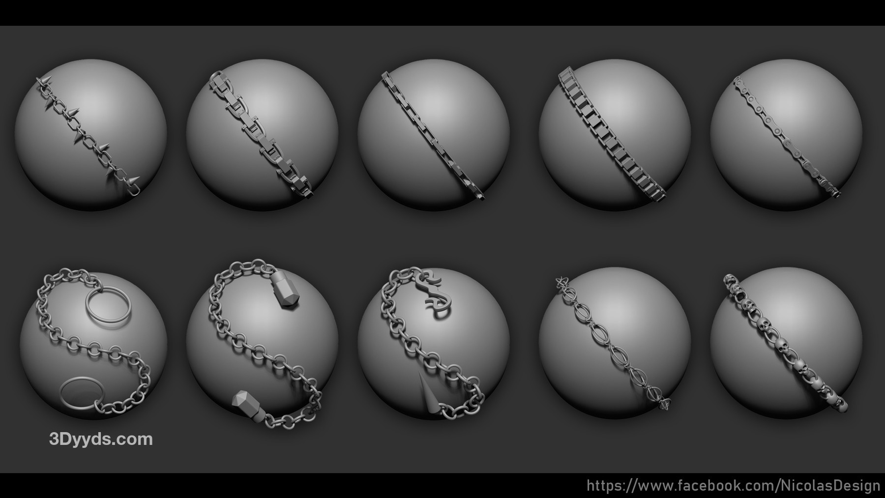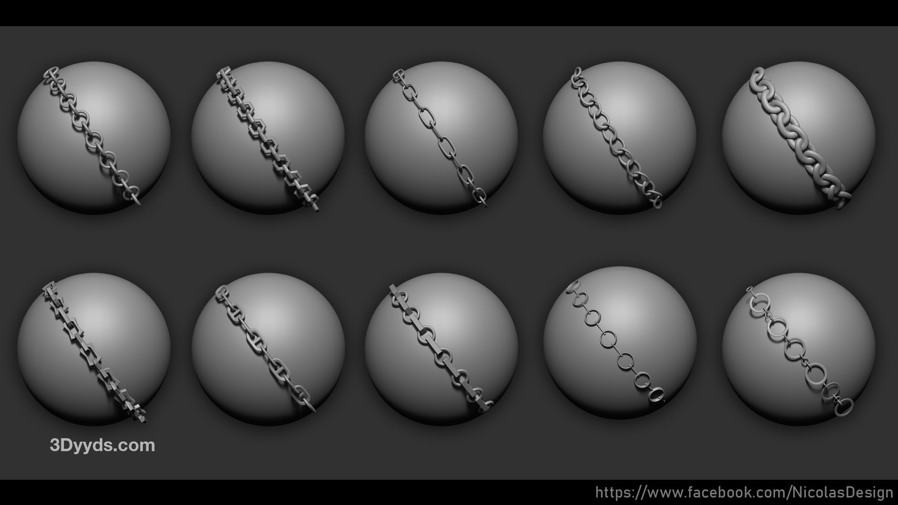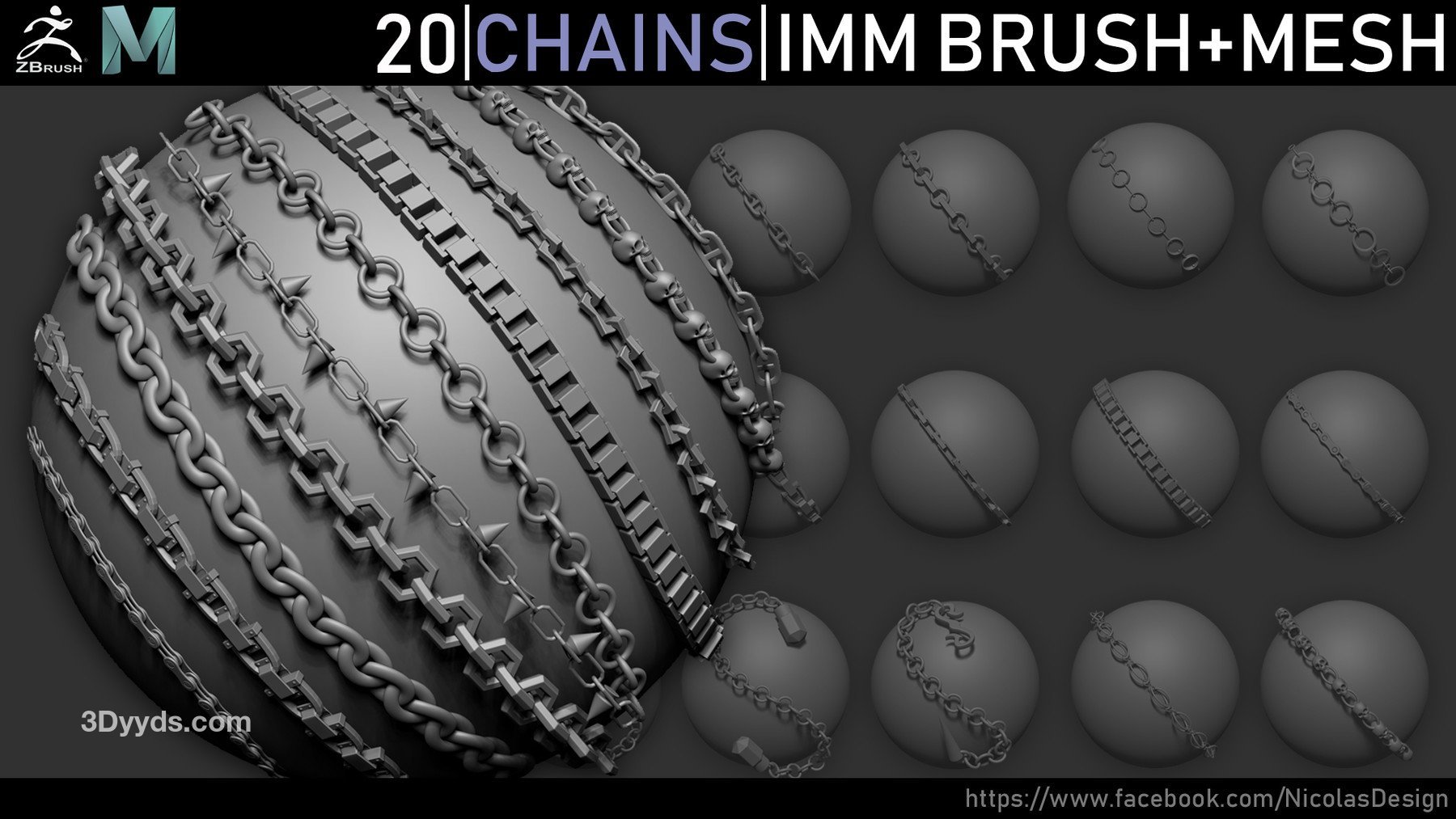 20 条链式曲线刷子,全部包含在一个多重网格刷子和低多边形网格中。