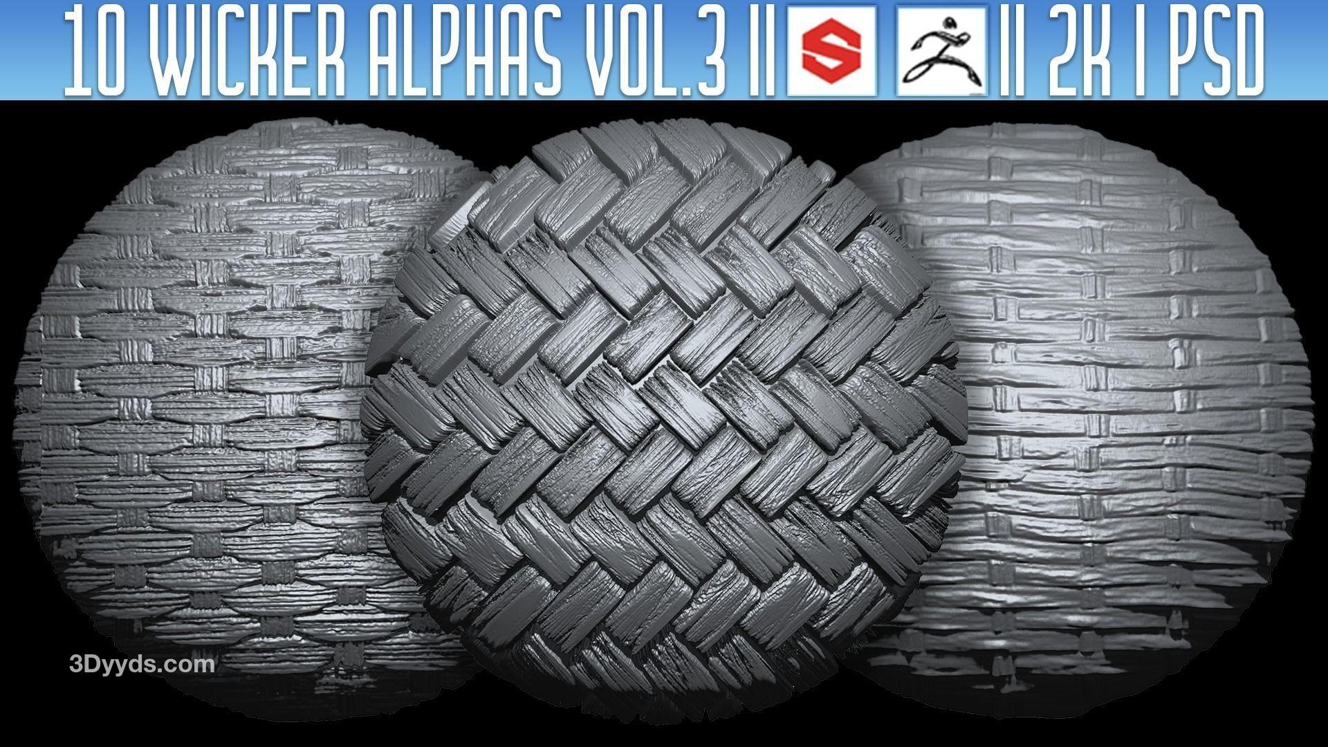 包包含 10 张 alpha 贴图(PSD,2K 分辨率),可在 Zbrush、Substance Painter 和其他程序中为网格添加柳条细节。