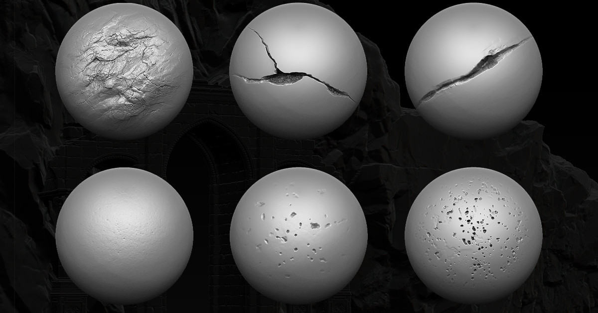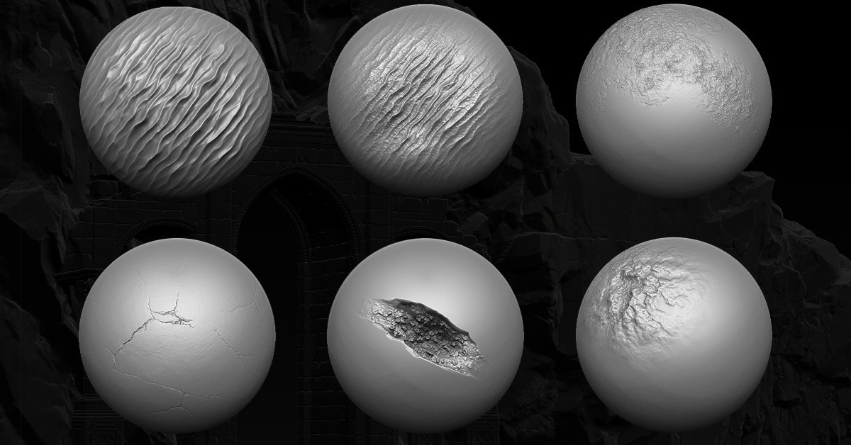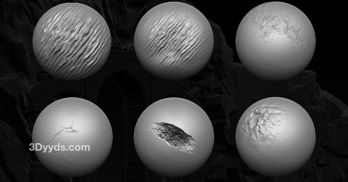 20个免费的Zbrush笔刷和18个Zbrush、Substance Painter、Mari或Quixel的阿尔法贴图。