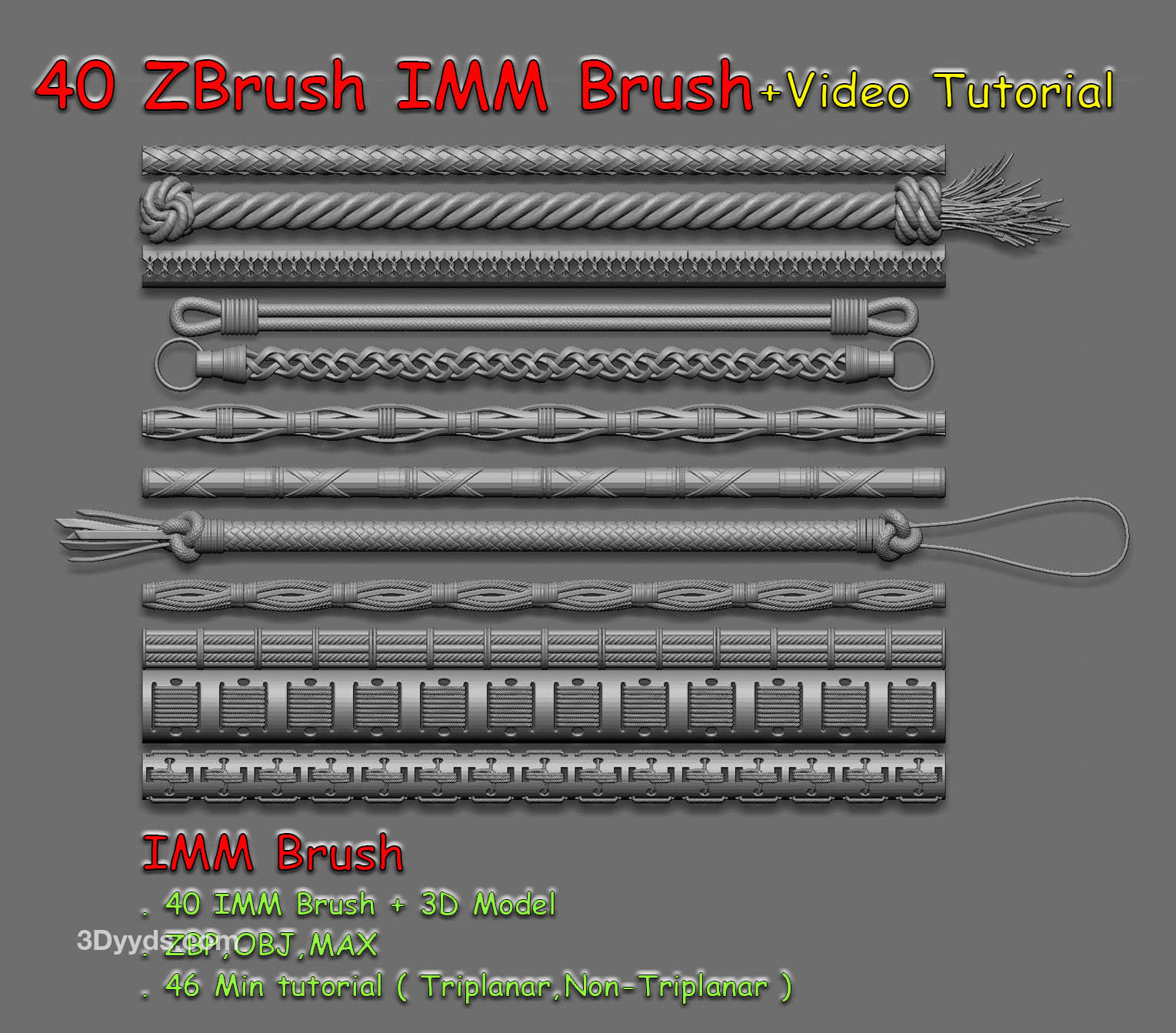40个ZBrush 绳索、锁链IMM笔刷+视频教程