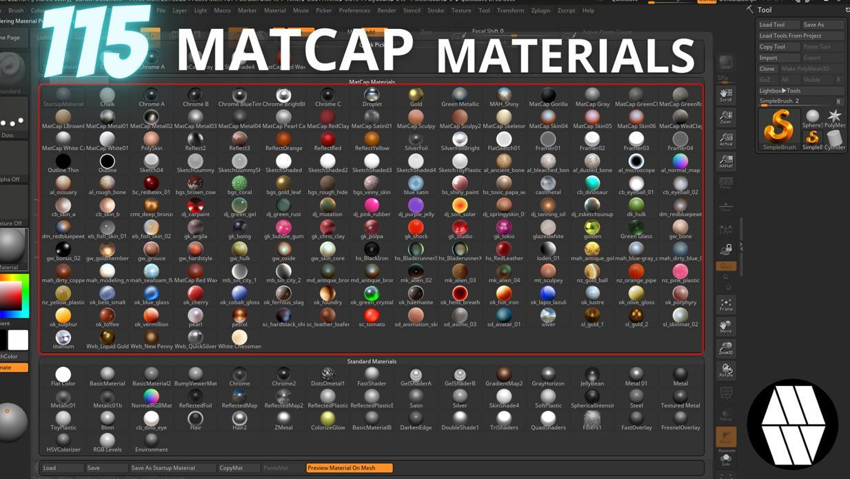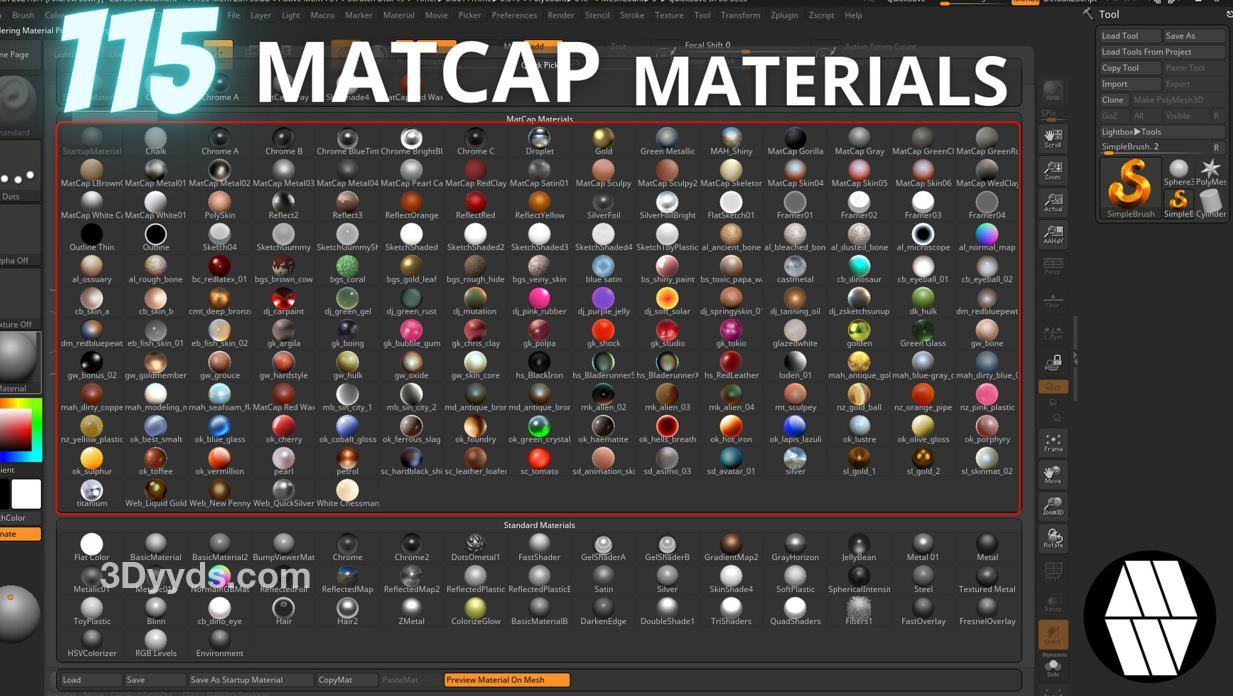 免费 ZBrush MatCap 材料。易于安装和使用。