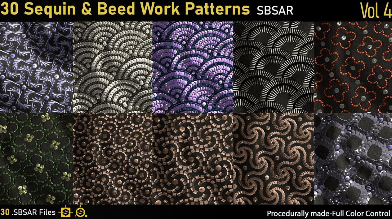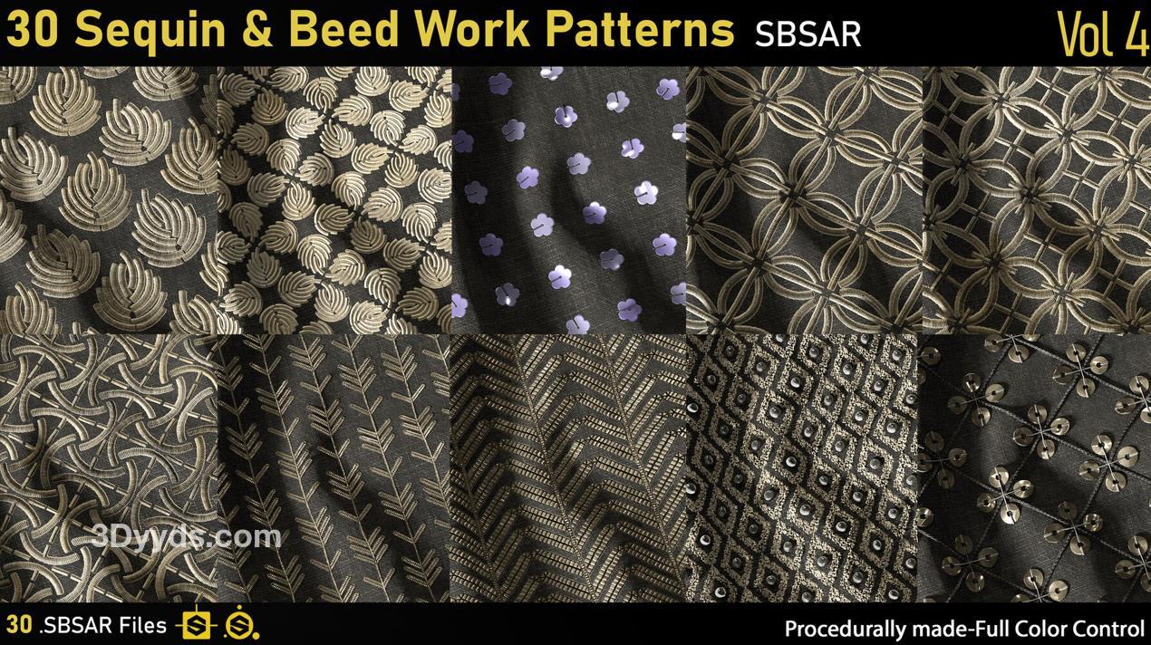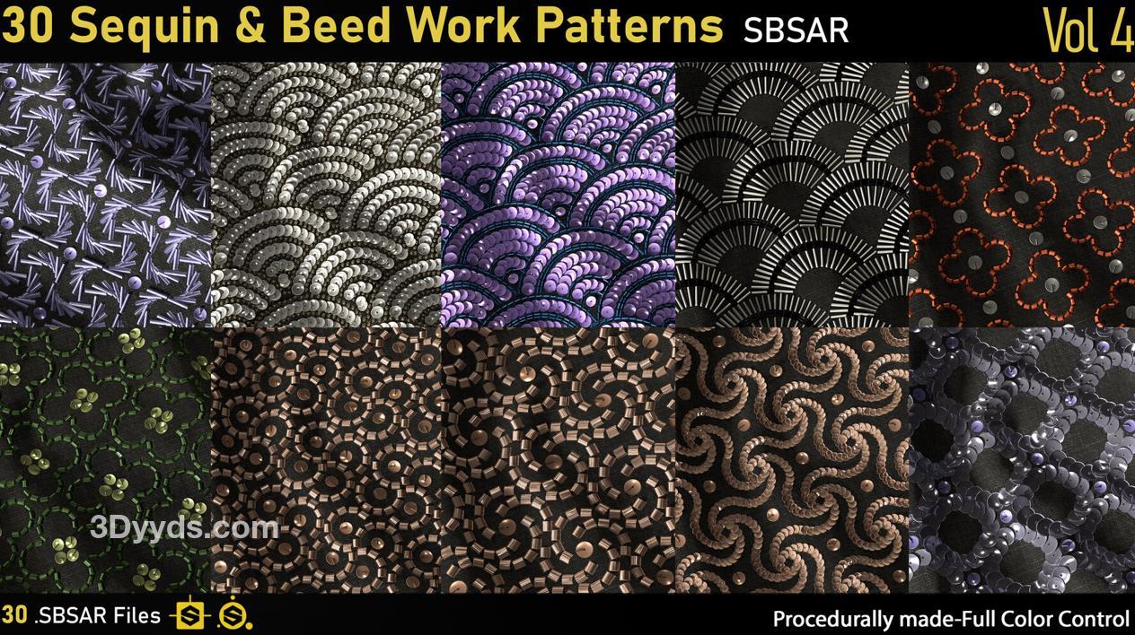 这里是一个包含30种不同4K亮片和珠饰工艺图案的套件。