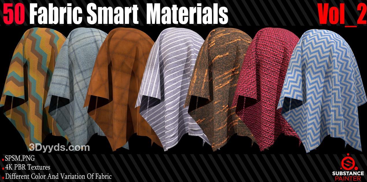 本产品包括50种适用于Substance Painter的布料智能材质以及4K PBR纹理。您可以将这些4K PBR纹理用于任何支持纹理和高度图的程序中。