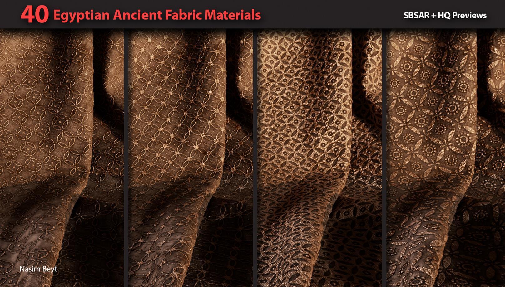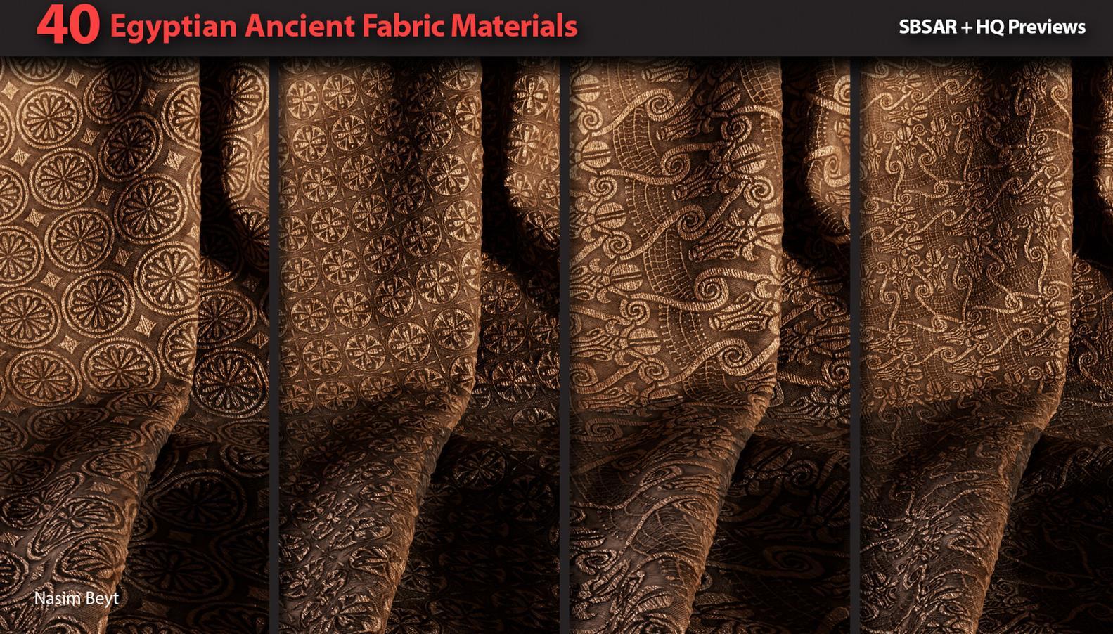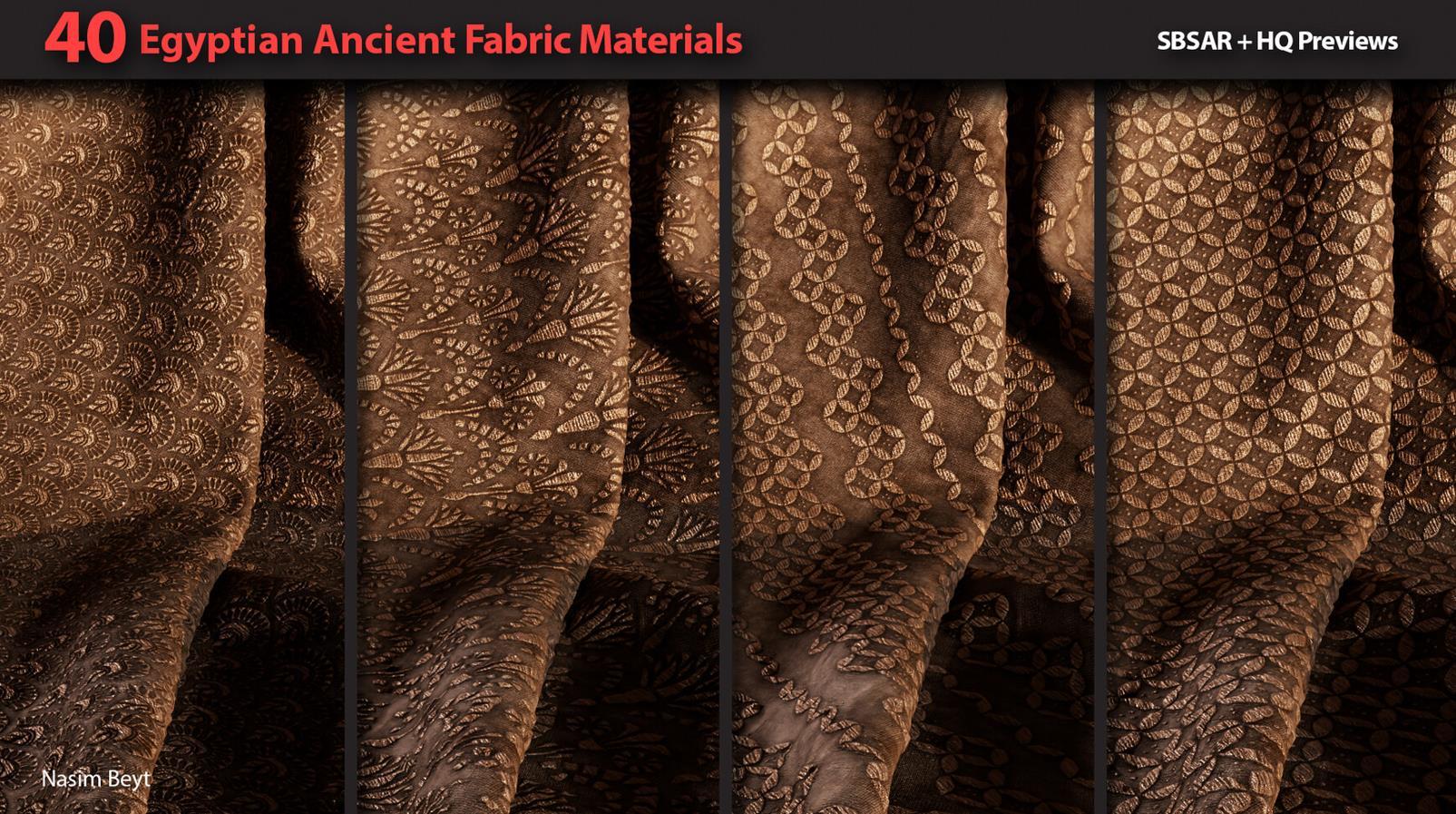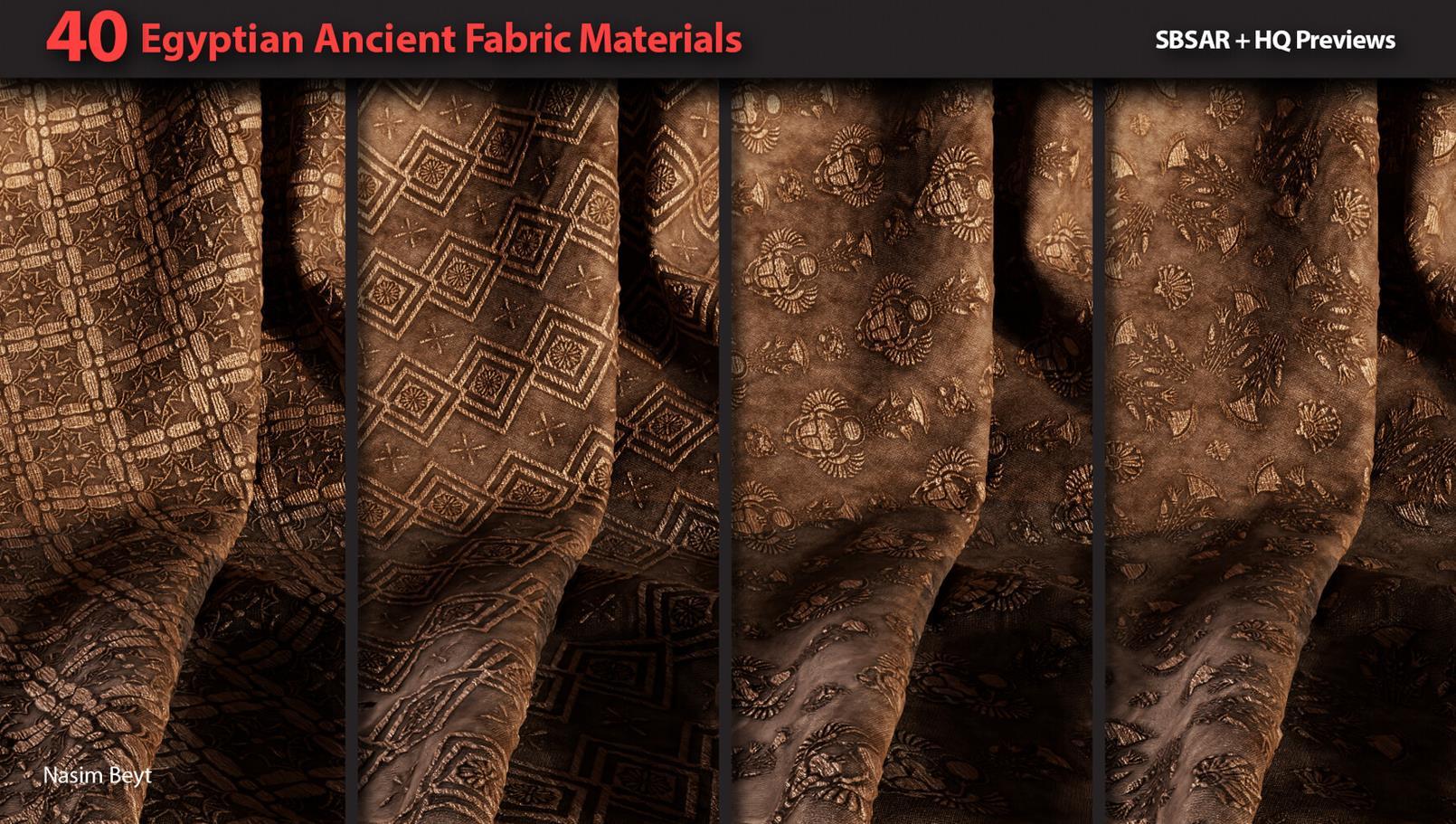 这是一组包含40种不同的4K程序生成的埃及风格织物图案,格式为sbsar。