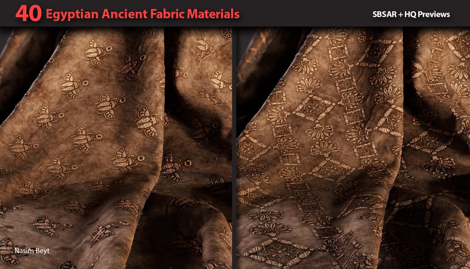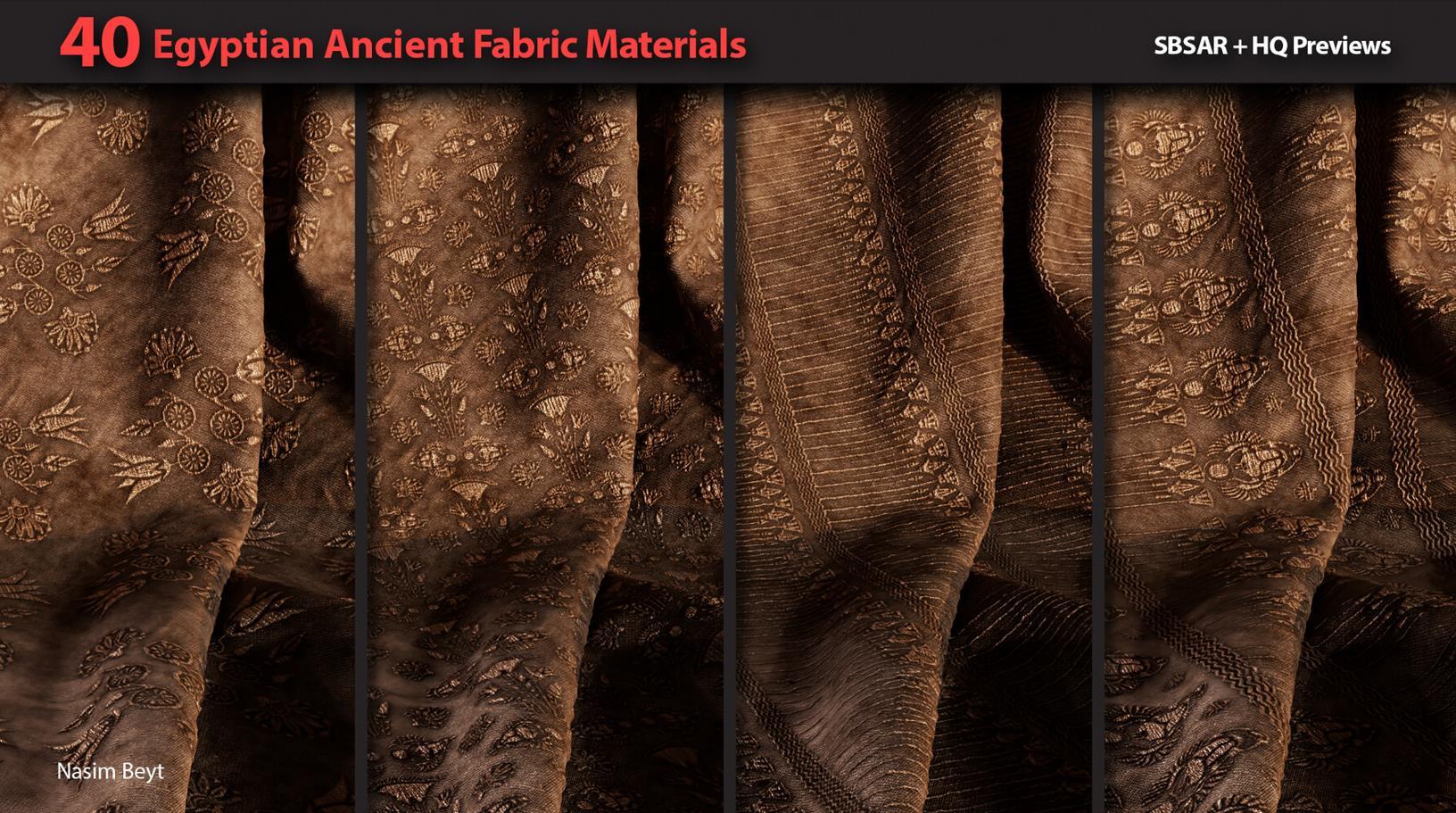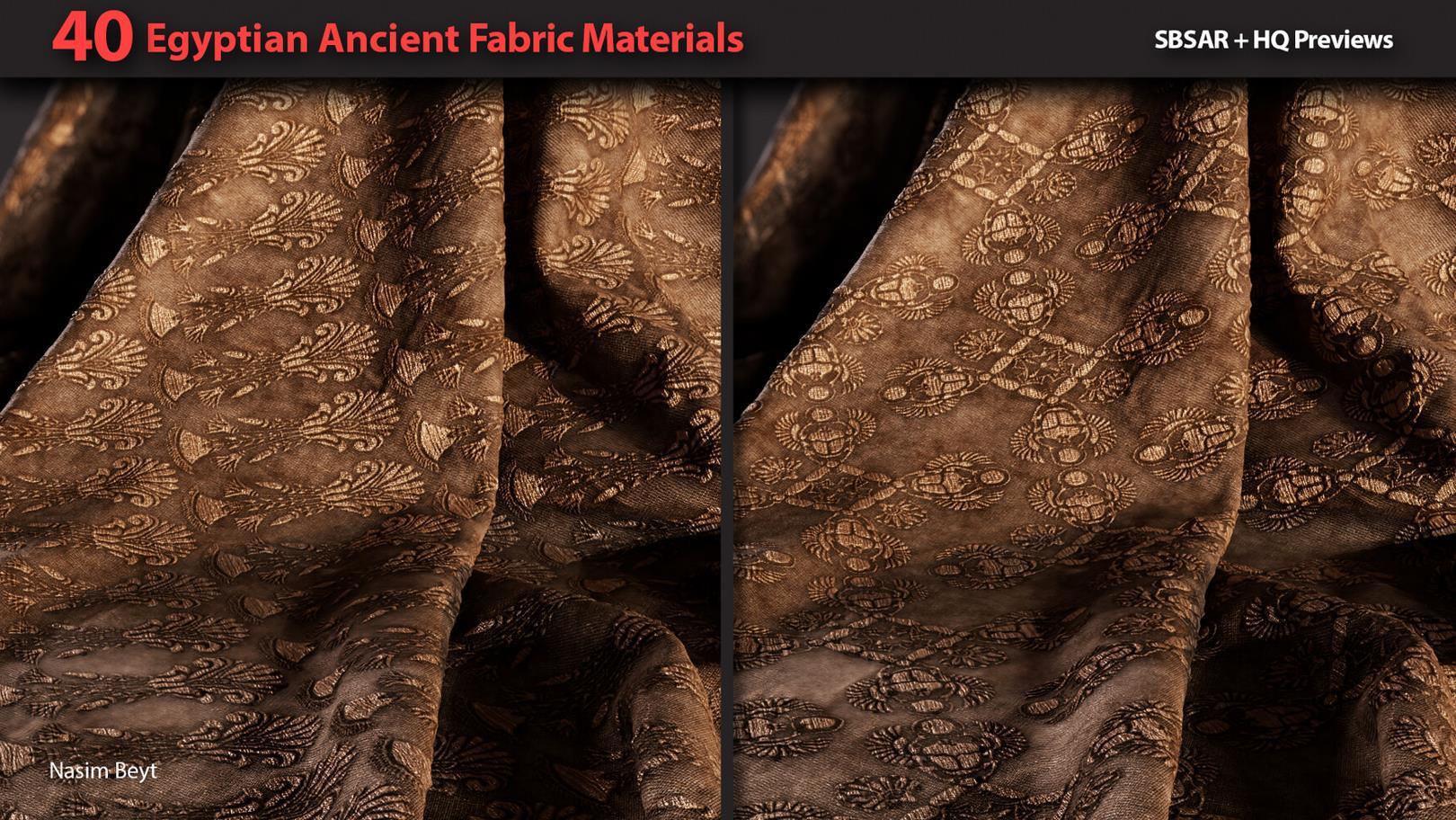 这是一组包含40种不同的4K程序生成的埃及风格织物图案,格式为sbsar。