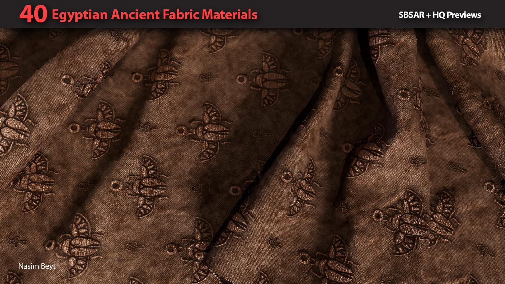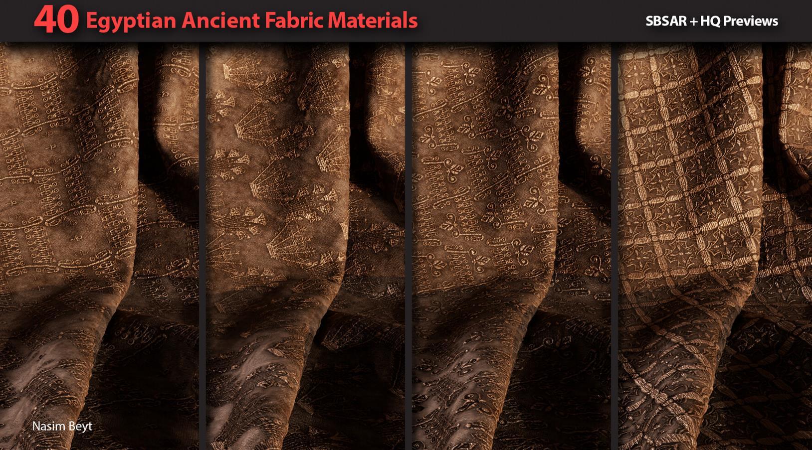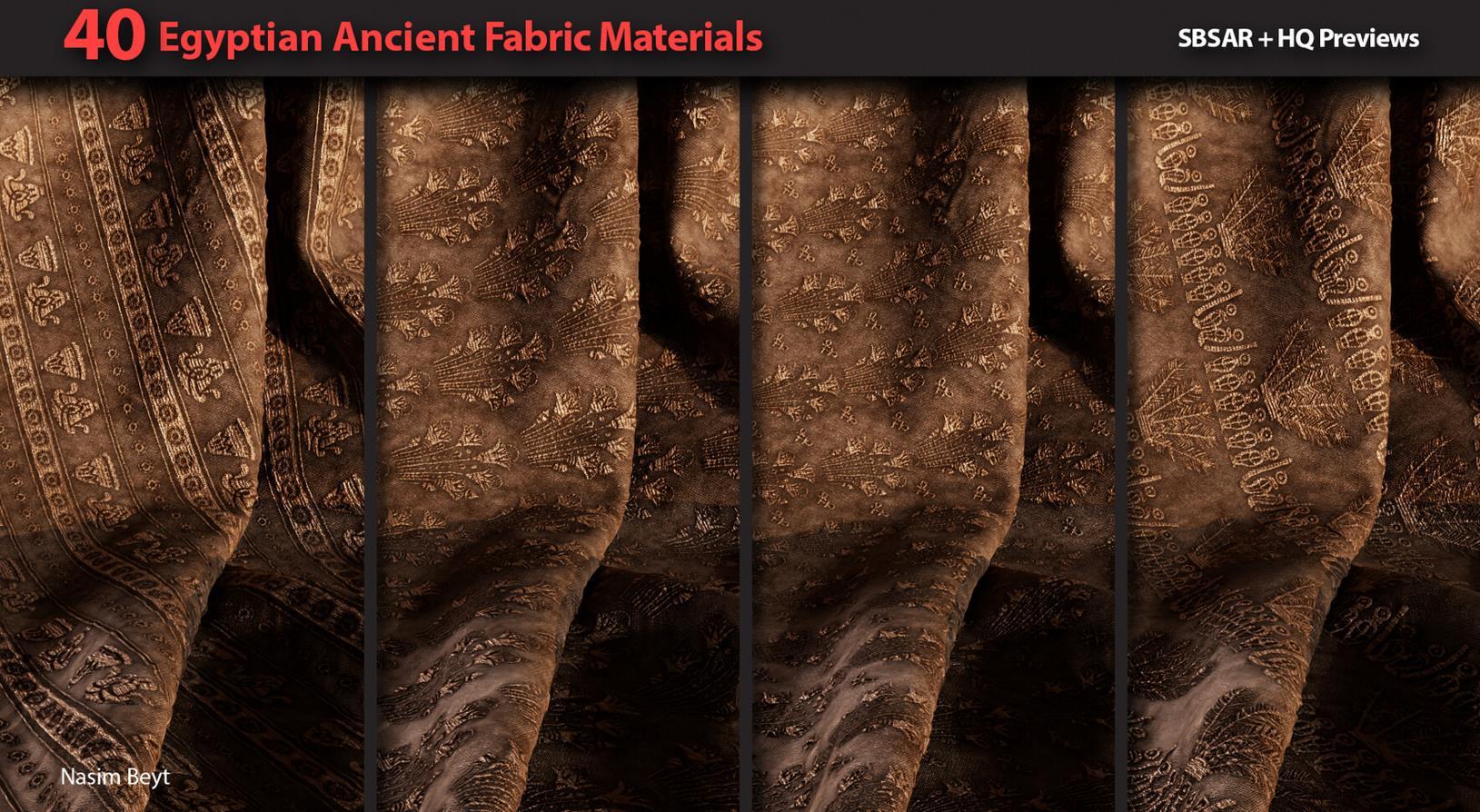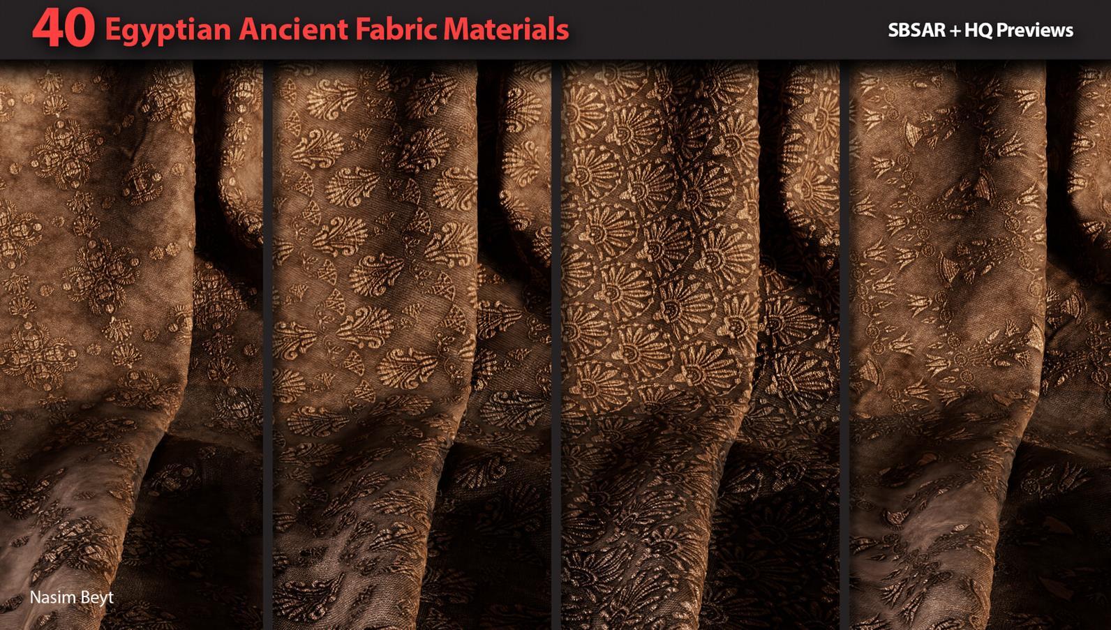 这是一组包含40种不同的4K程序生成的埃及风格织物图案,格式为sbsar。