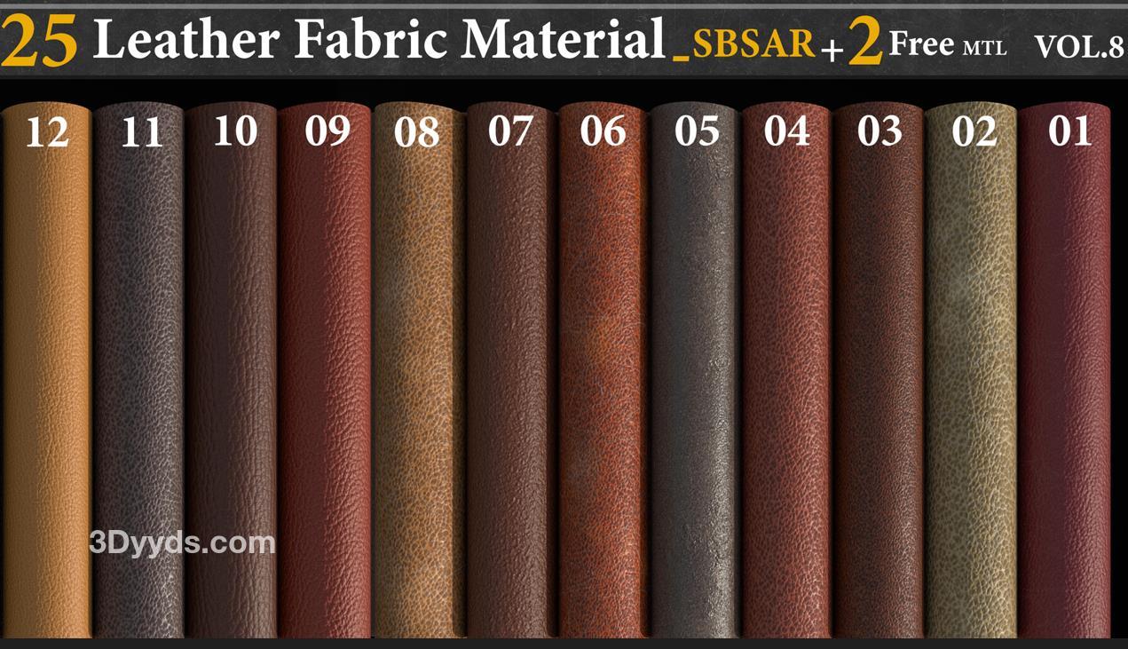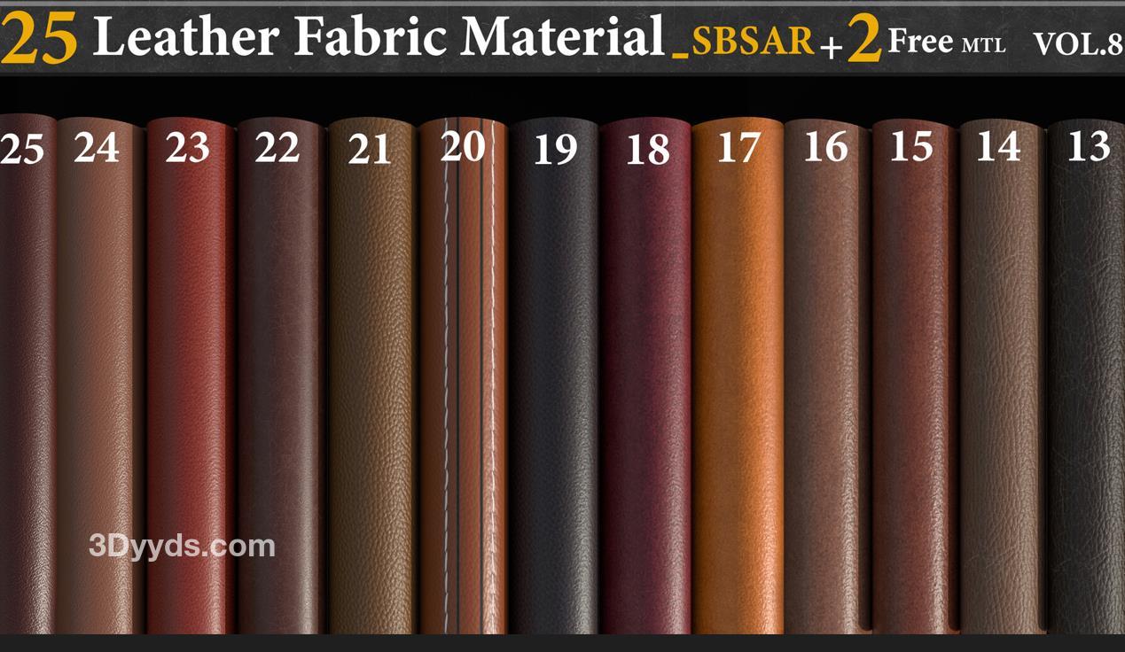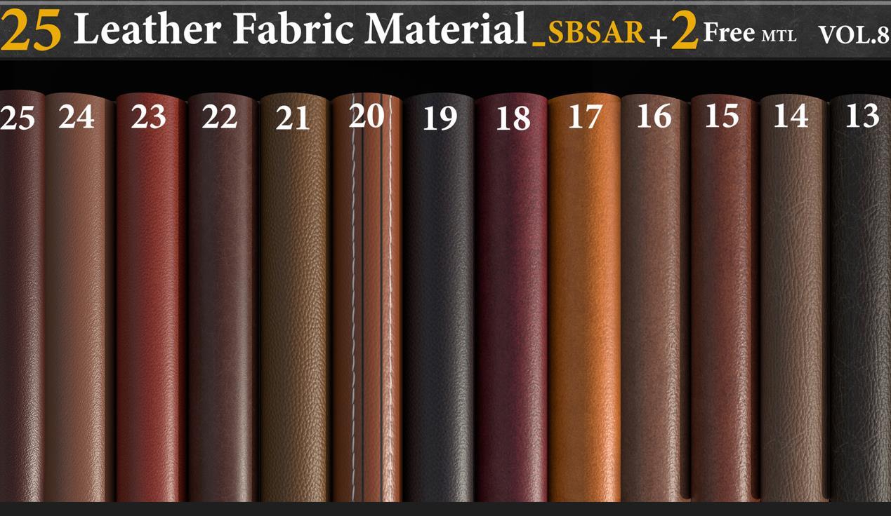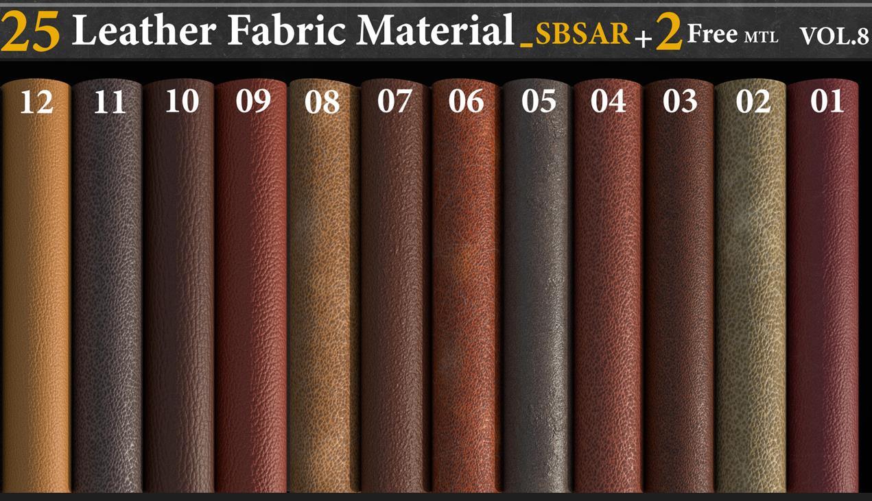这是一套包含25种全由Substance Designer制作的皮革材质-SBSAR文件,您可以在每种材质中调整以下参数: