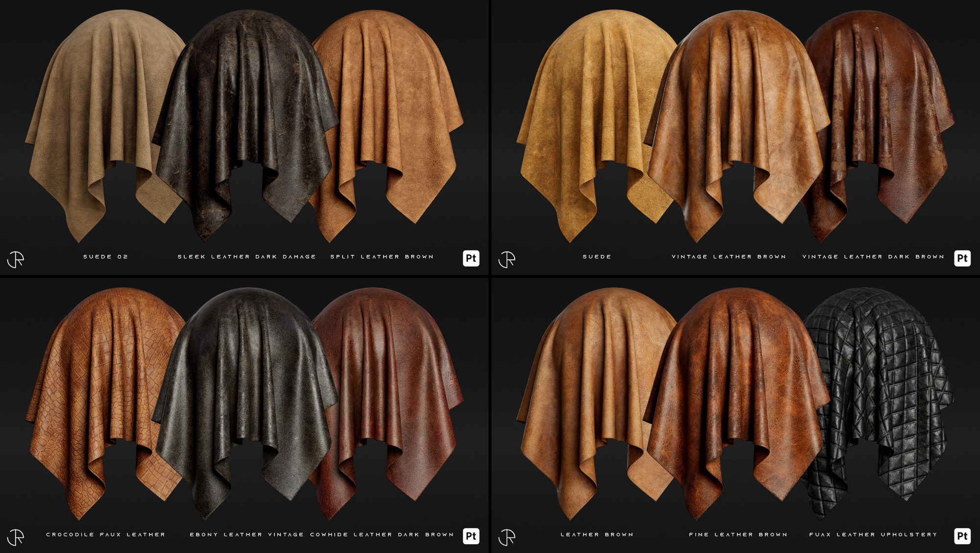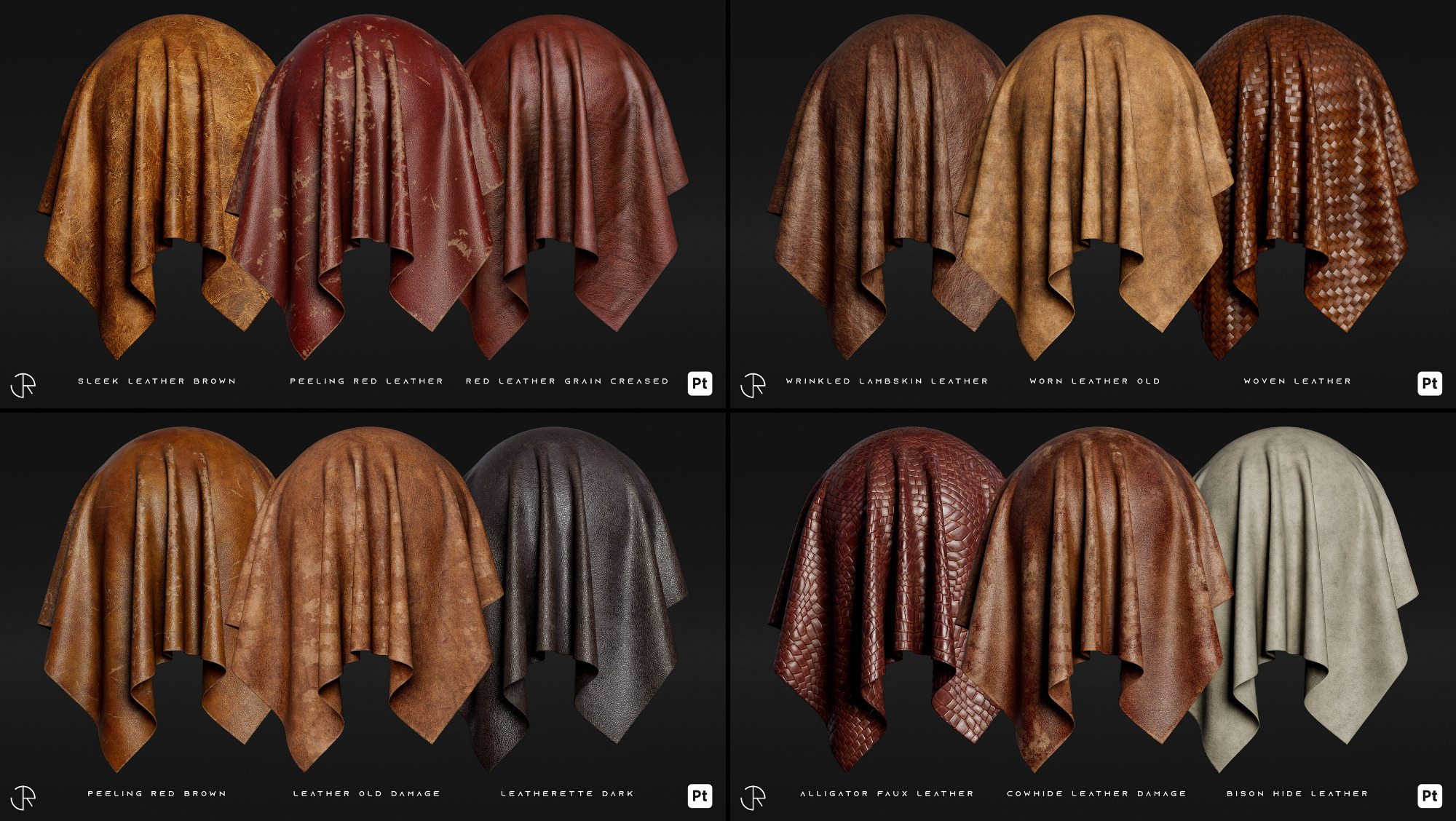 这些智能材质提供了多种可能性和变化,让您能为项目创造出完美的皮革效果。从老旧破损到光亮干净,我们的材质提供了无尽的可能性。