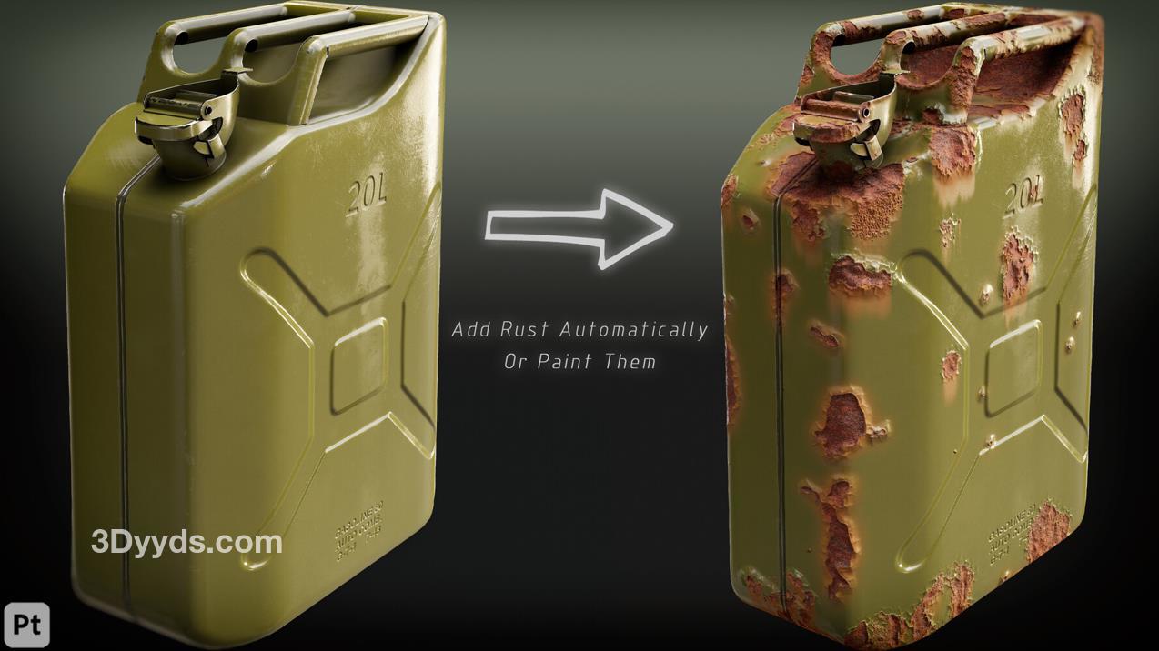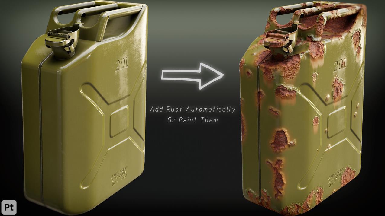 使用这个智能材质,您可以自动创建锈蚀效果,或者使用笔刷进行绘制。