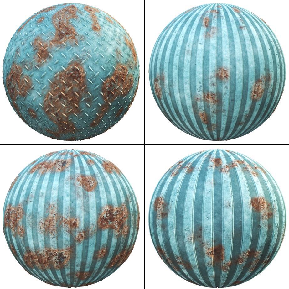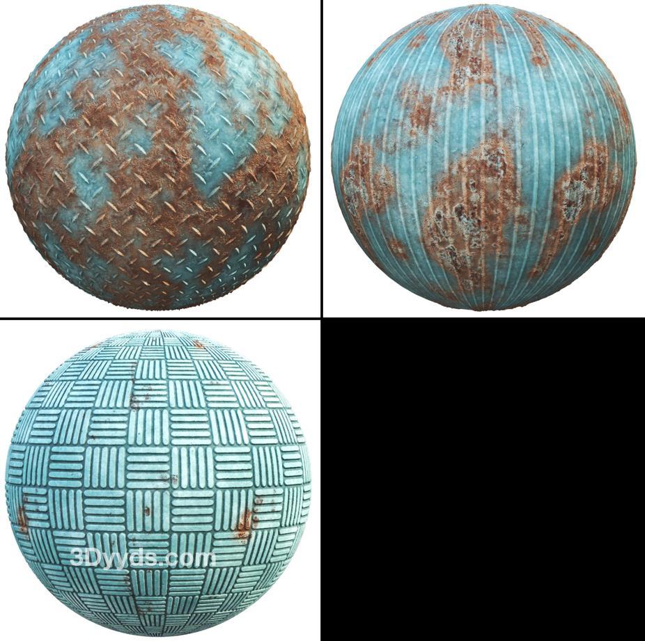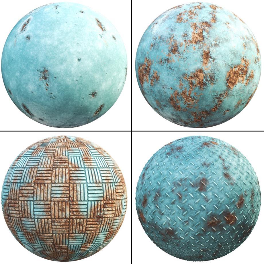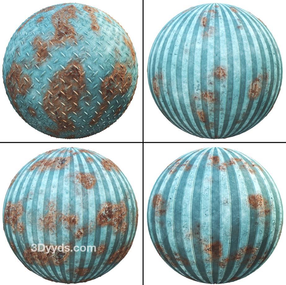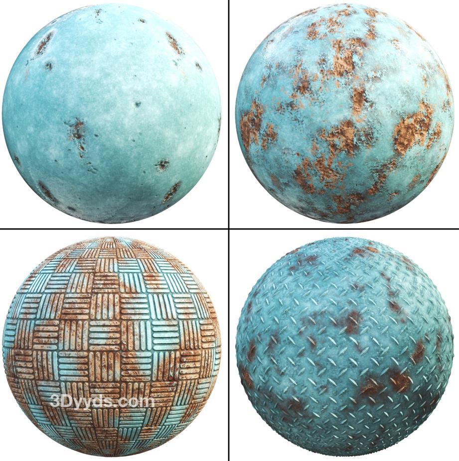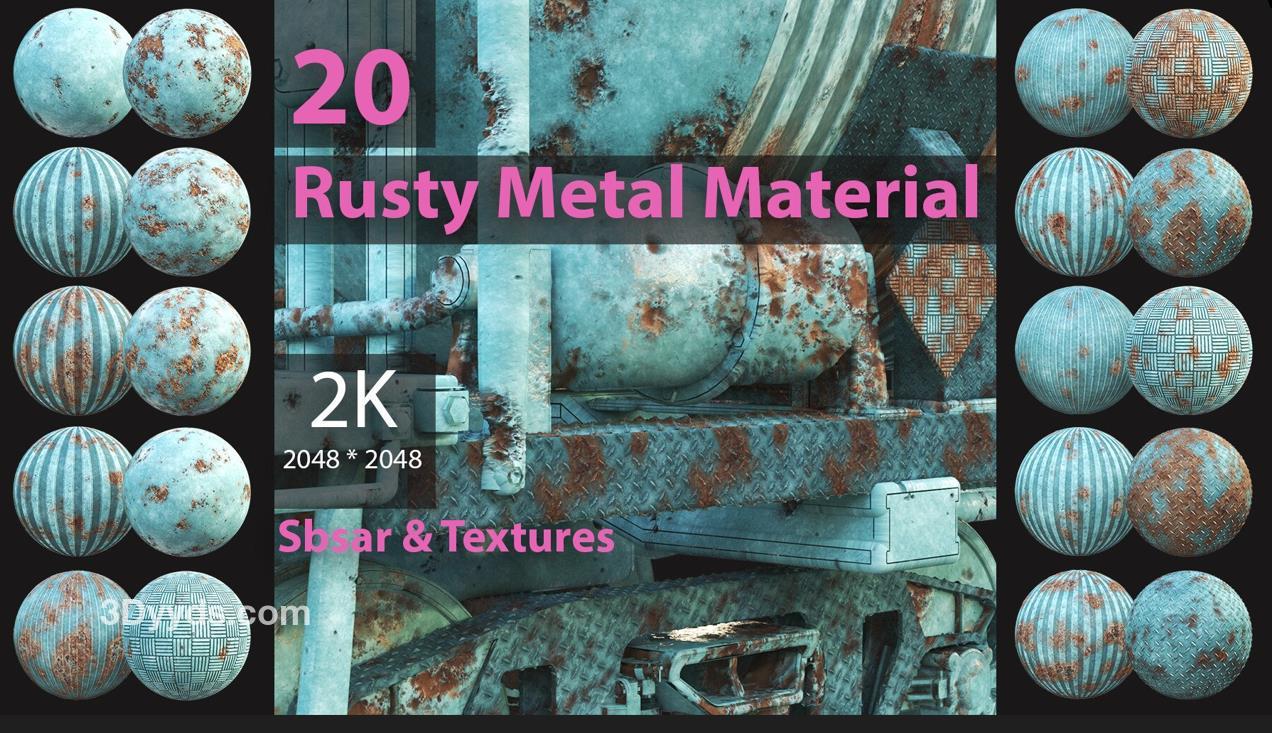 这个产品包括了20种PBR蓝色锈蚀金属材质,提供纹理和SBSAR文件。