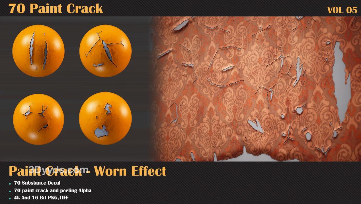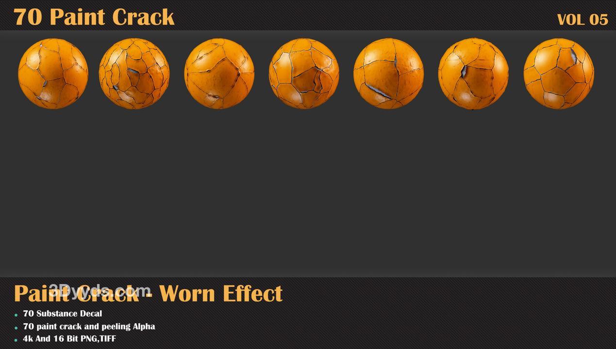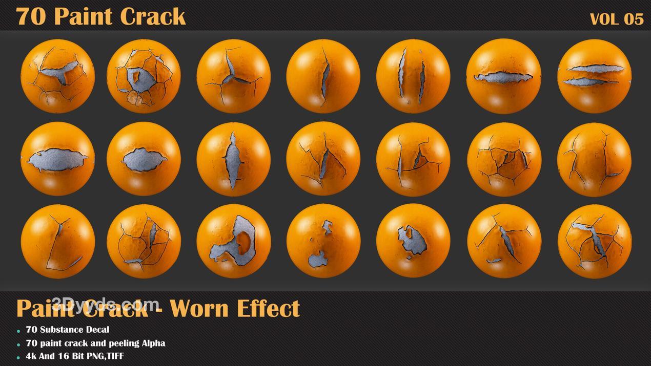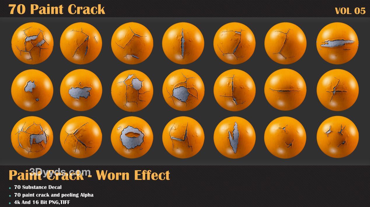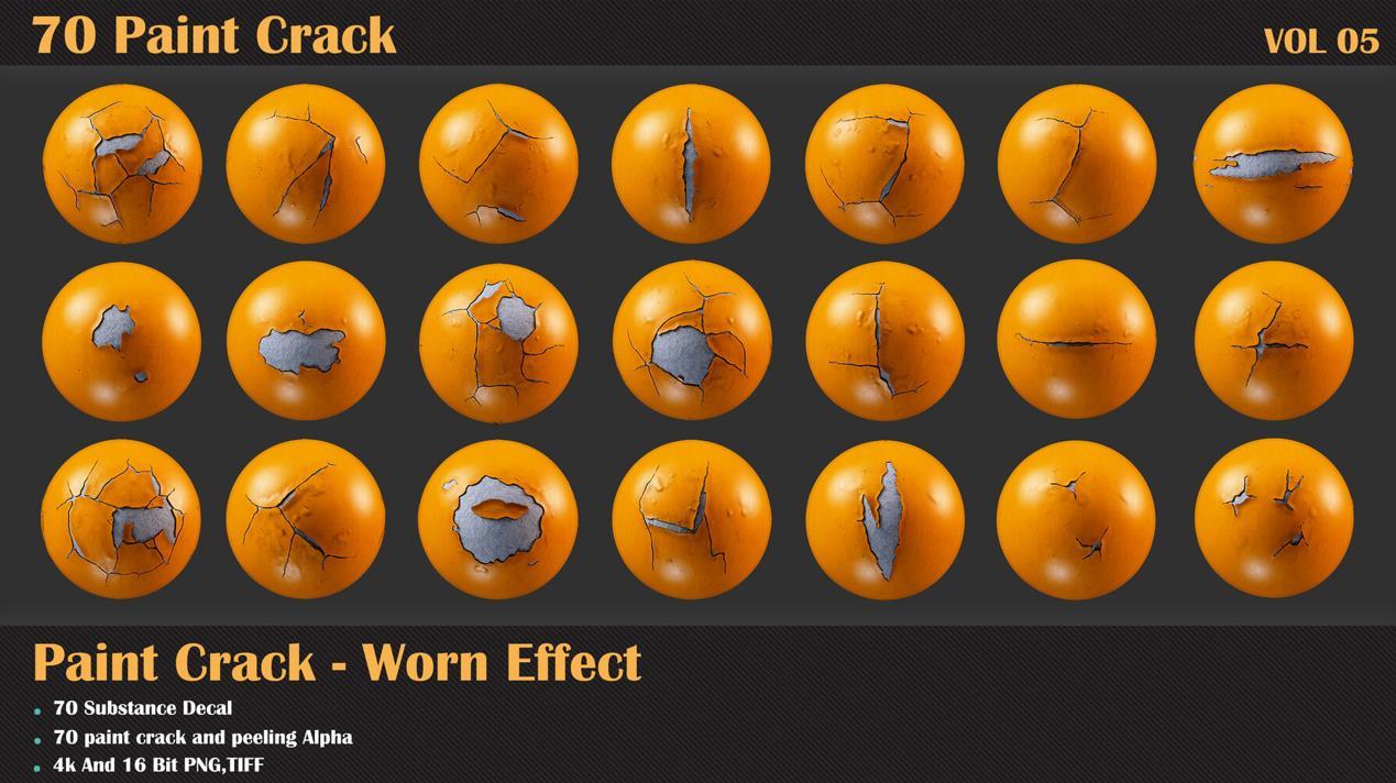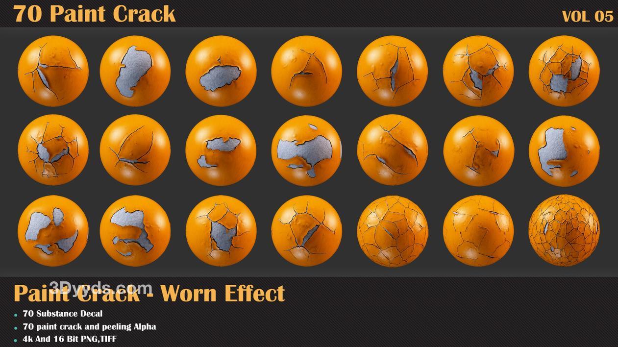 - 60个单独的 + 10个连续的Substance Painter剥落油漆效果贴花