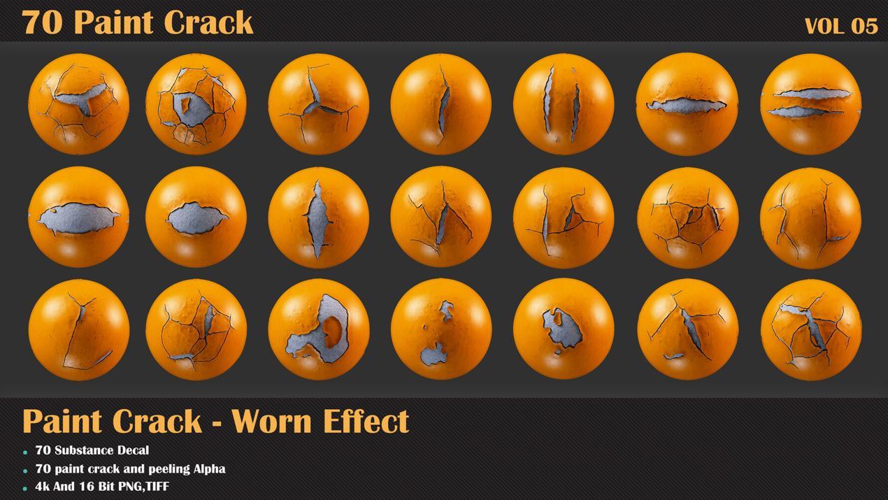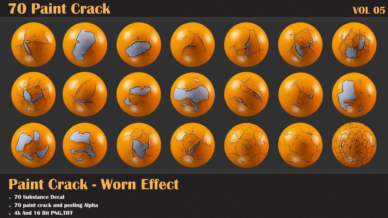 您将获得可以在Substance Painter、Substance Designer、ZBrush、3DCoat、Mudbox、Blender或任何支持Alpha通道工作流程的软件中使用的Alpha。本卷包含一个名为“剥落油漆贴花”的特殊工具,为每种效果提供了无限的可能性。您可以以不同的方式使用这些工具,并且我们提供了简短的教程,方便在Substance Painter和ZBrush中使用。