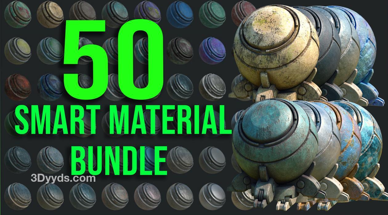 这是一个包含50种独特智能材质的产品,文件格式为.SPSM。不需要任何额外的插件即可使用。