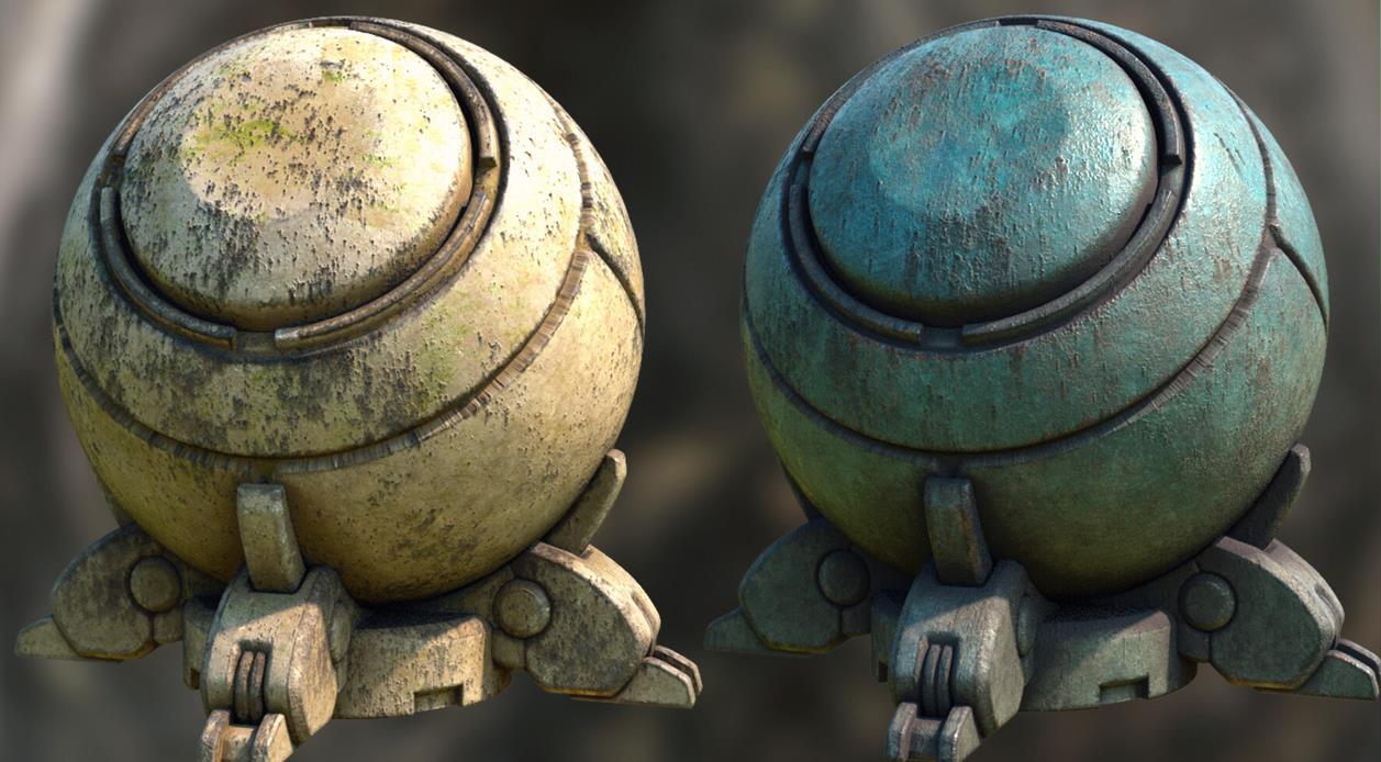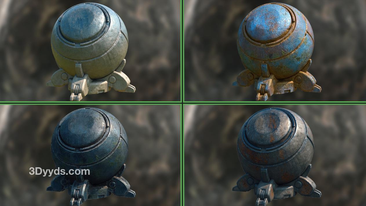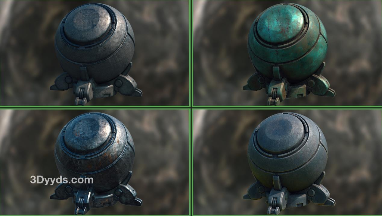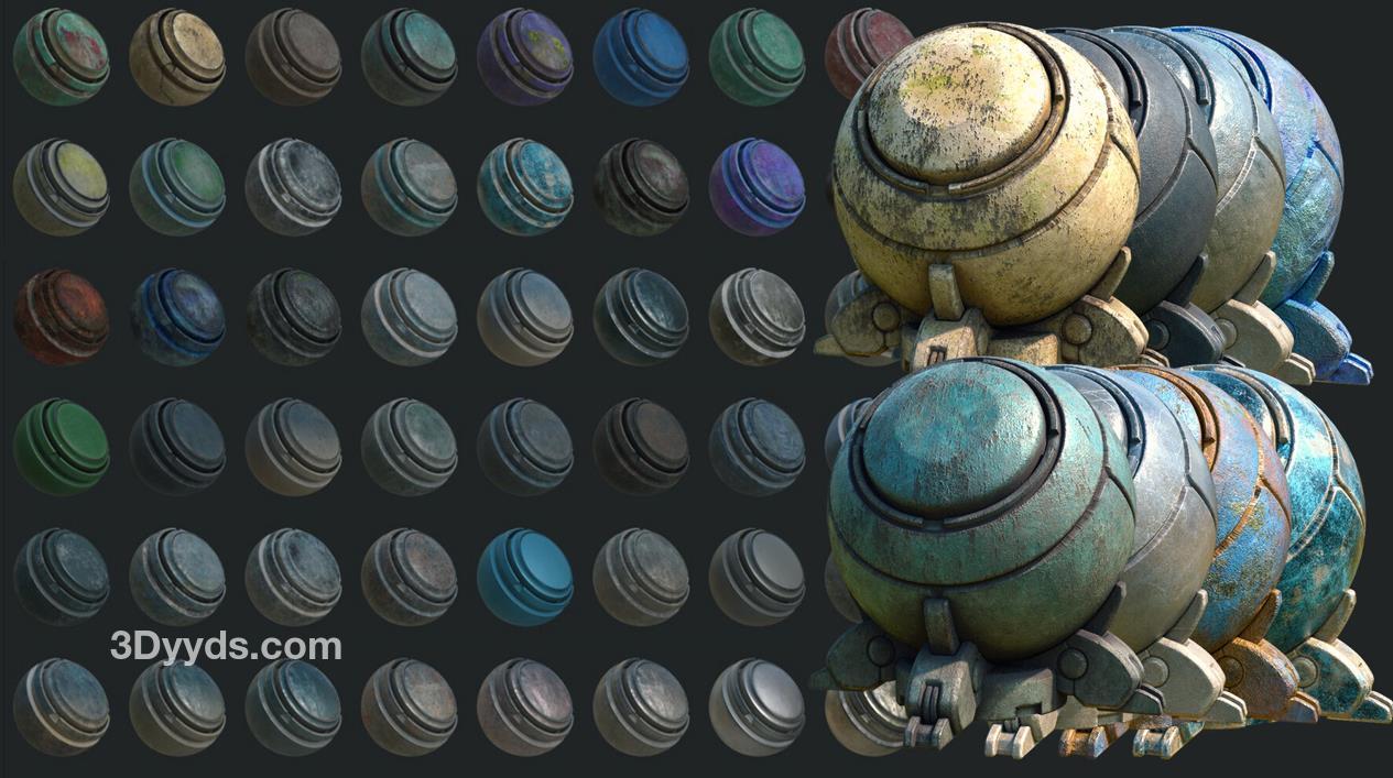 sp材质113钢铁青铜油漆锈迹智能材质球&铜锈青铜材质