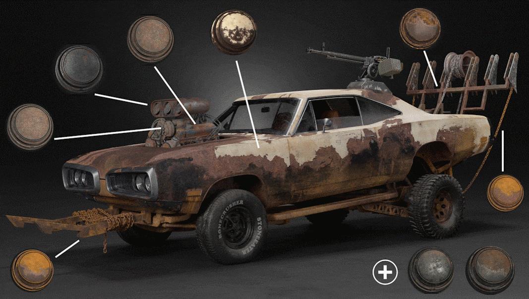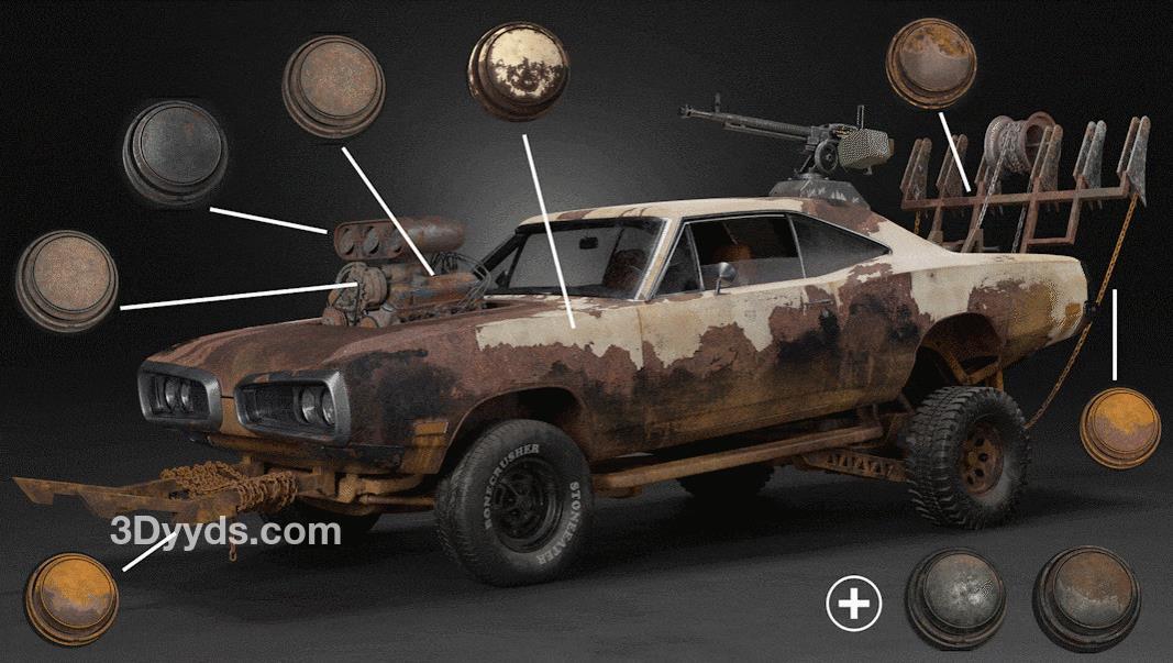 sp材质122破旧汽车金属锈迹掉漆材质&氧化废旧钢铁材质球