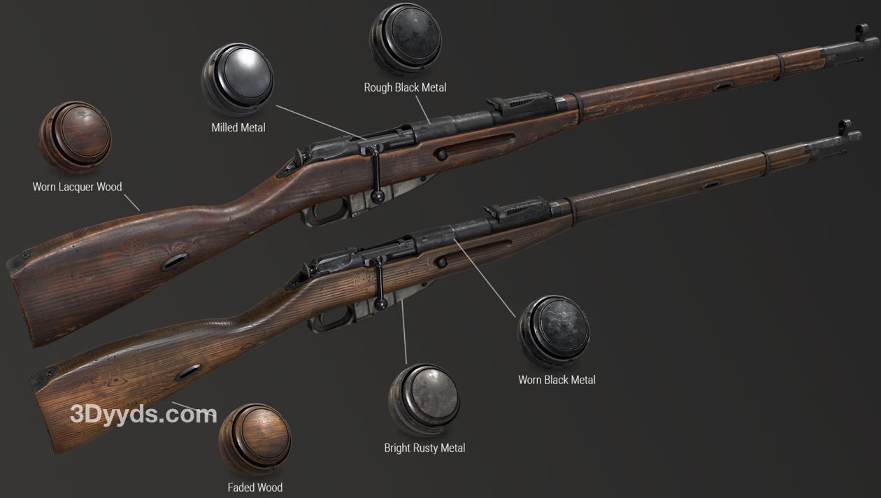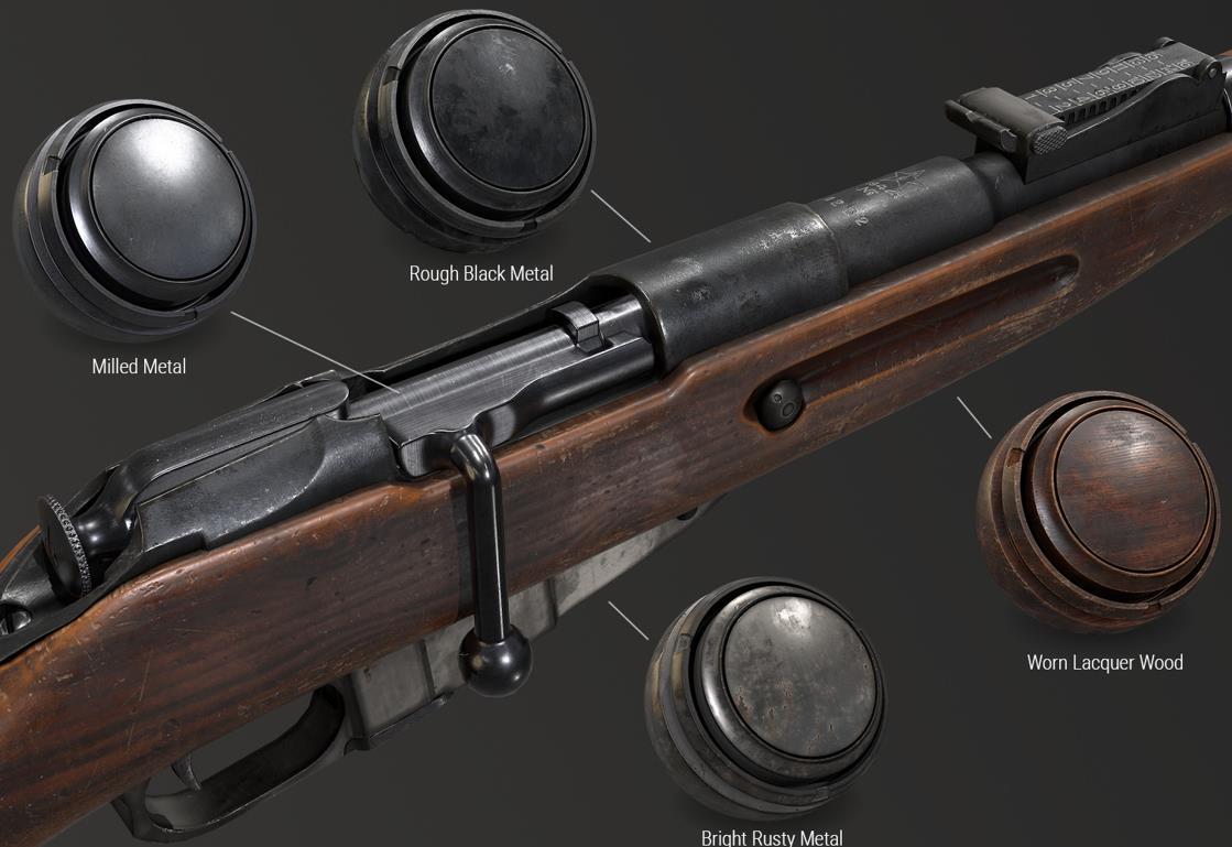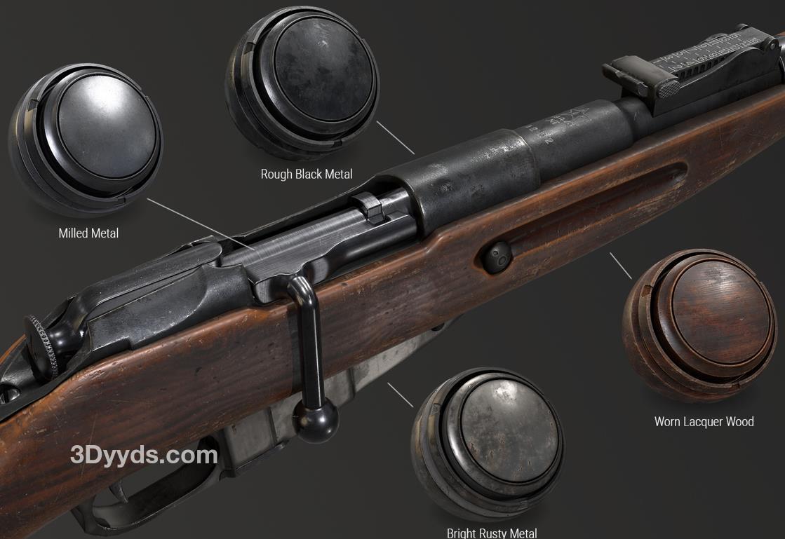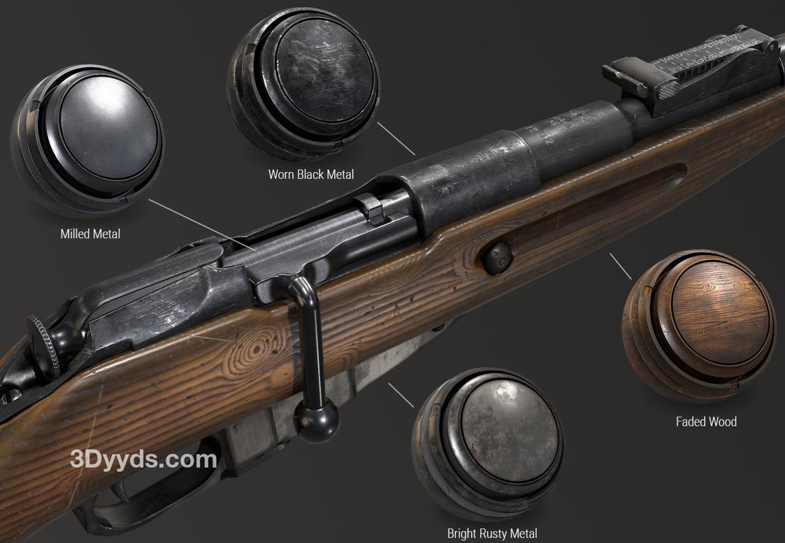 sp材质123步枪金属木头智能材质球&复古木头枪械材质