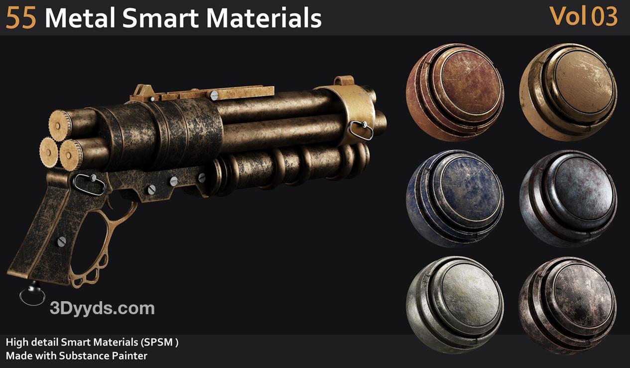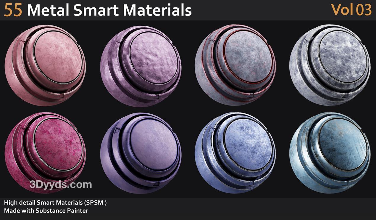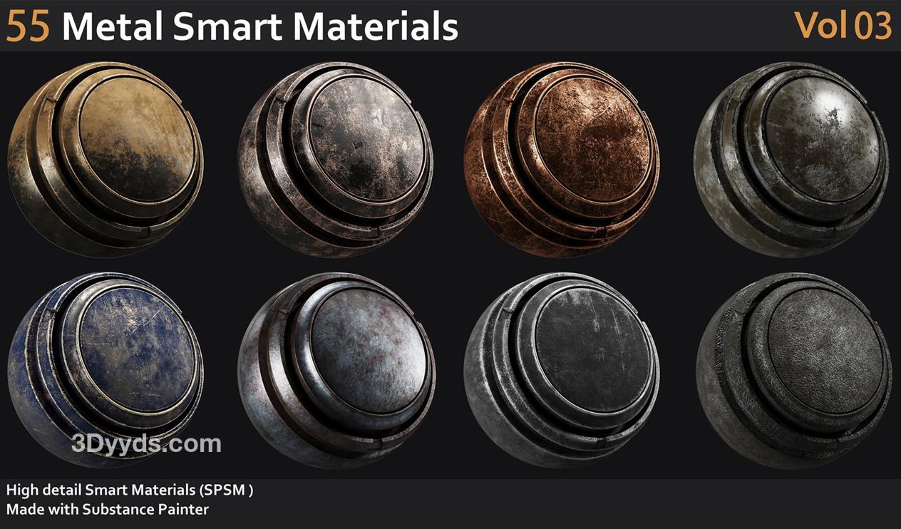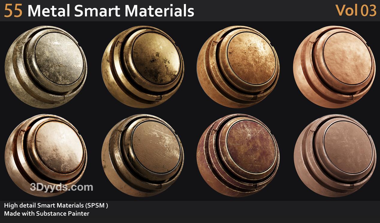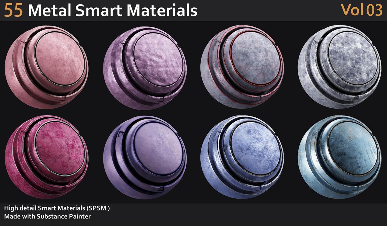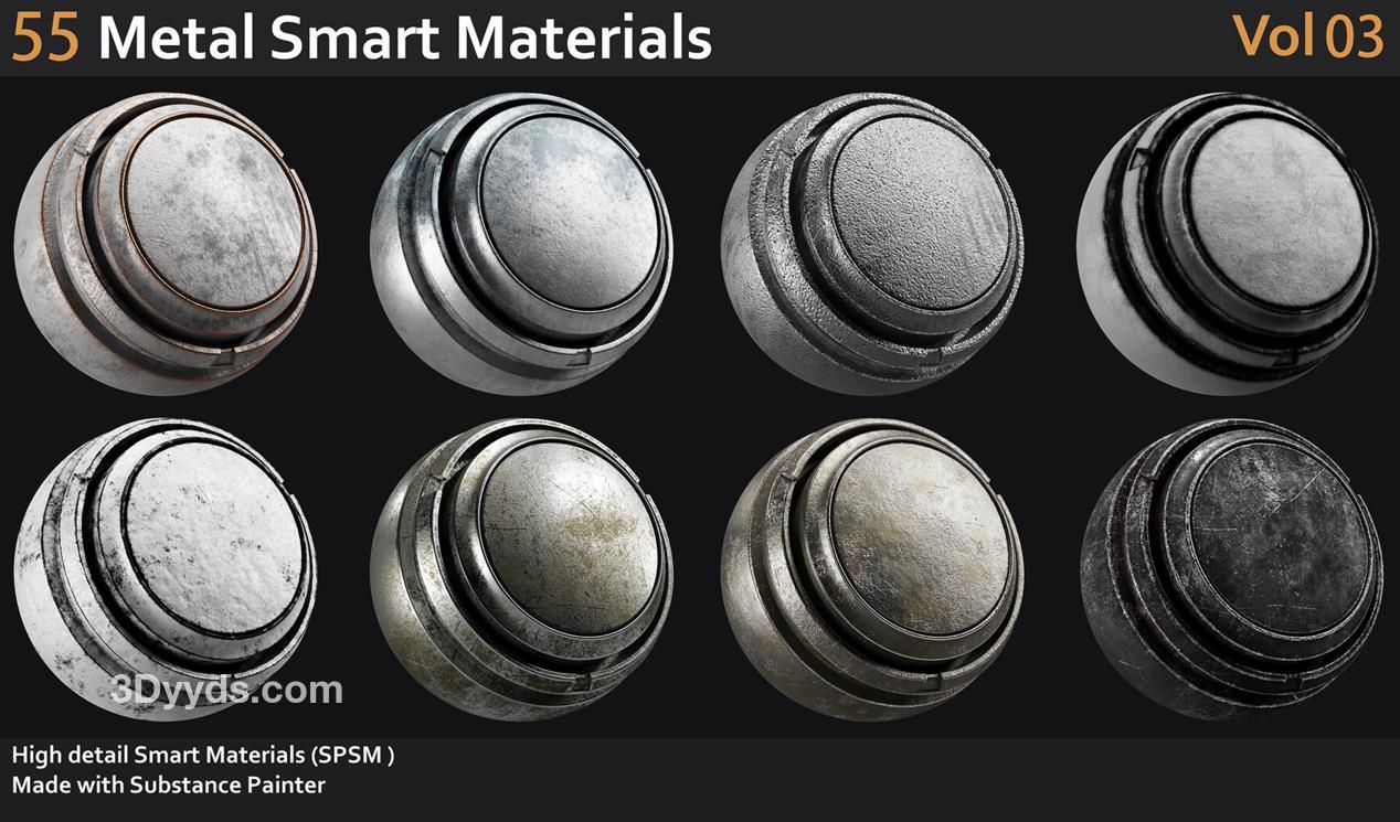 这个产品是包含了55种高质量金属智能材质的合集,适用于Substance Painter软件。
