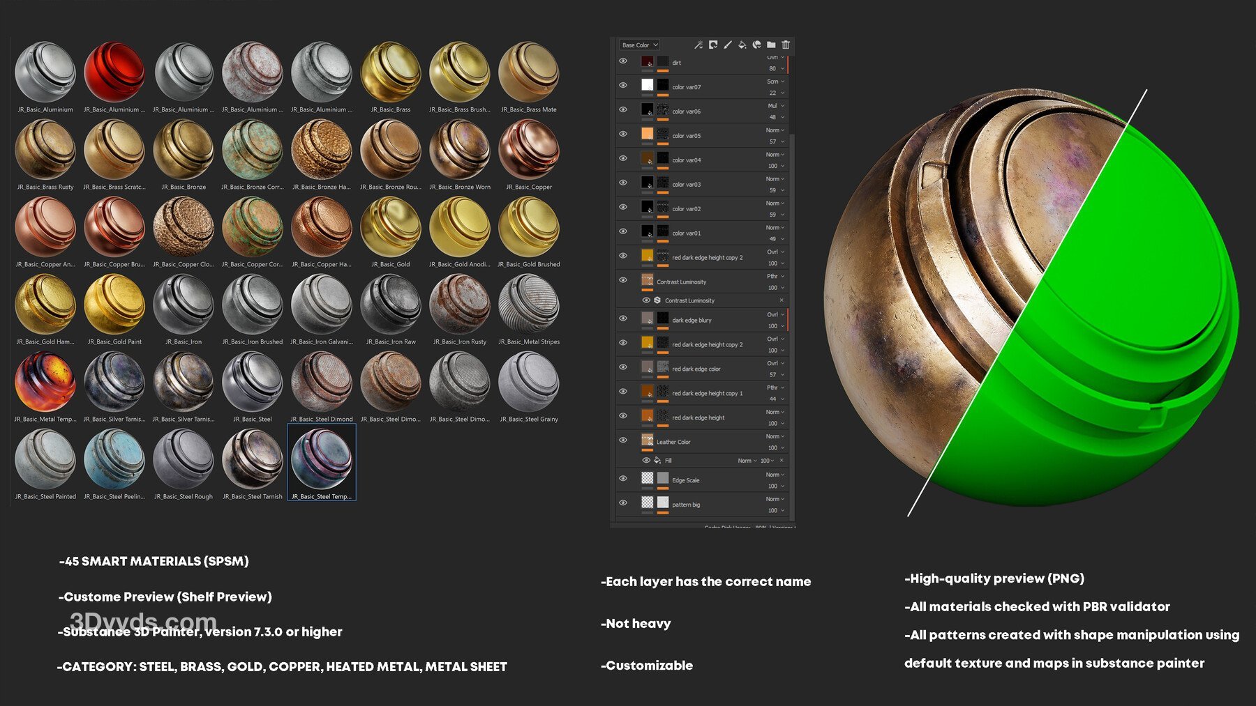 45 种高细节和完全可定制的基本金属智能材料 (spsm)
