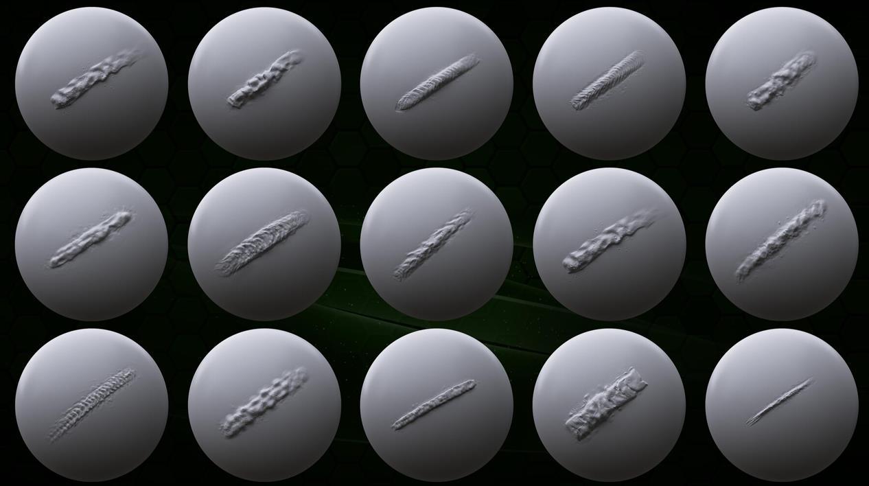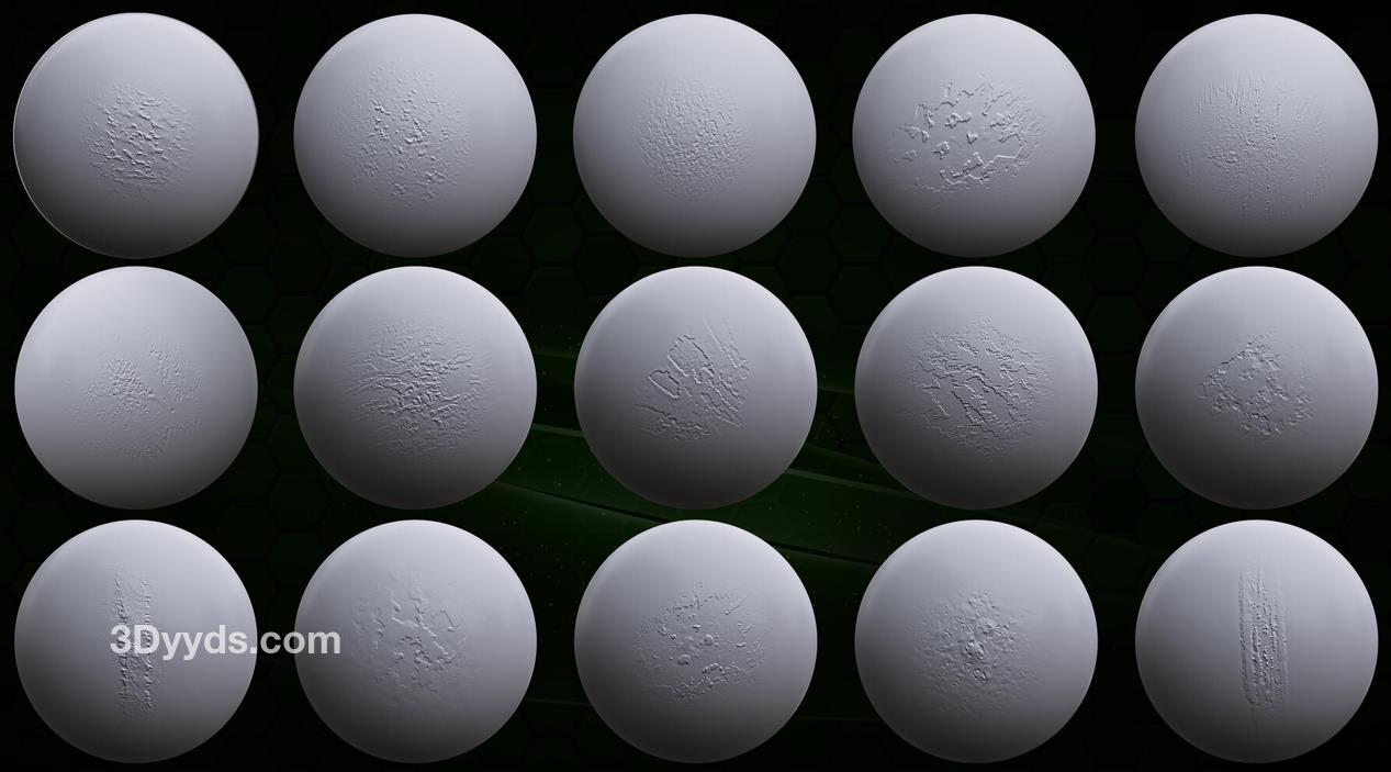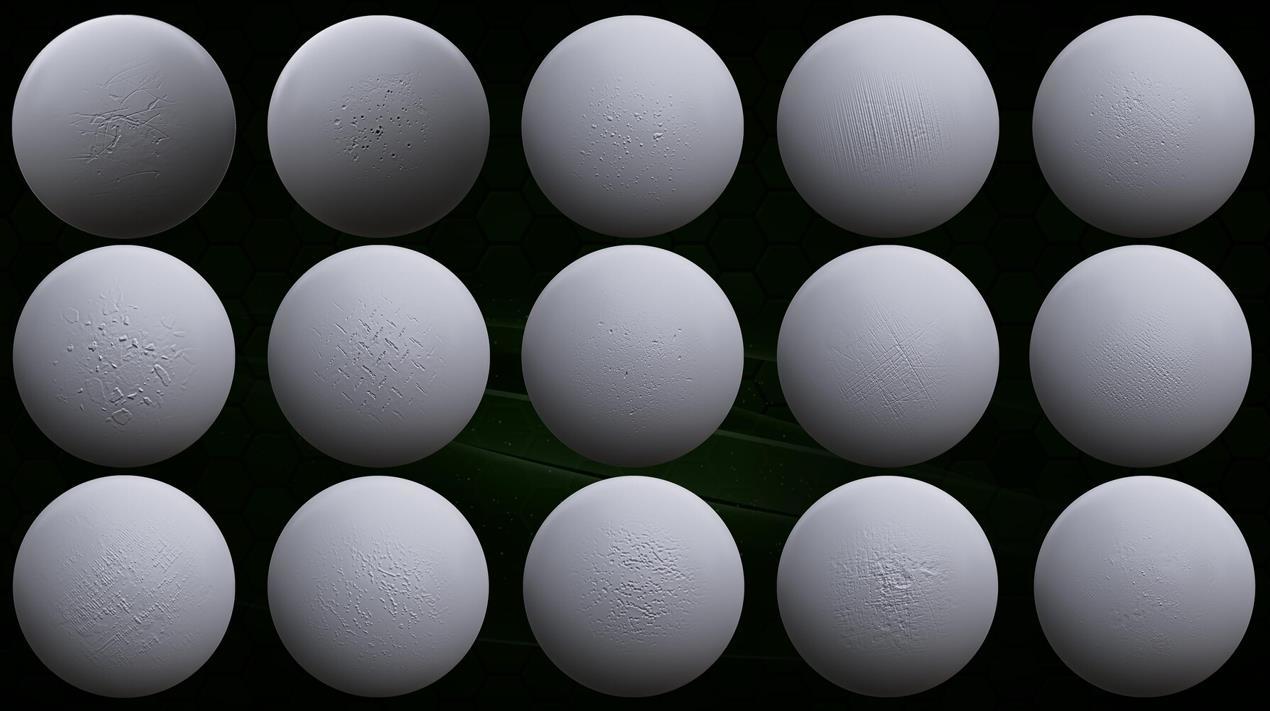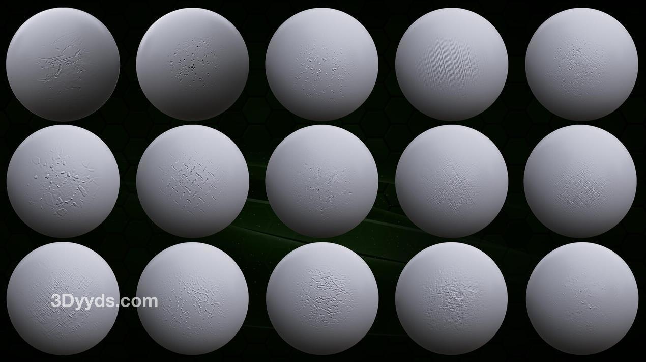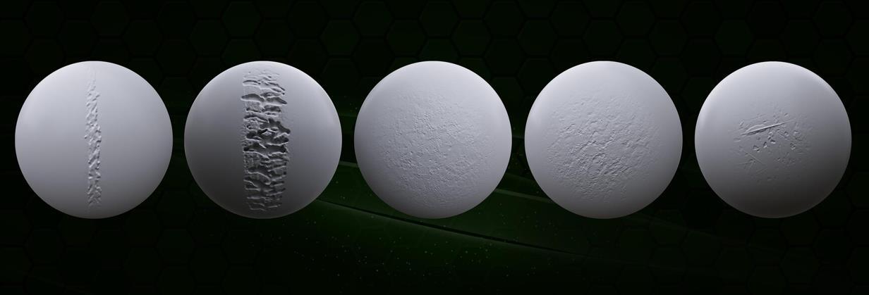 105 个 ZBrush 刷(20 个焊接 IMM 刷、5 个焊接刷、80 个表面金属 IMM 刷)用于雕刻金属表面细节。