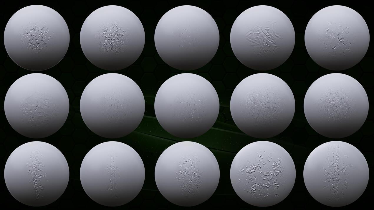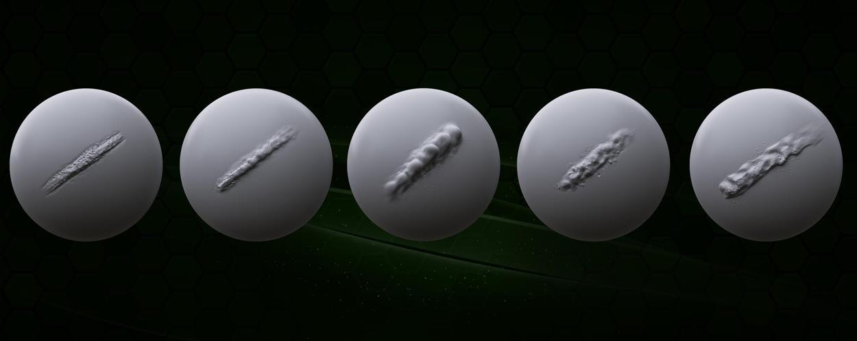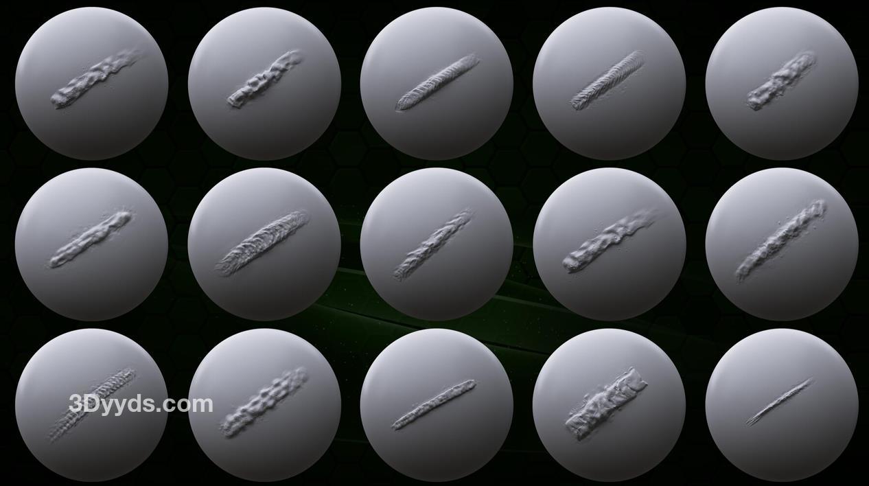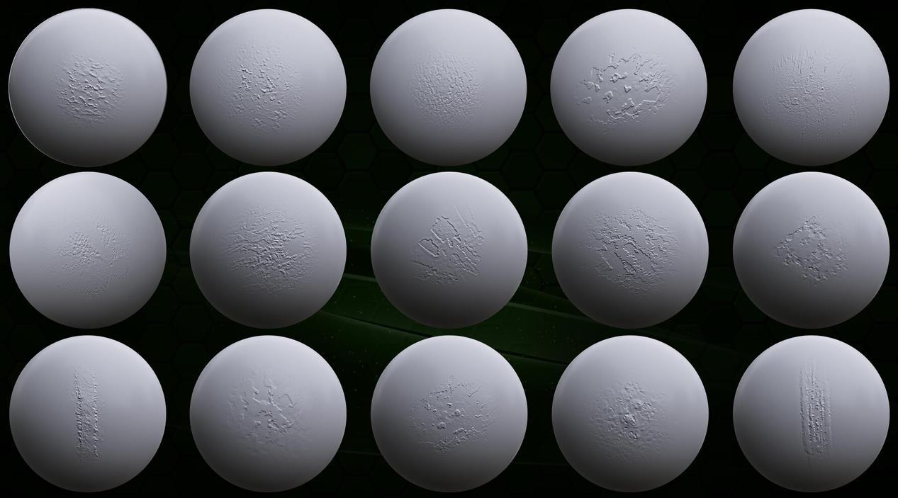 105 个 ZBrush 刷(20 个焊接 IMM 刷、5 个焊接刷、80 个表面金属 IMM 刷)用于雕刻金属表面细节。