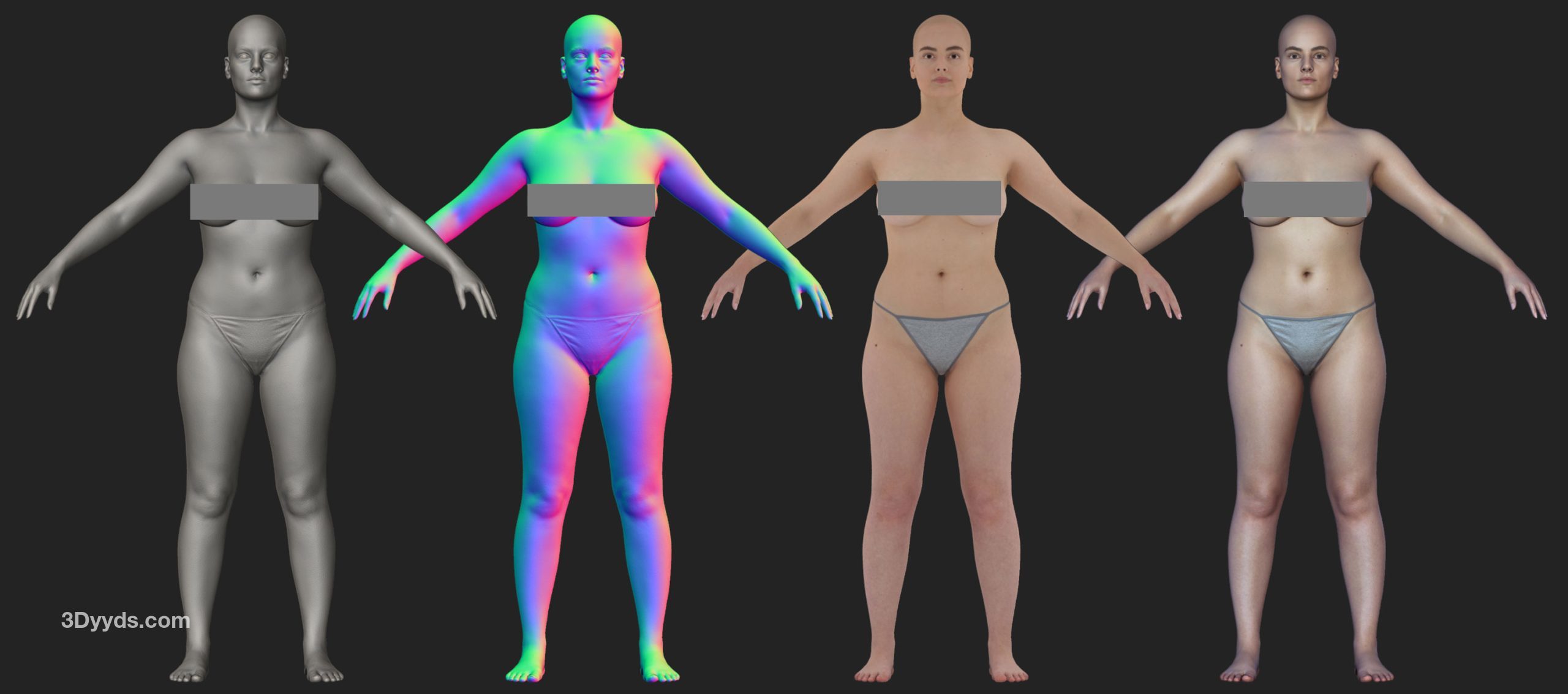 这是一个经过重新拓扑的女性3D身体模型,适合动画制作。包含6级分段的Zbrush子工具,带有16k纹理贴图,可导出为FBX,兼容所有3D软件。使用超过180台数码单反相机进行全身摄影,经过清理和重新拓扑处理,拓扑结构适合动画和雕刻。模型包含眼睛、牙齿、舌头、睫毛和眉毛,可在marmoset toolbag实时渲染中实时查看。