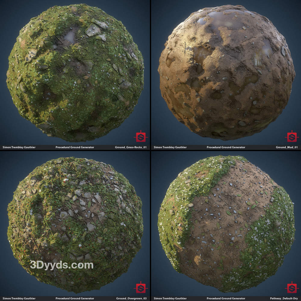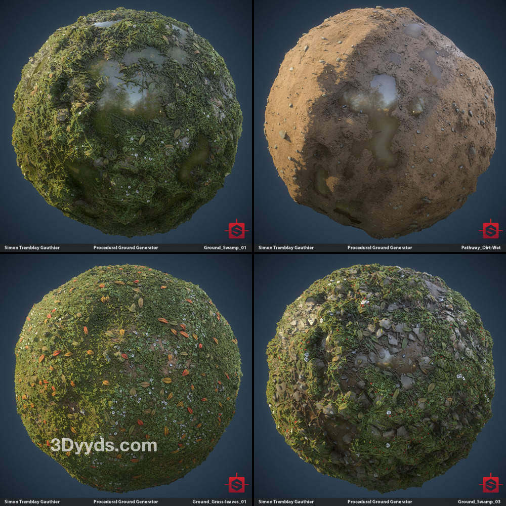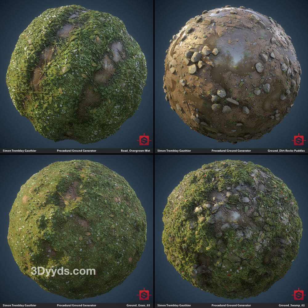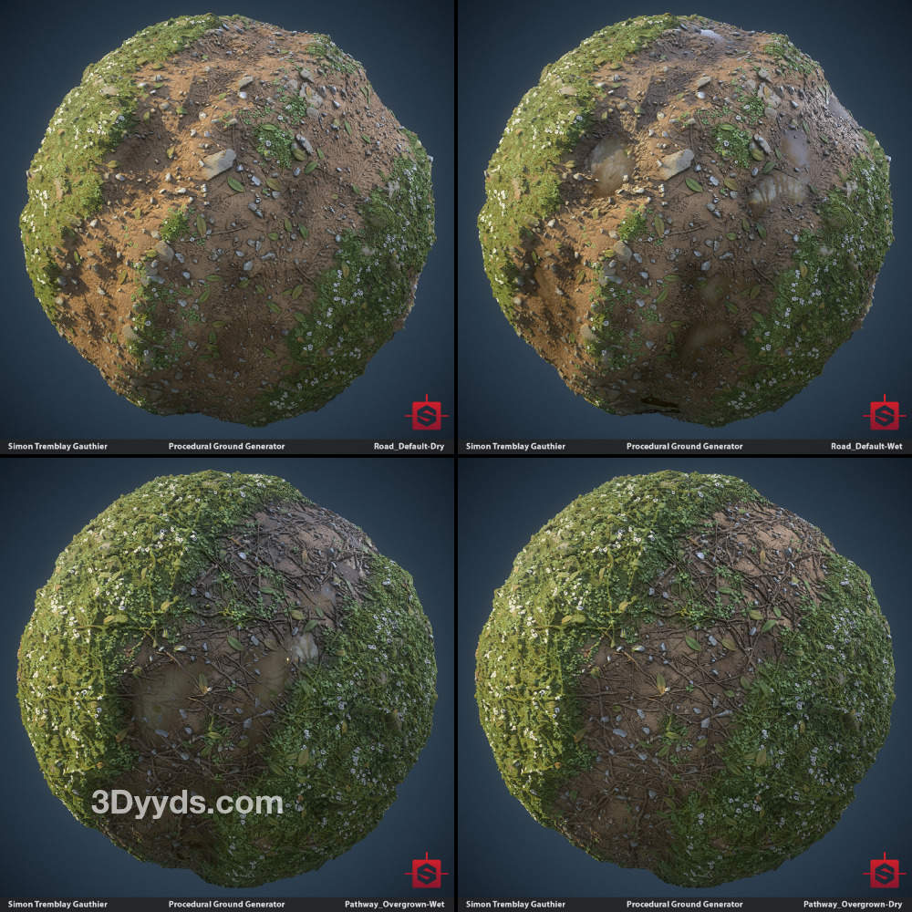 sp材质146-2K地面草地泥土水洼纹理贴图&碎石子